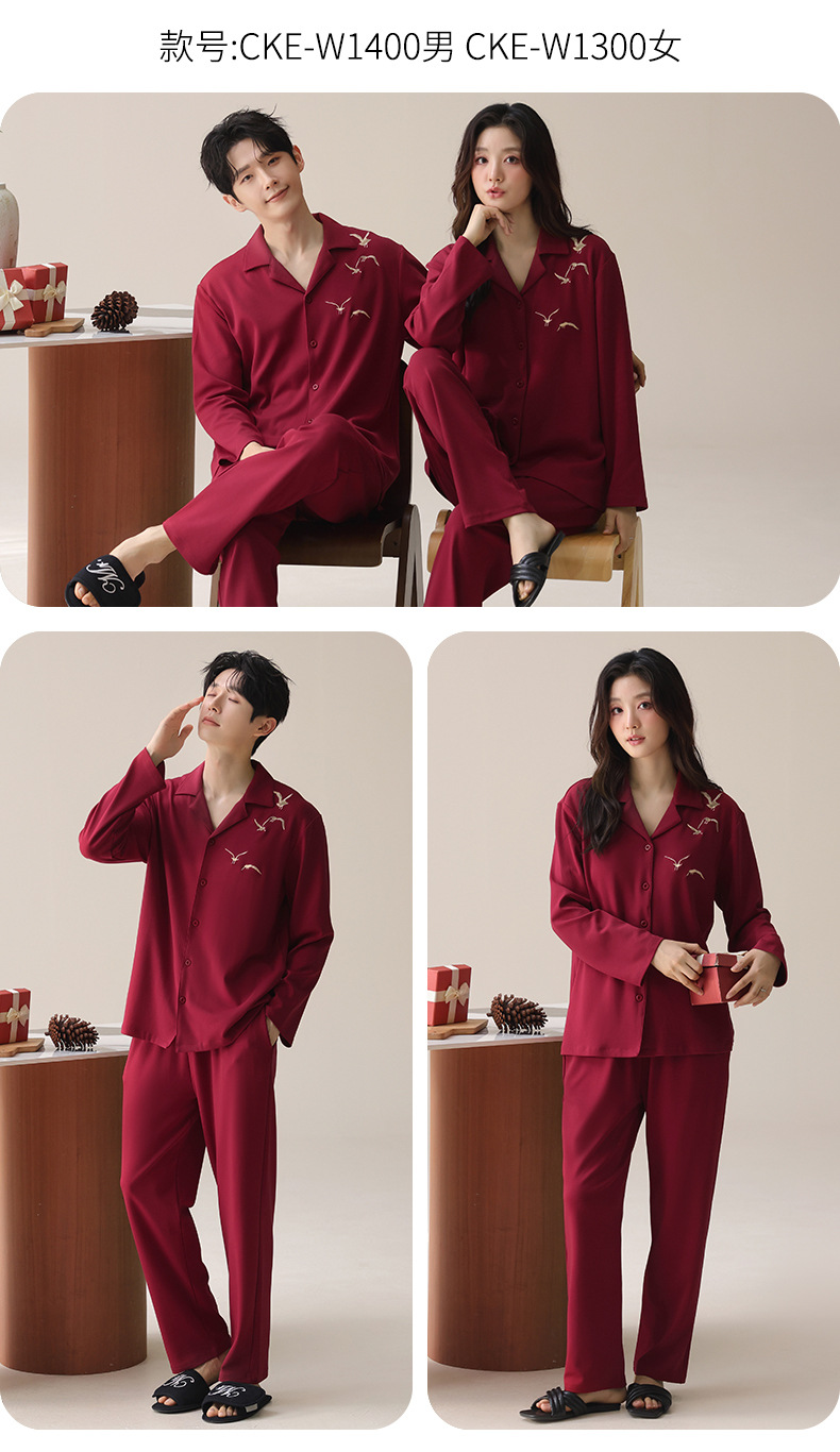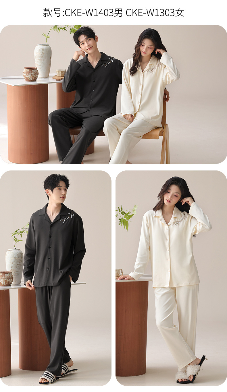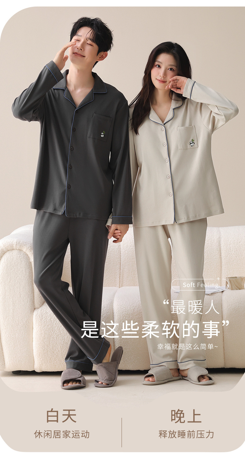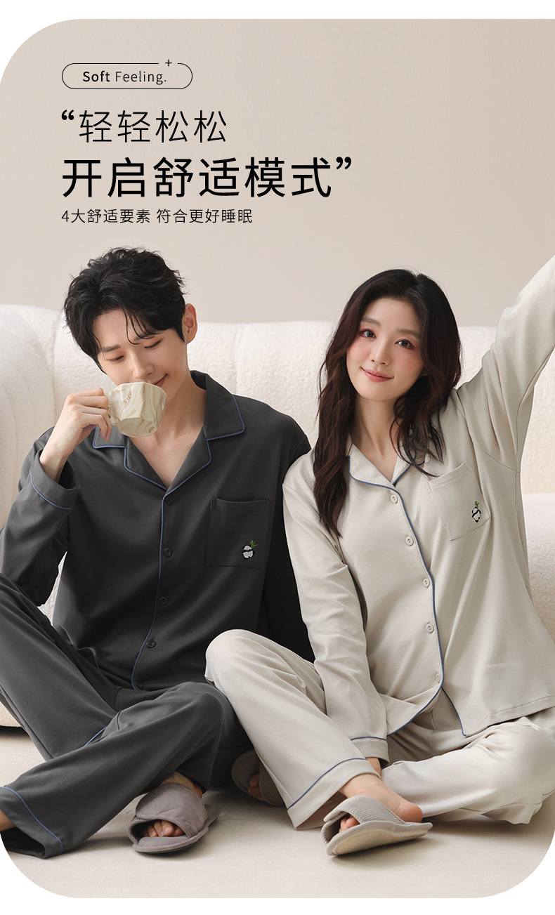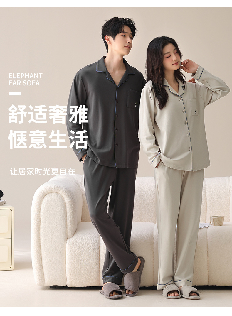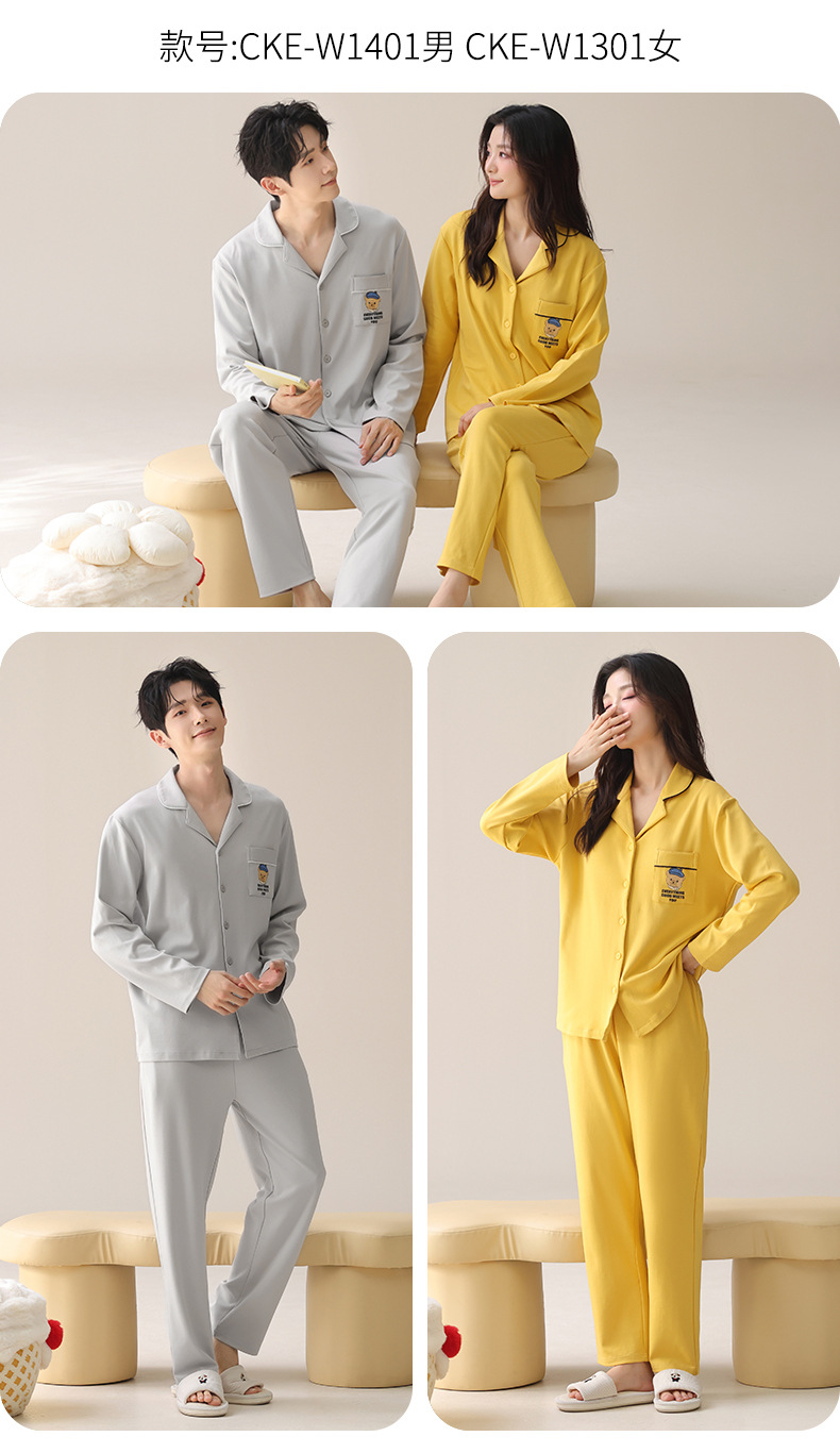 순면 잠옷 커플 가을 겨울 스타일 심플 카디건 라펠 남녀 공용 외출복 캐주얼 순면 홈웨어 세트스토어 가기