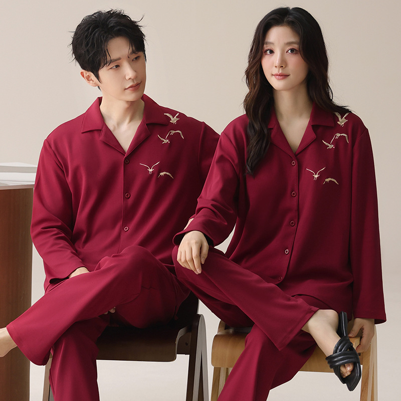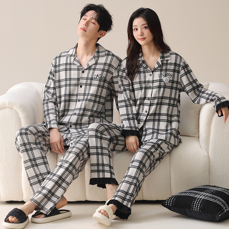 순면 잠옷 커플 가을 겨울 스타일 심플 카디건 라펠 남녀 공용 외출복 캐주얼 순면 홈웨어 세트