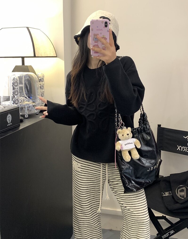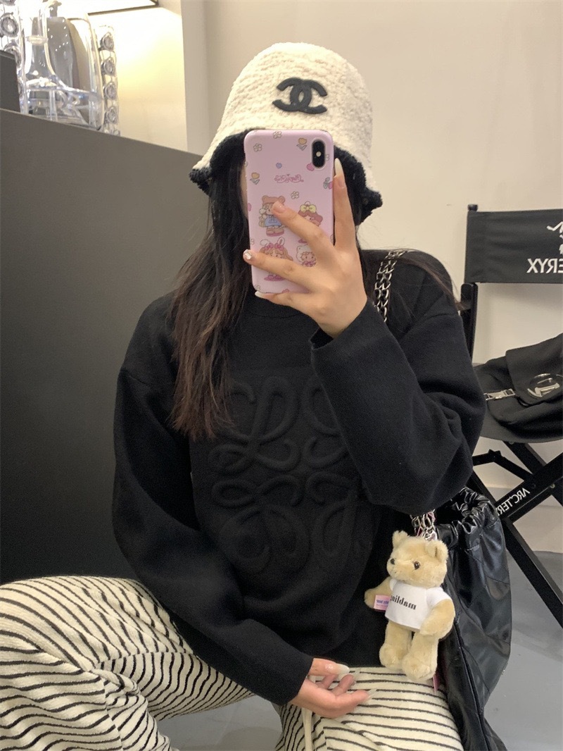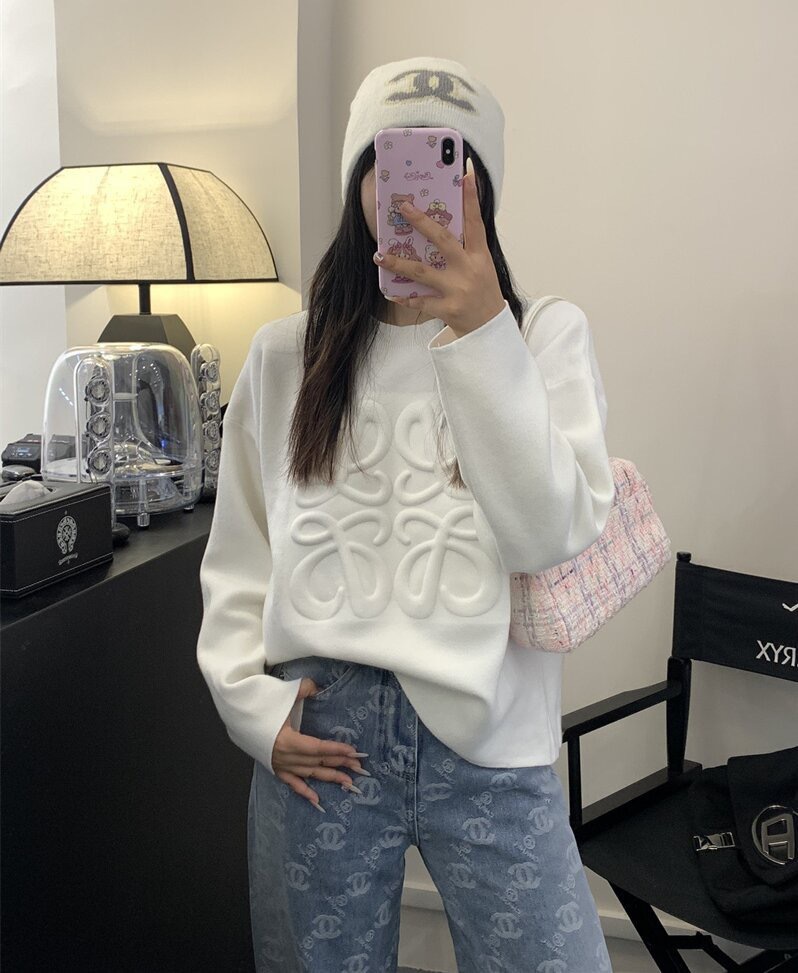 Spot LO*WE 가을 겨울 신상 양각 입체 양각 하이 엔드 게으른 스타일 풀오버 니트 캐주얼 스웨터 여성용스토어 가기