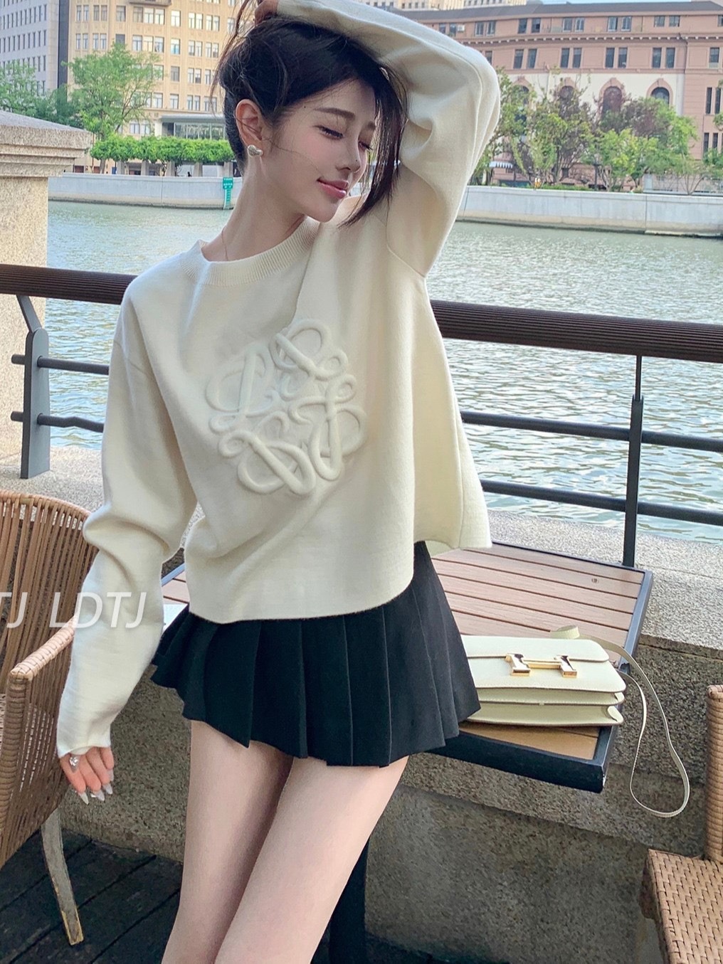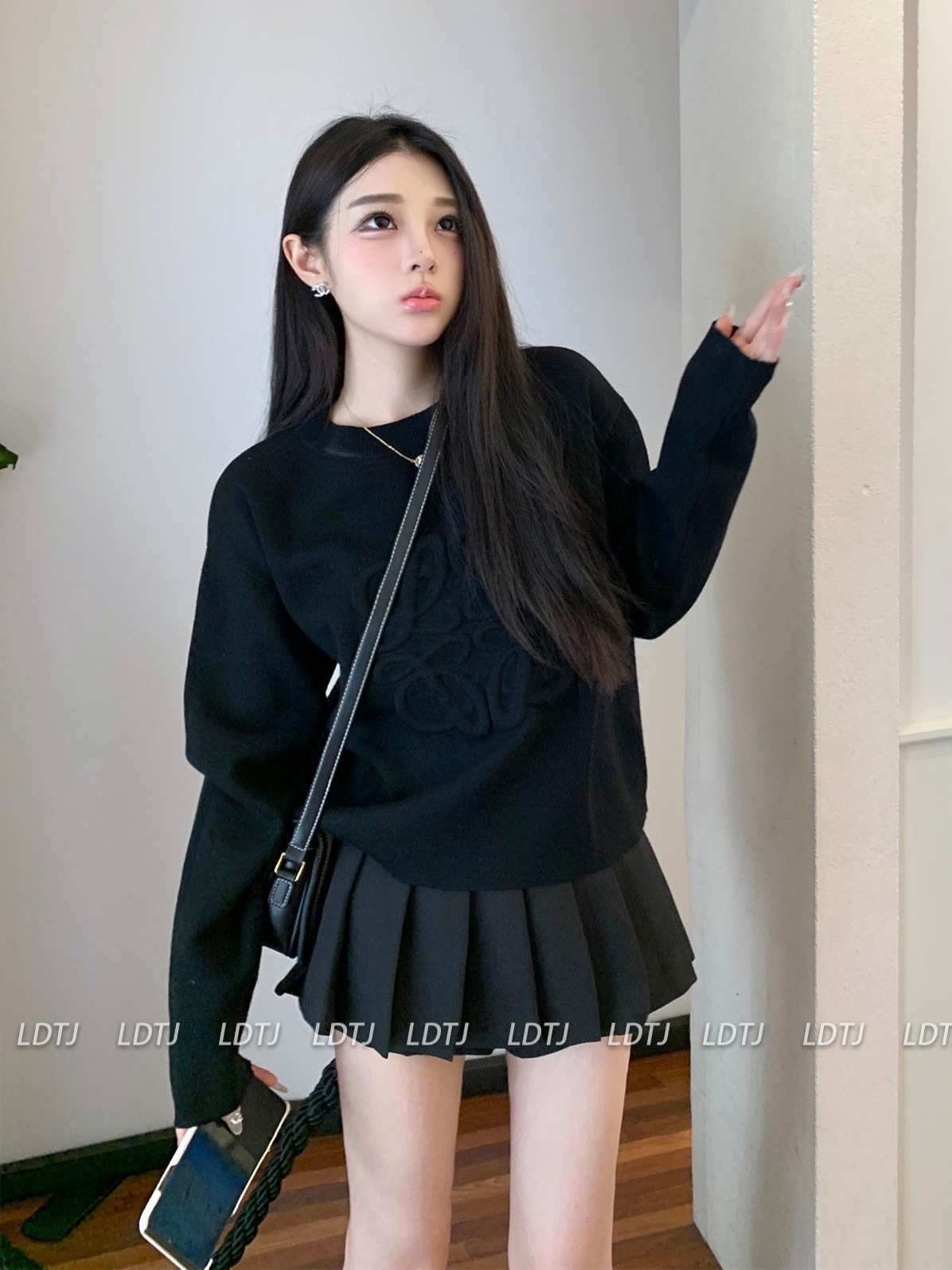 Spot LO*WE 가을 겨울 신상 양각 입체 양각 하이 엔드 게으른 스타일 풀오버 니트 캐주얼 스웨터 여성용
