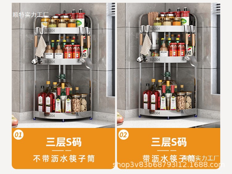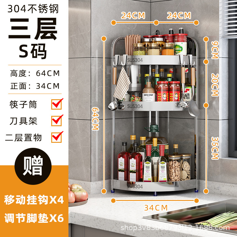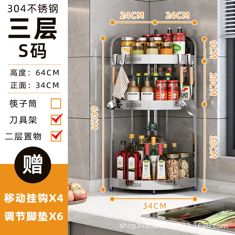 304 스테인레스 스틸 주방 랙 조미료 삼각형 랙 조미료 랙 조리대 벽 코너 칼 홀더 젓가락 보관 랙스토어 가기