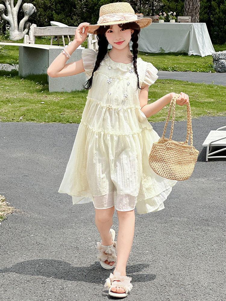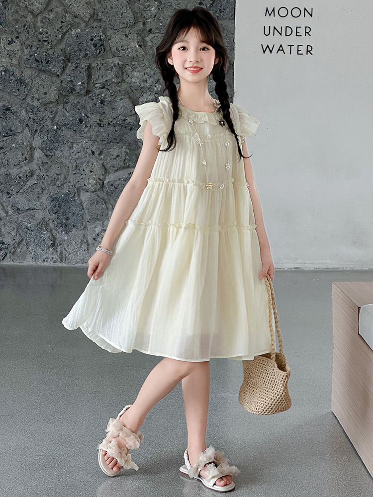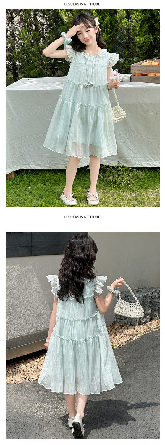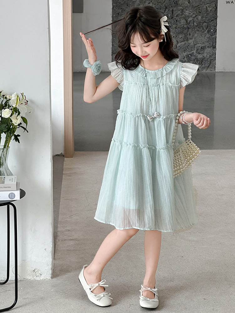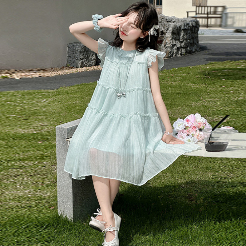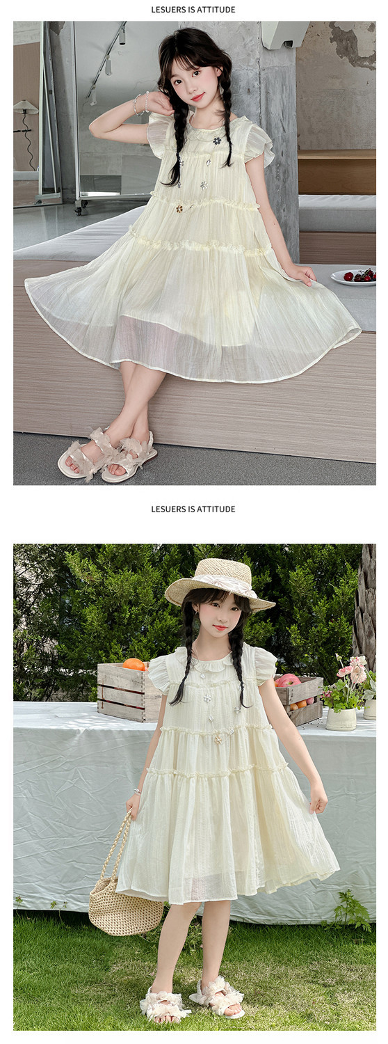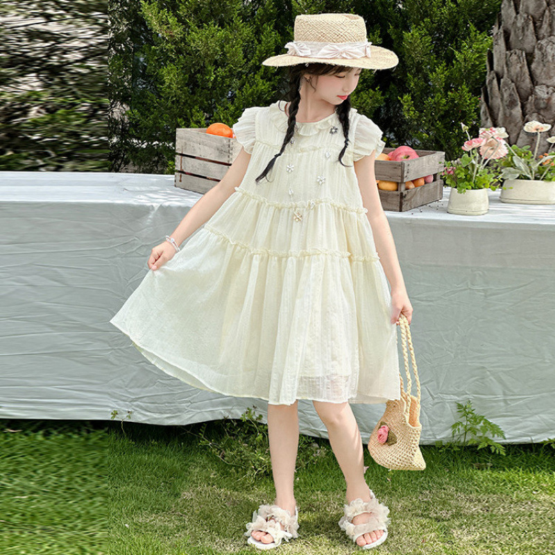 여자 드레스 여름 2025 새로운 인터넷 연예인 드레스 유행 어린이 공주 드레스 큰 어린이 여자 여름 거즈 드레스스토어 가기