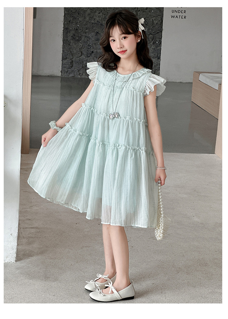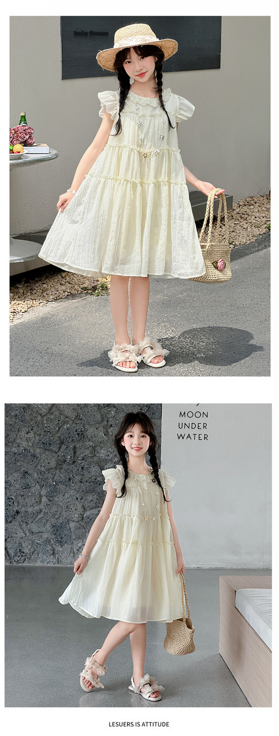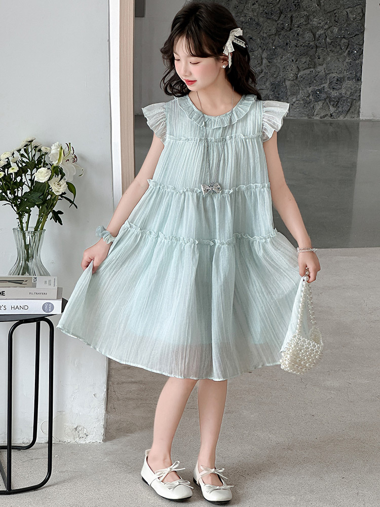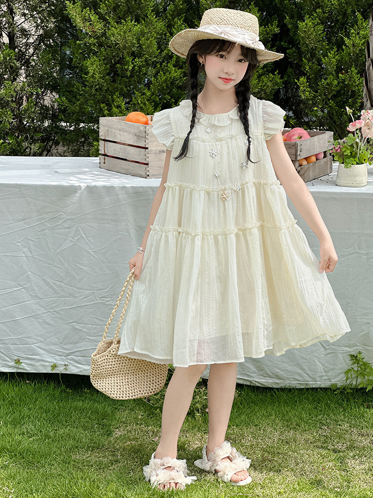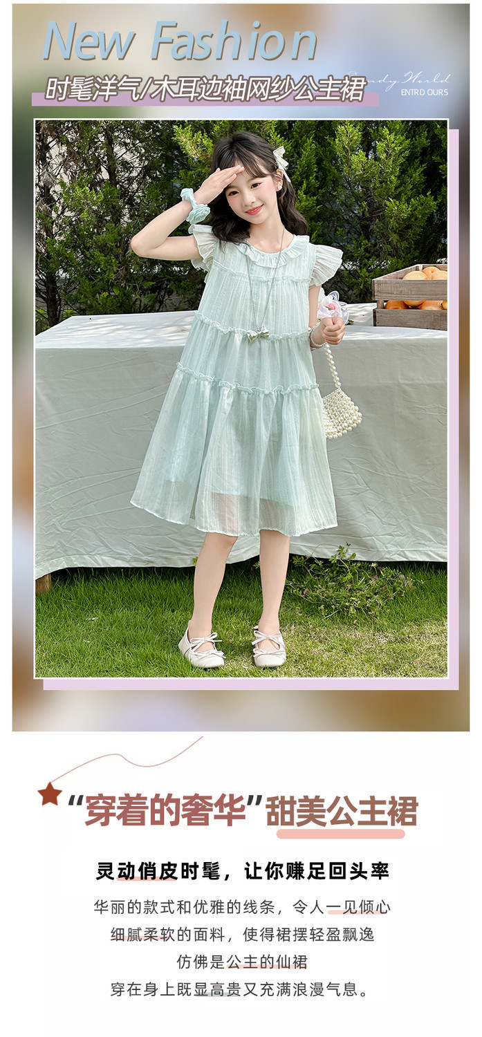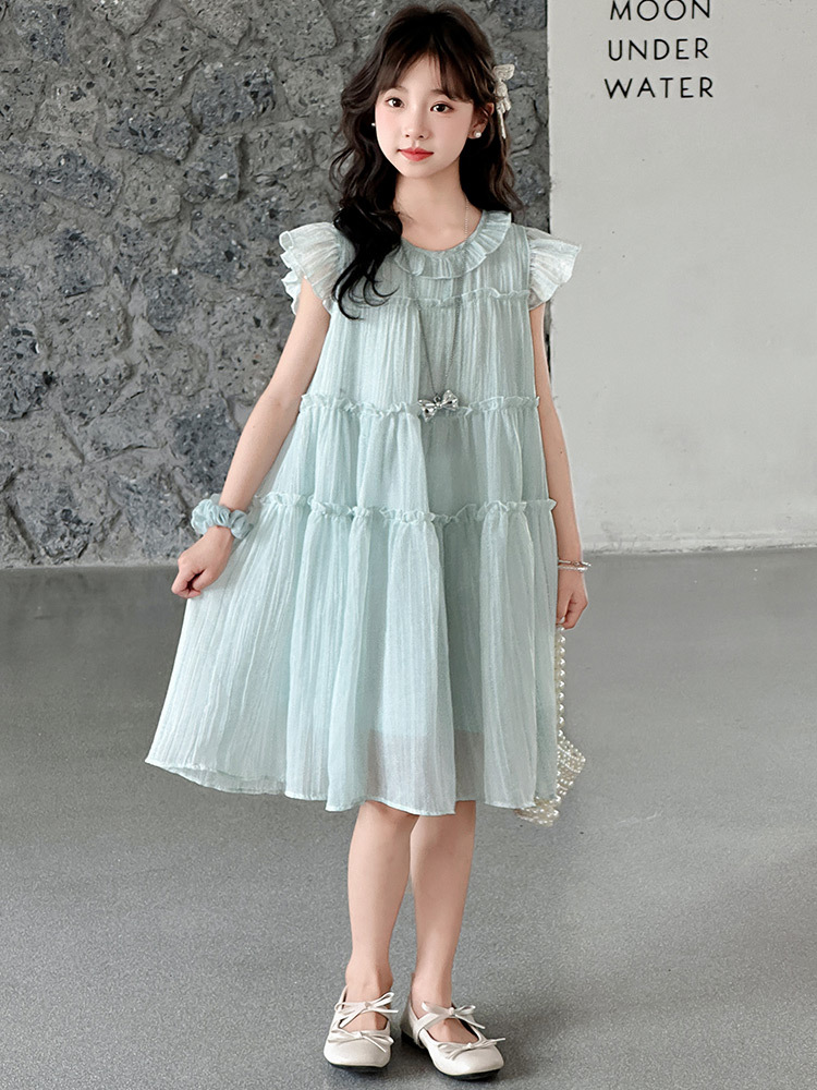 여자 드레스 여름 2025 새로운 인터넷 연예인 드레스 유행 어린이 공주 드레스 큰 어린이 여자 여름 거즈 드레스스토어 가기
