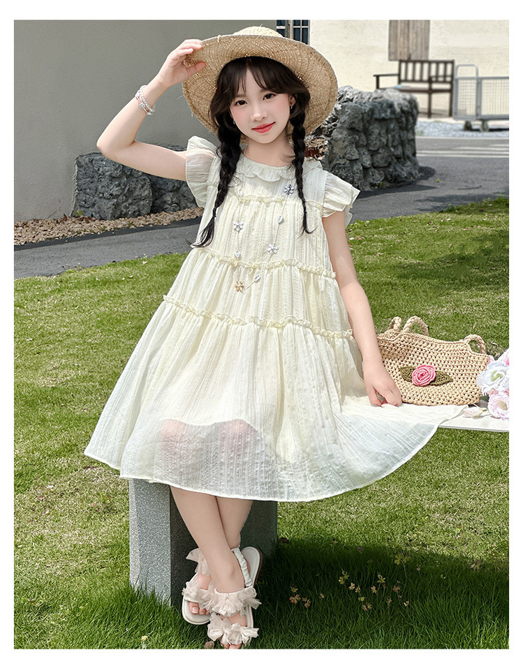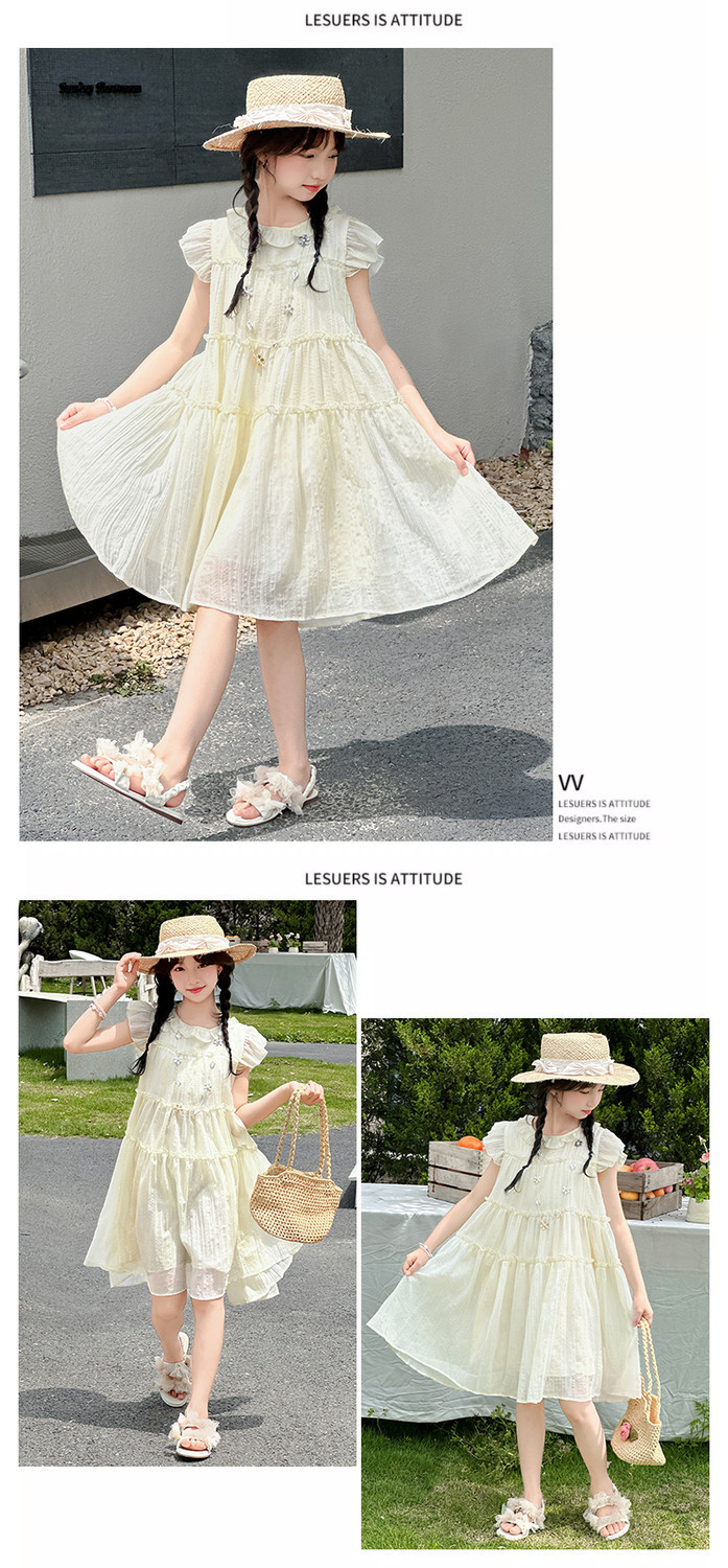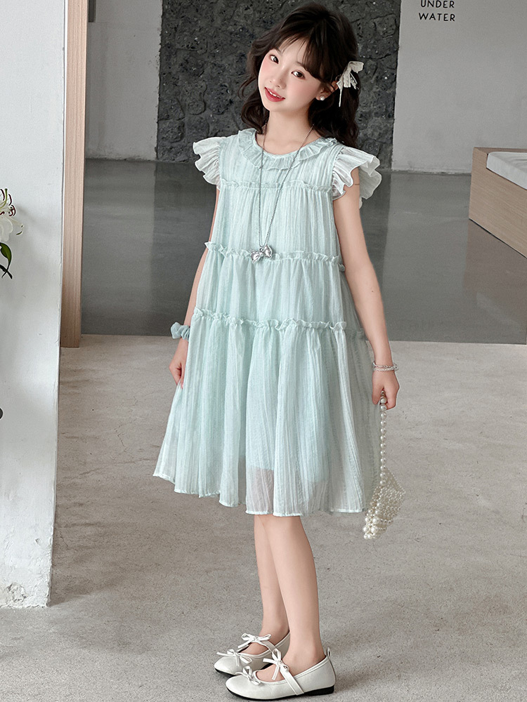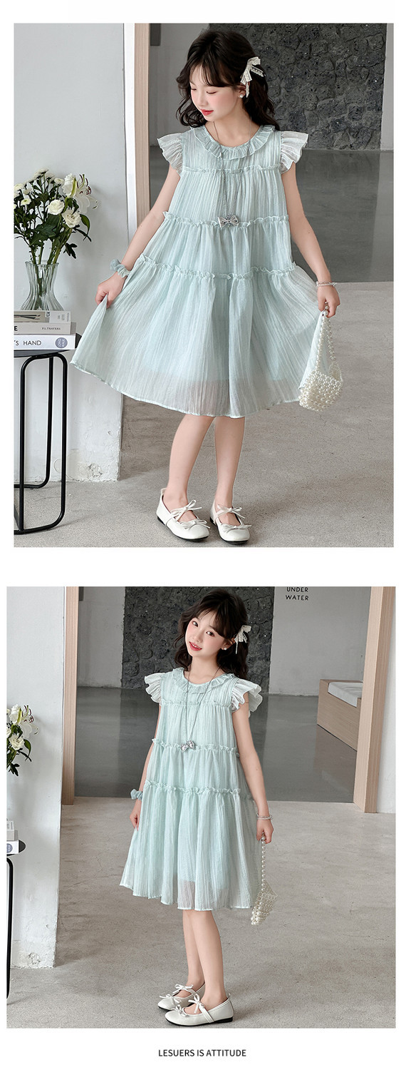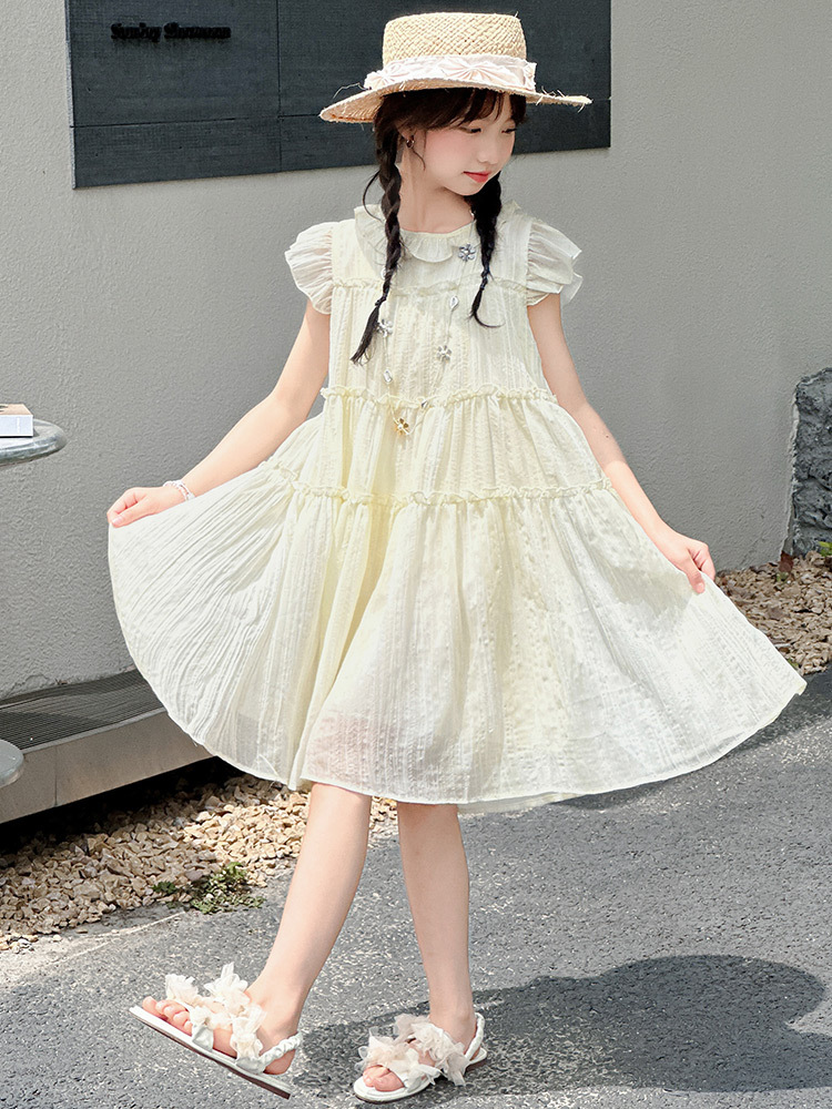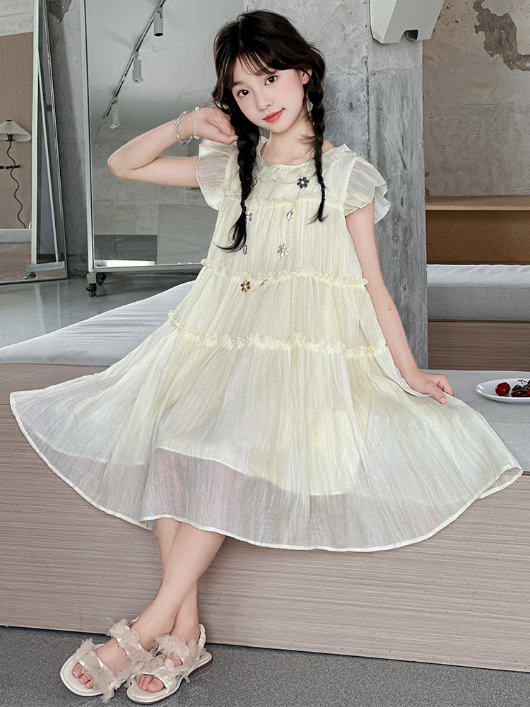 여자 드레스 여름 2025 새로운 인터넷 연예인 드레스 유행 어린이 공주 드레스 큰 어린이 여자 여름 거즈 드레스스토어 가기