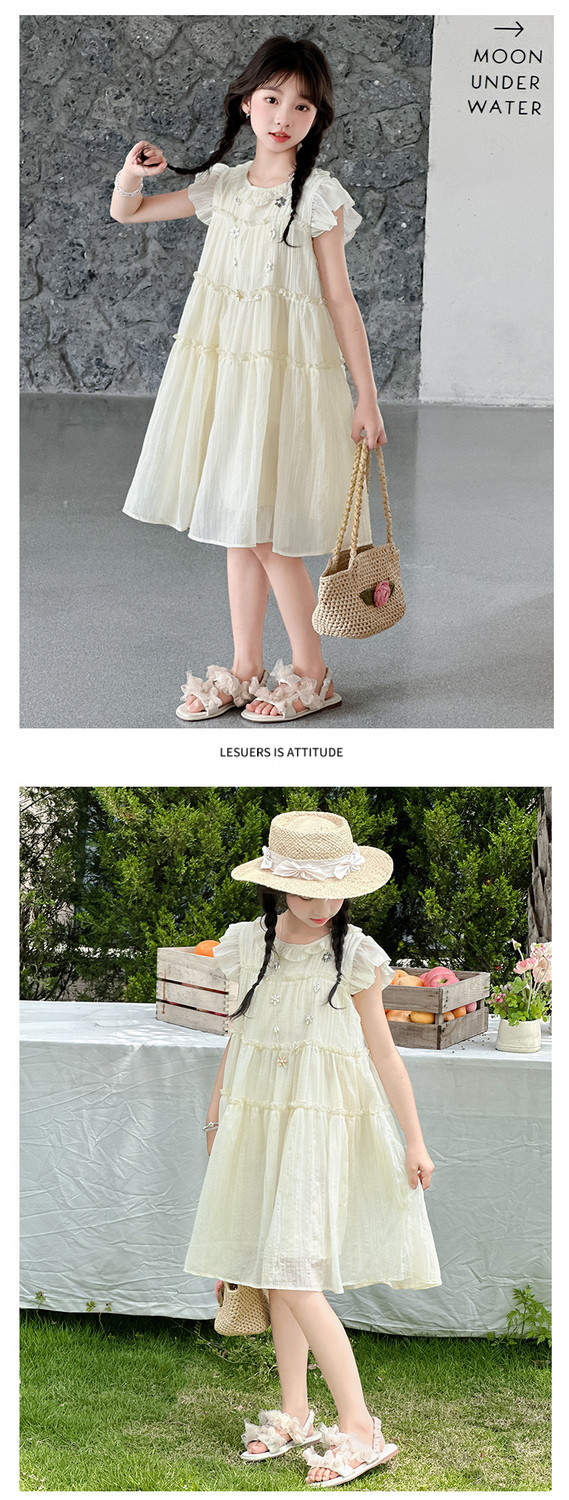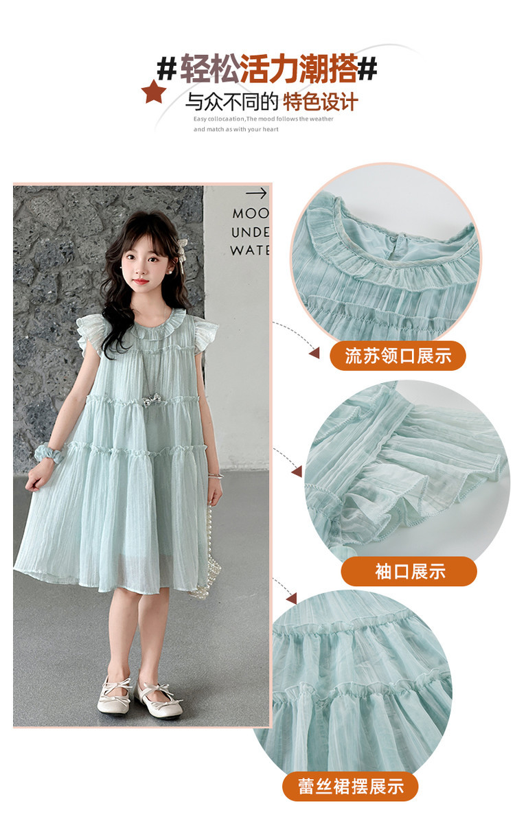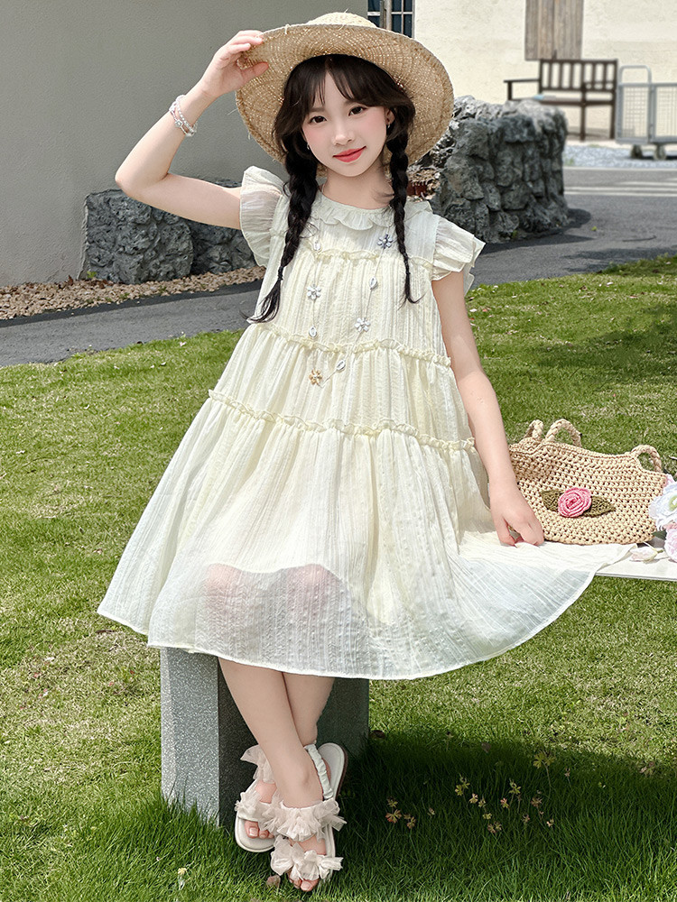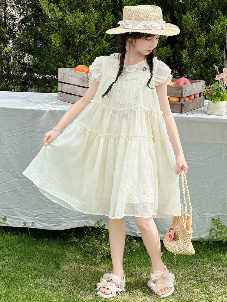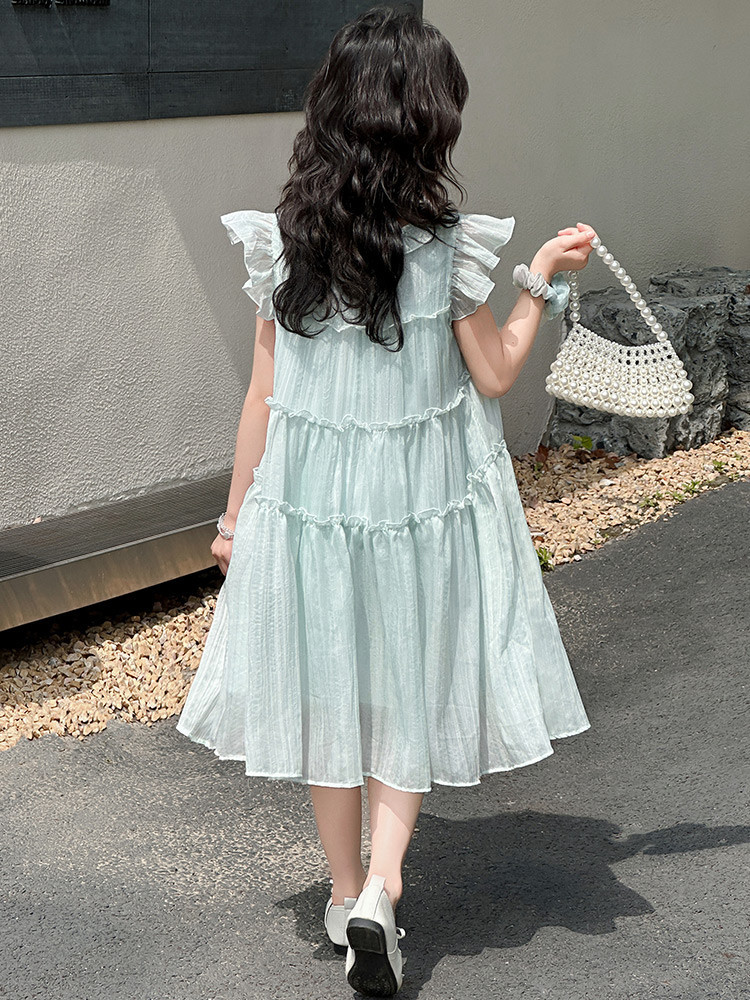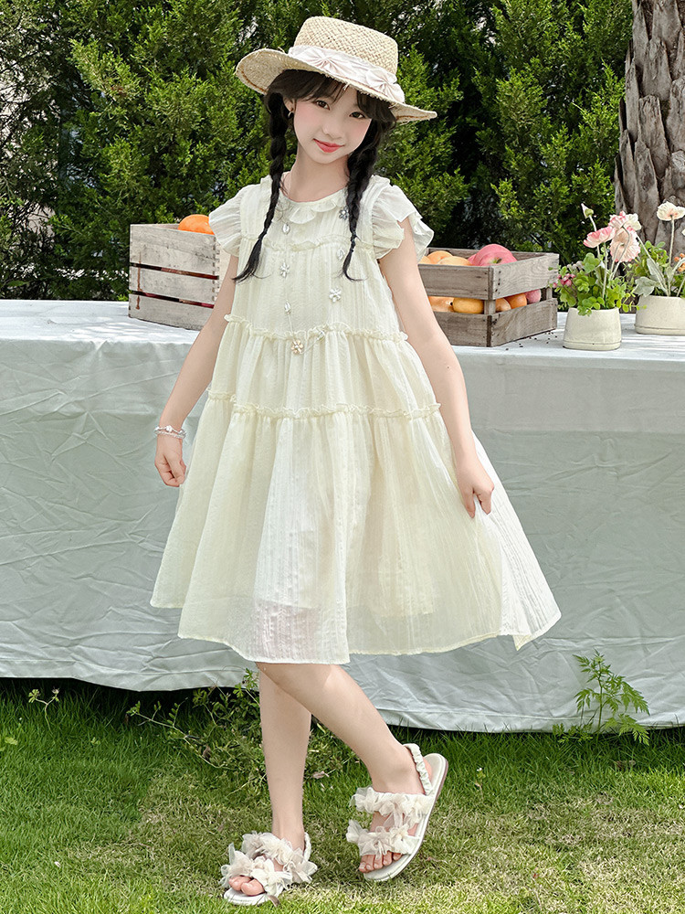 여자 드레스 여름 2025 새로운 인터넷 연예인 드레스 유행 어린이 공주 드레스 큰 어린이 여자 여름 거즈 드레스스토어 가기