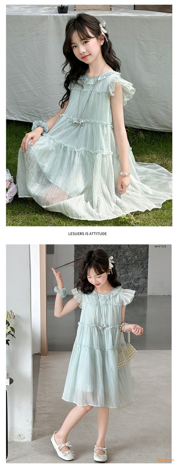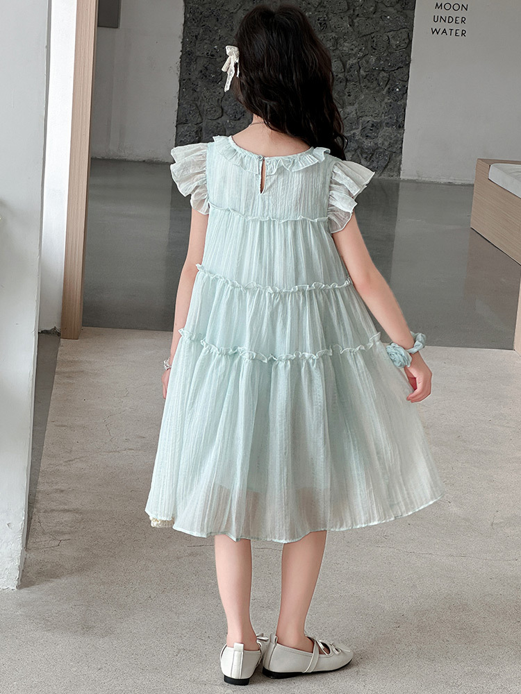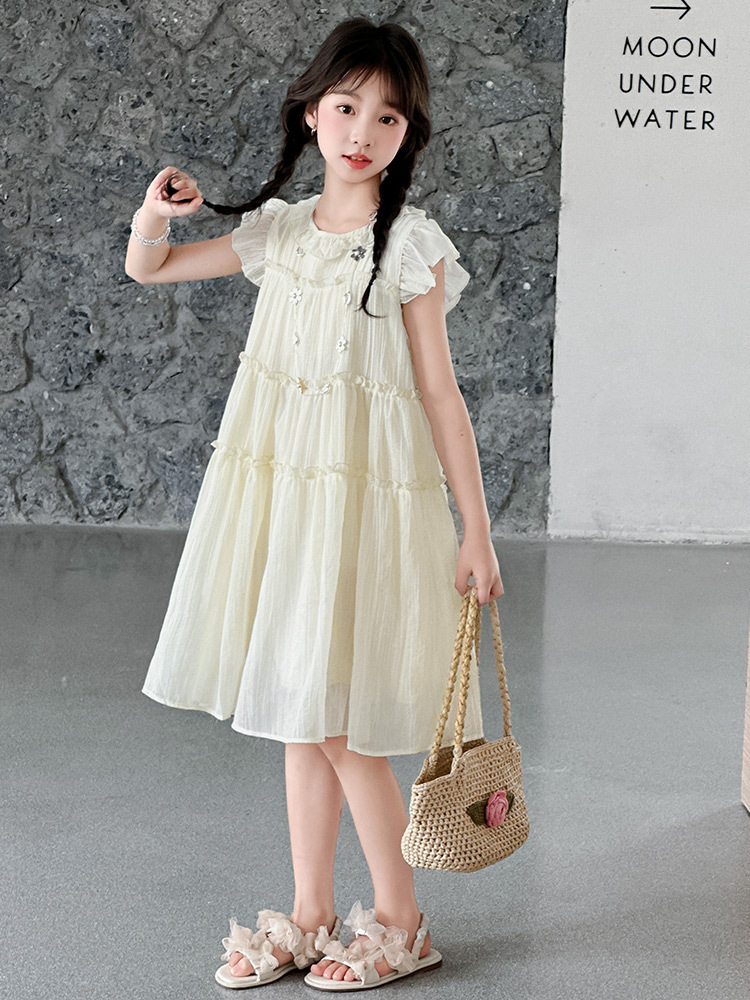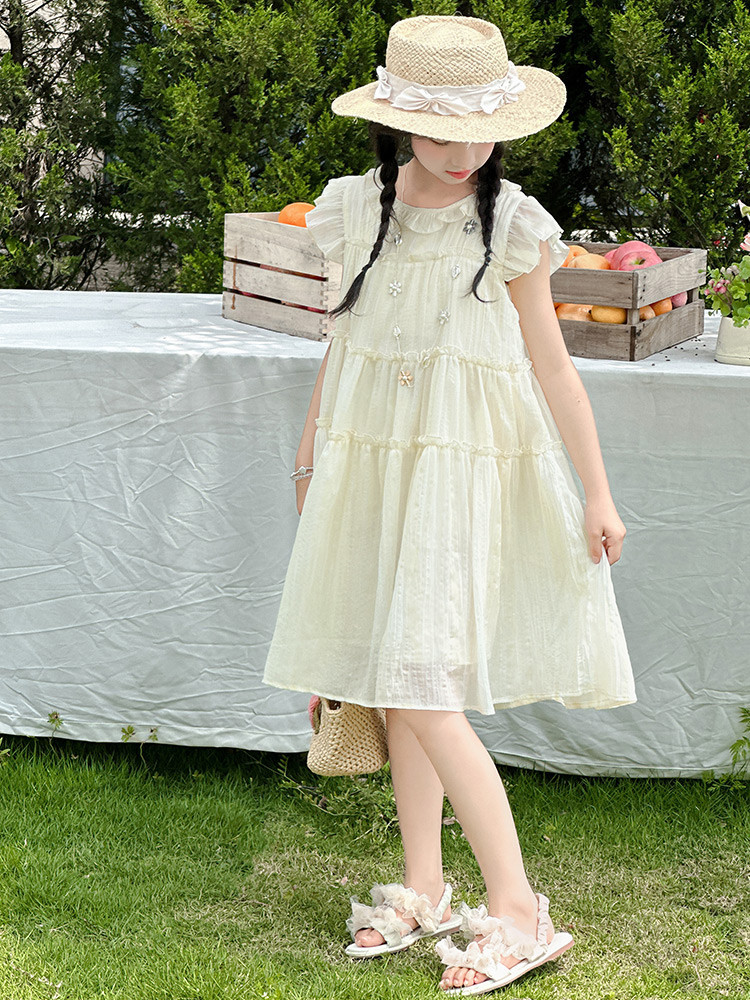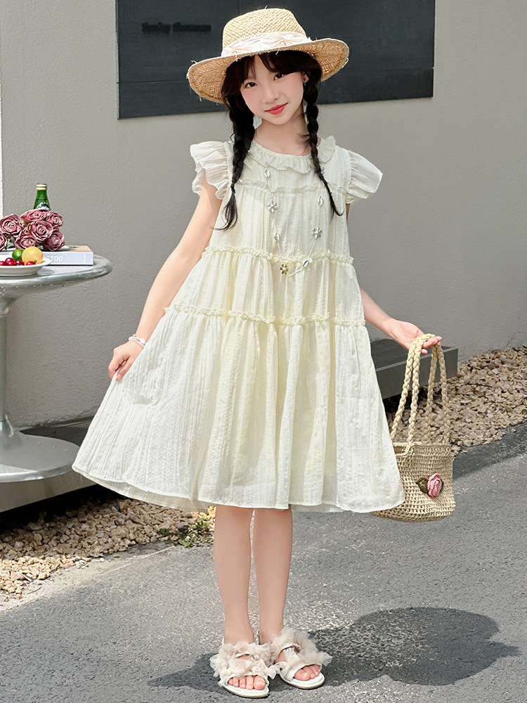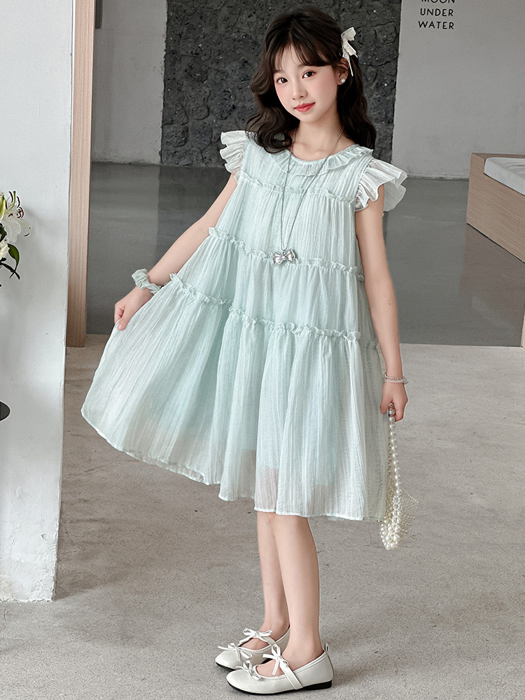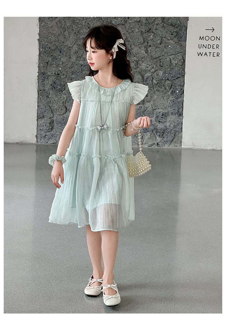 여자 드레스 여름 2025 새로운 인터넷 연예인 드레스 유행 어린이 공주 드레스 큰 어린이 여자 여름 거즈 드레스스토어 가기