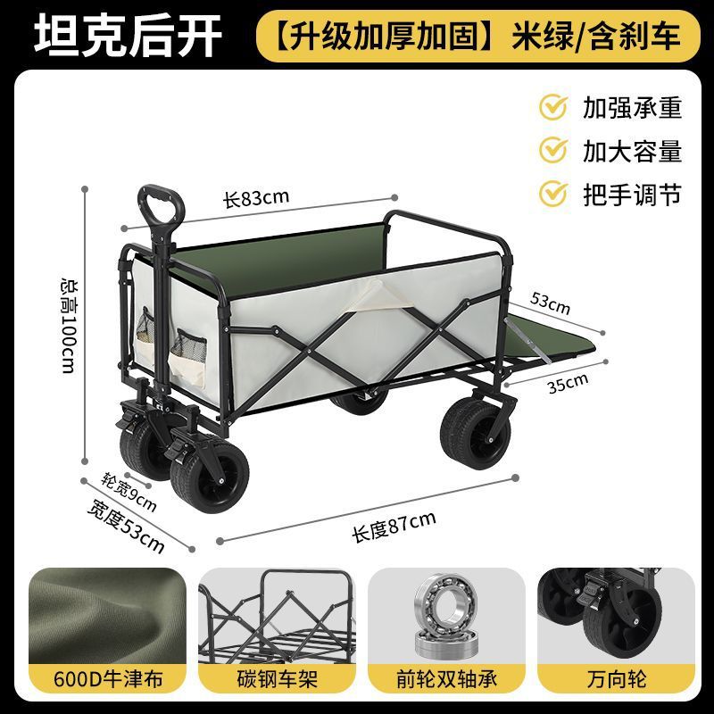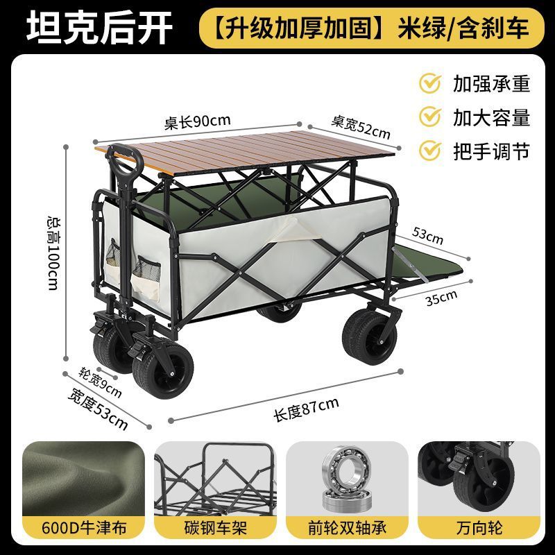 • 캠퍼밴 + 보조 접이식 테이블 + 우산 후면 버전 10inch 탱크 휠 카키/더블 브레이크
