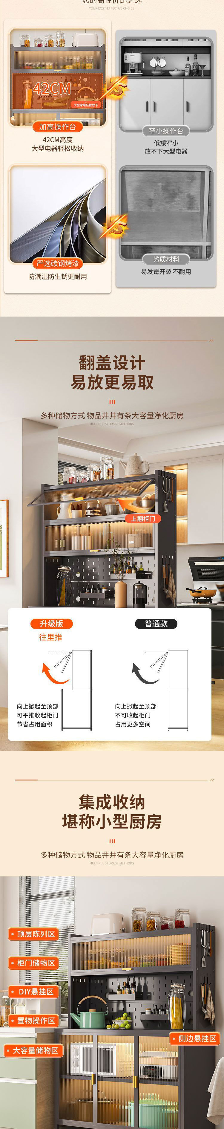 주방 탄소강 찬장 강철 철 작업대 보관함 다기능 현대식 간단한 보관 캐비닛 잡화 캐비닛스토어 가기