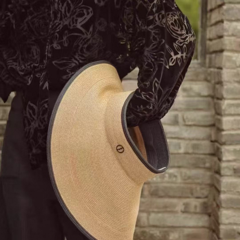 둥근 얼굴에 어울리는 포니테일로 묶을 수 있는 여성용 밀짚모자, 여름 한국식 챙이 큰 일본식 어부모자, 얼굴을 가리고 자외선을 차단하는 빈 모자