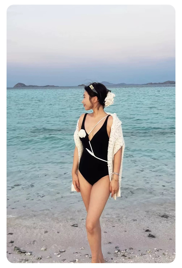 2025 하이 퀄리티 새로운 프랑스 수영복 입체 장미 섹시한 V 넥 삼각형 수영복 여성 핫 걸 스타일