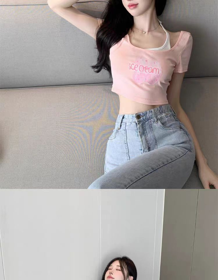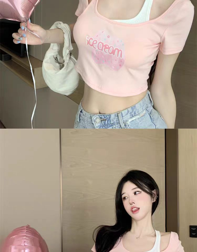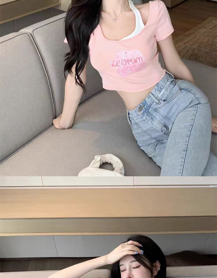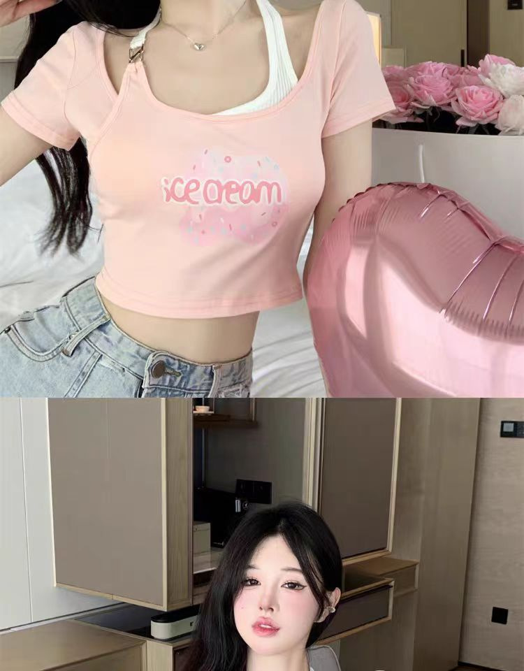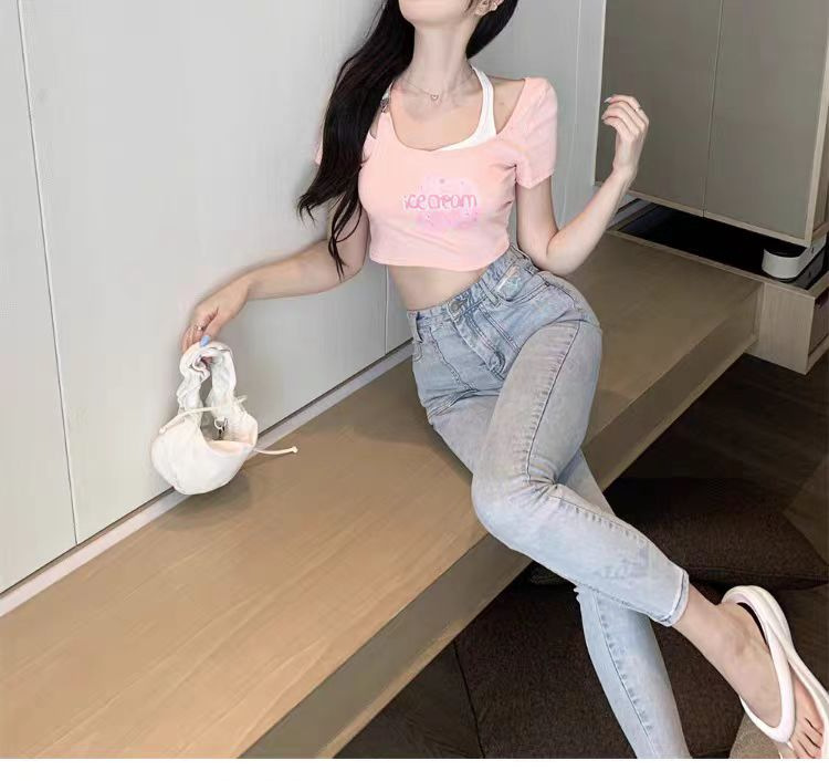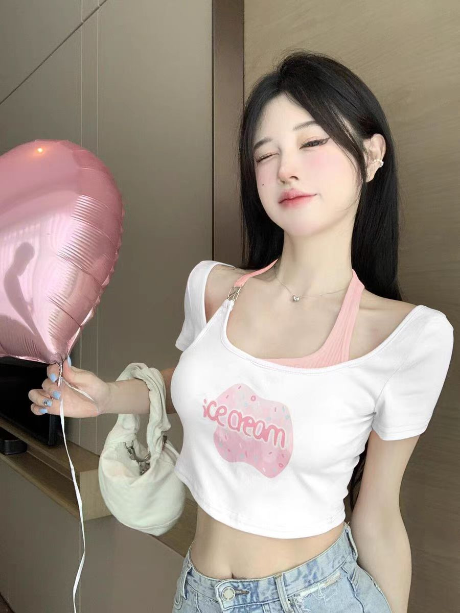 핫걸 반팔 티셔츠 여성 2024 여름 새로운 디자인 틈새 시장 독특한 허리 짧은 탑스토어 가기