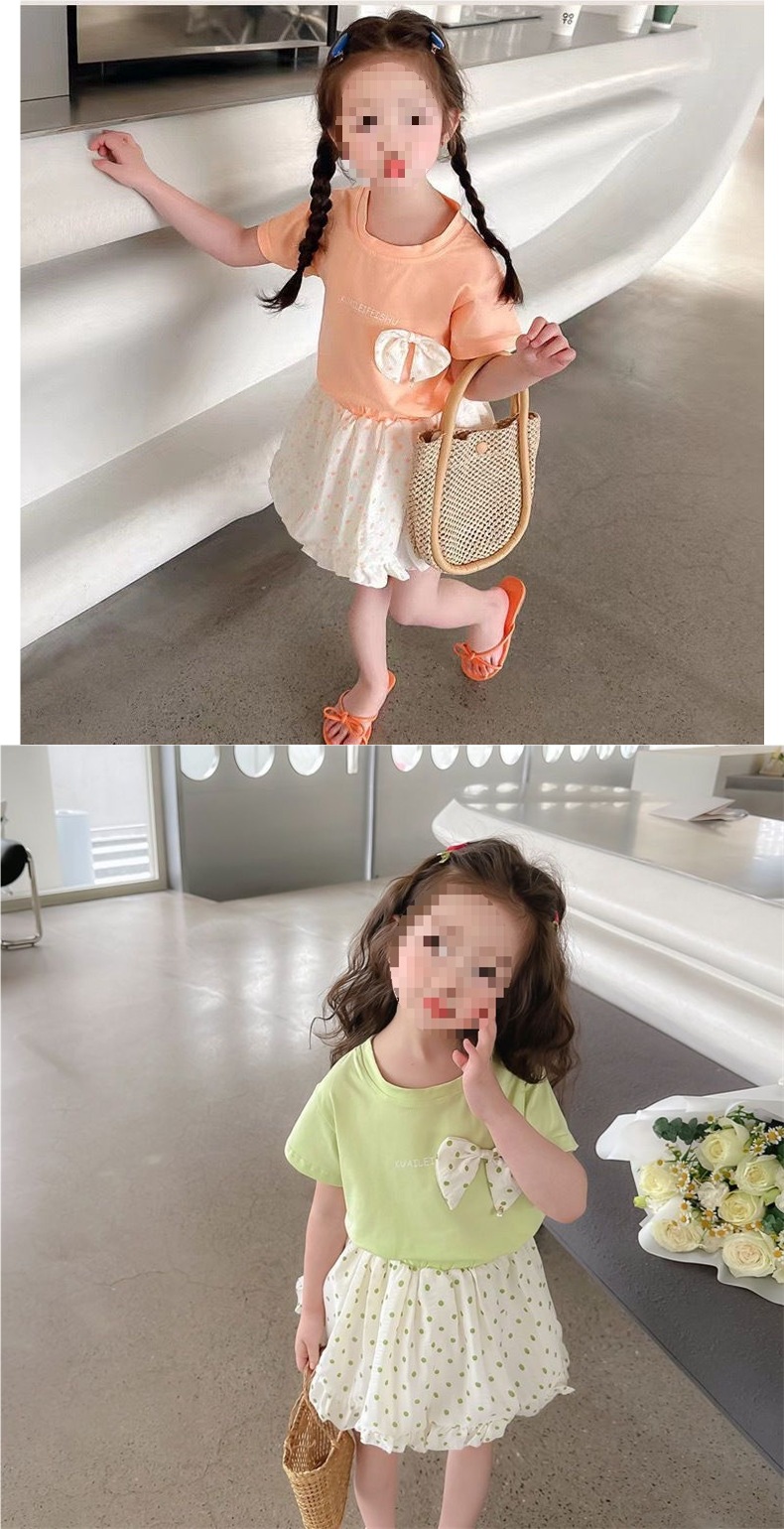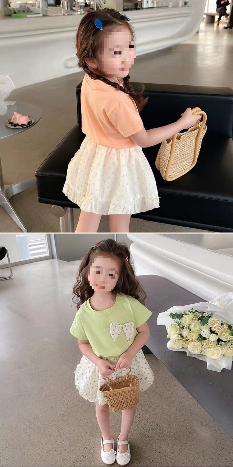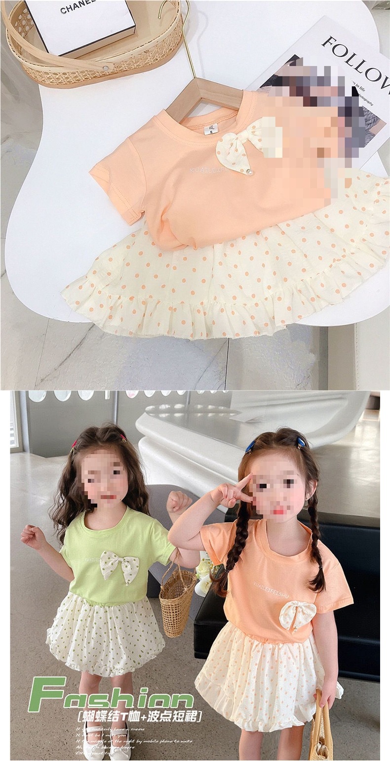 순면 여름 스타일 소녀와 어린이 반팔 티셔츠 탑 폴카 도트 스커트 투피스 아동 티셔츠 세트스토어 가기