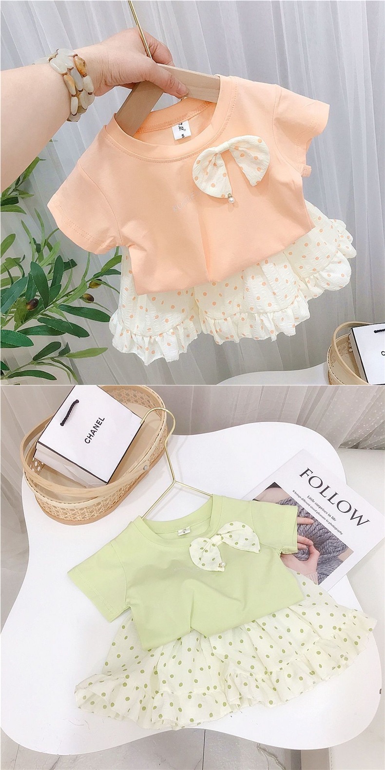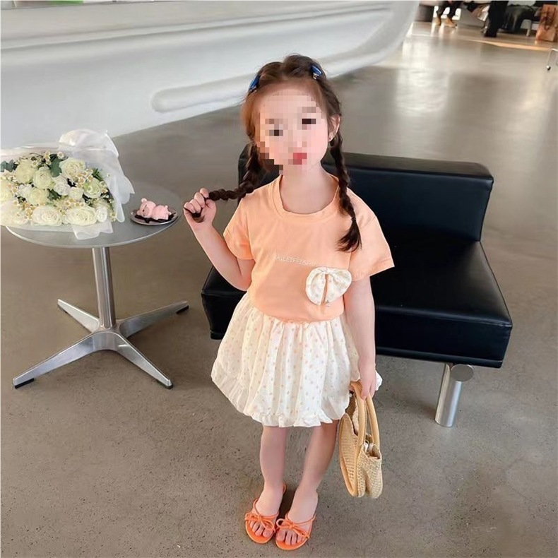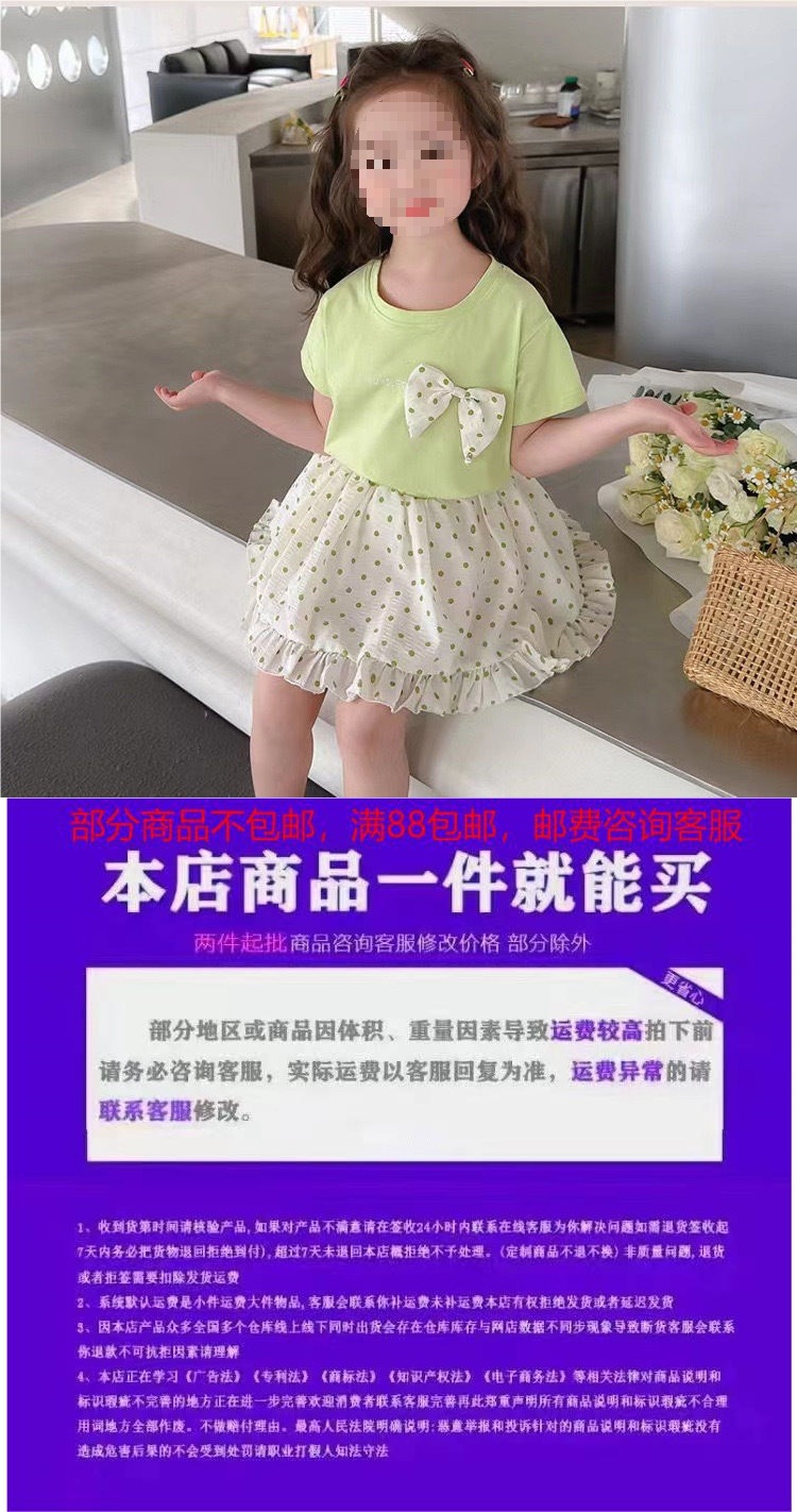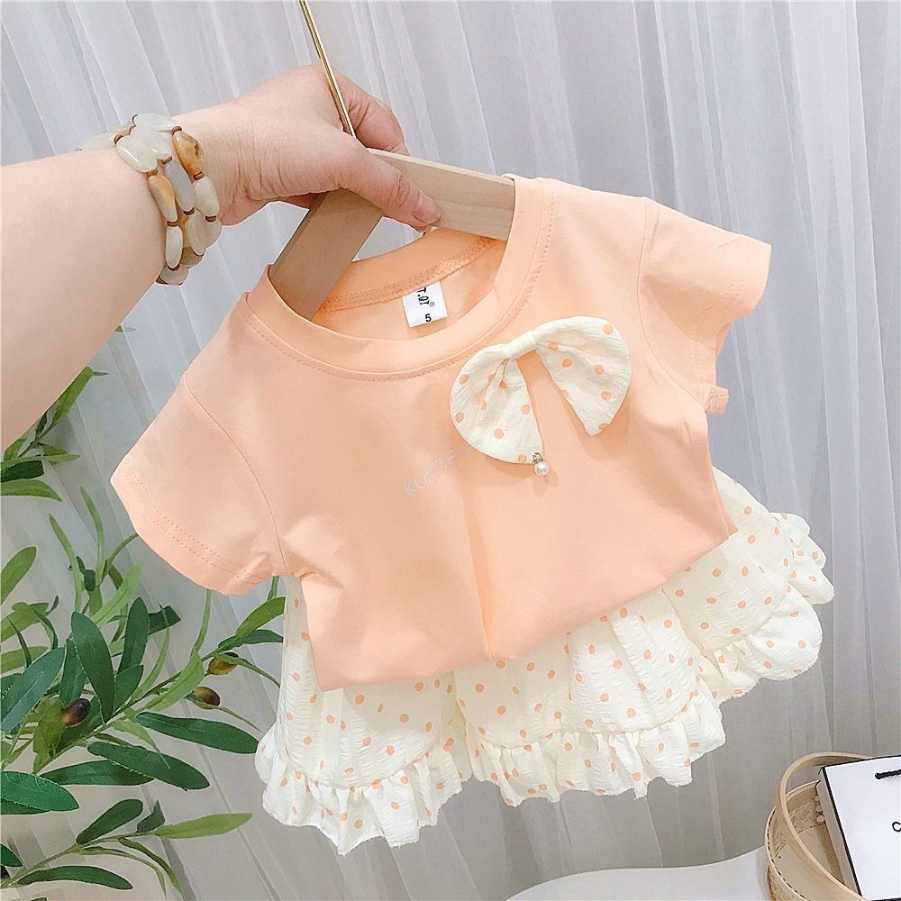 순면 여름 스타일 소녀와 어린이 반팔 티셔츠 탑 폴카 도트 스커트 투피스 아동 티셔츠 세트스토어 가기