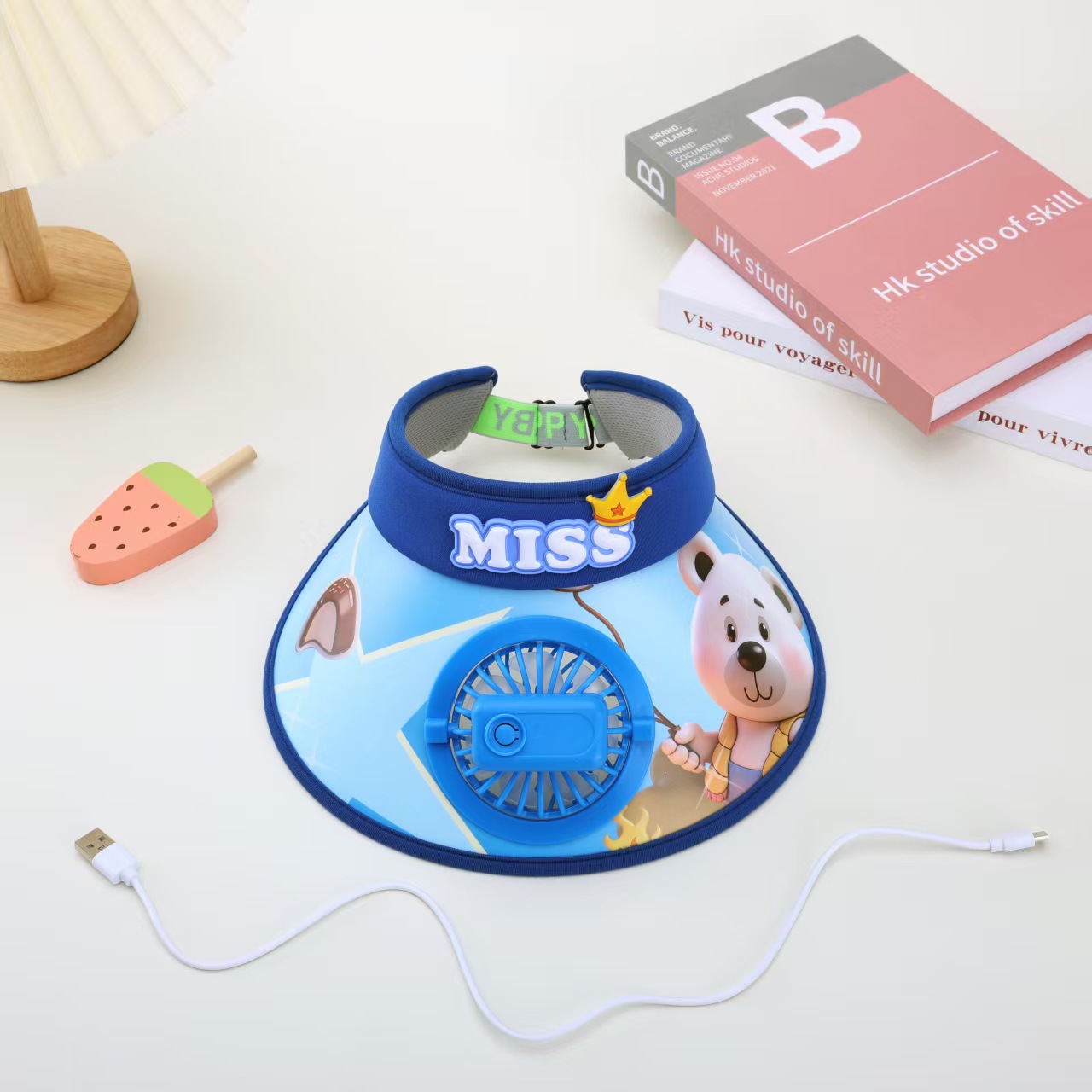 새로운 충전식 어린이용 팬 모자, 남아 및 여아용 자외선 차단 모자, 여아용 챙 없는 태양 모자