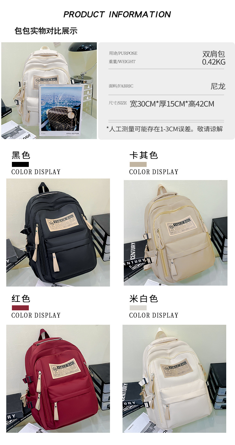 새로운 학교 가방 방수 중학생 대용량 솔리드 컬러 배낭 여자 고등학생 옥스포드 천 배낭 캐주얼하고 다재다능한스토어 가기