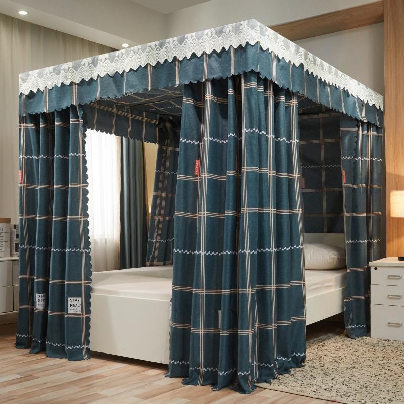 침대 커튼 가정용 바닥부터 천장까지 빛을 차단하는 모기장 일체형 침실 두꺼운 완전 밀폐형 침대 불투명 침대 커튼 싱글 및 더블 침대