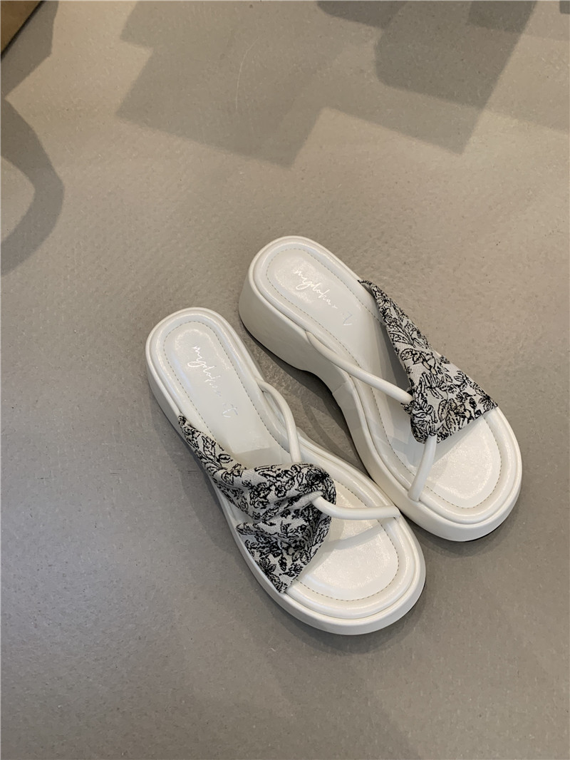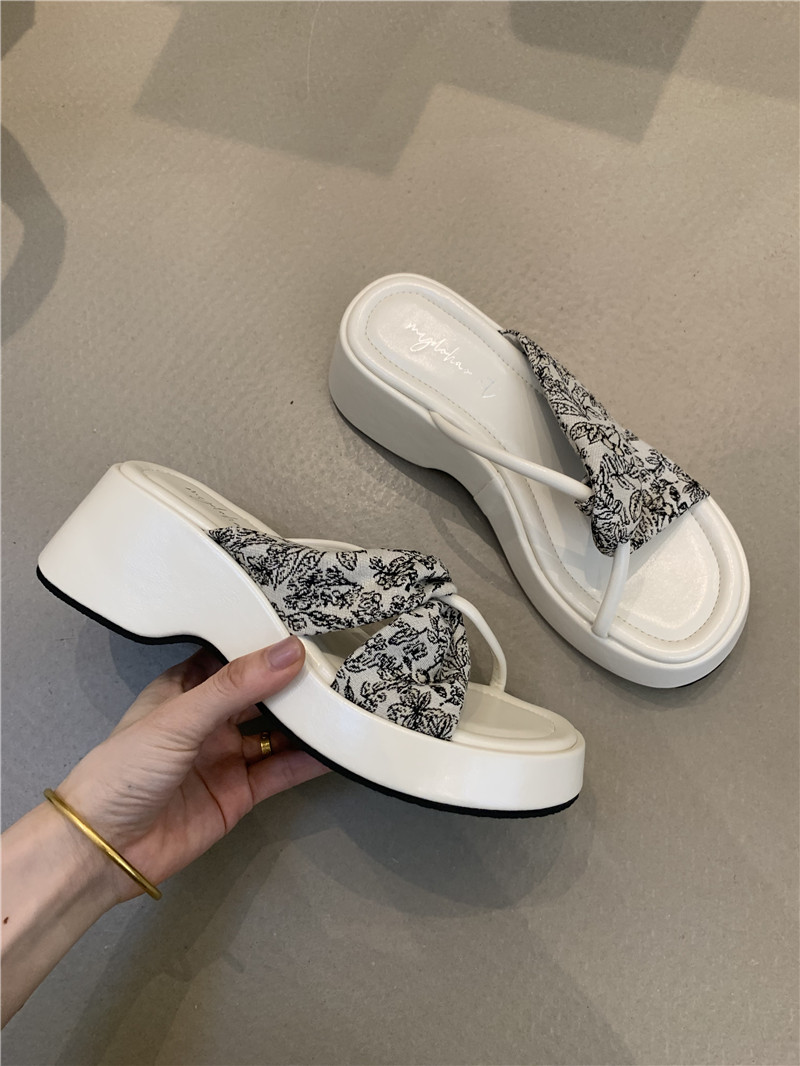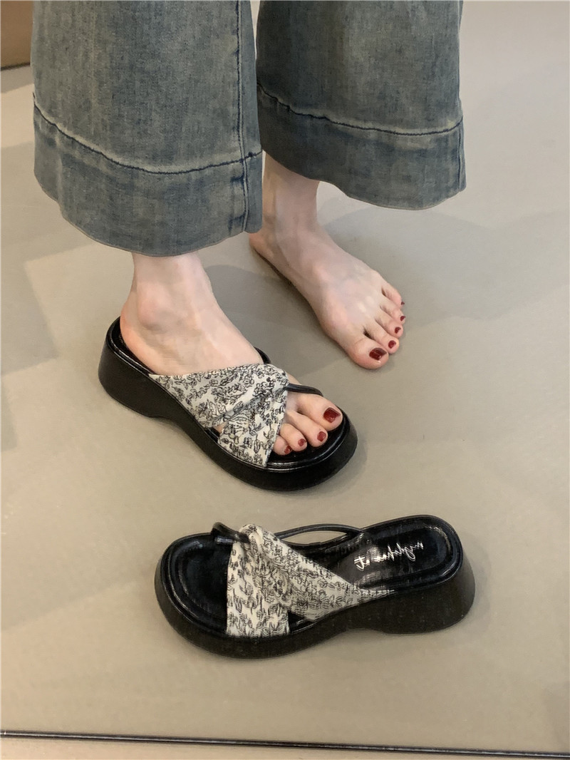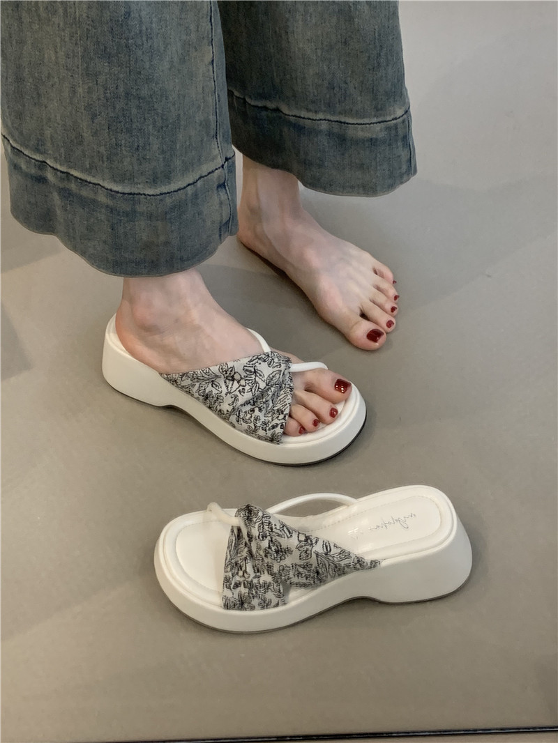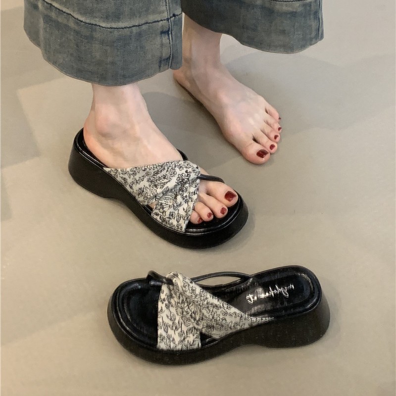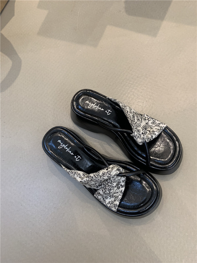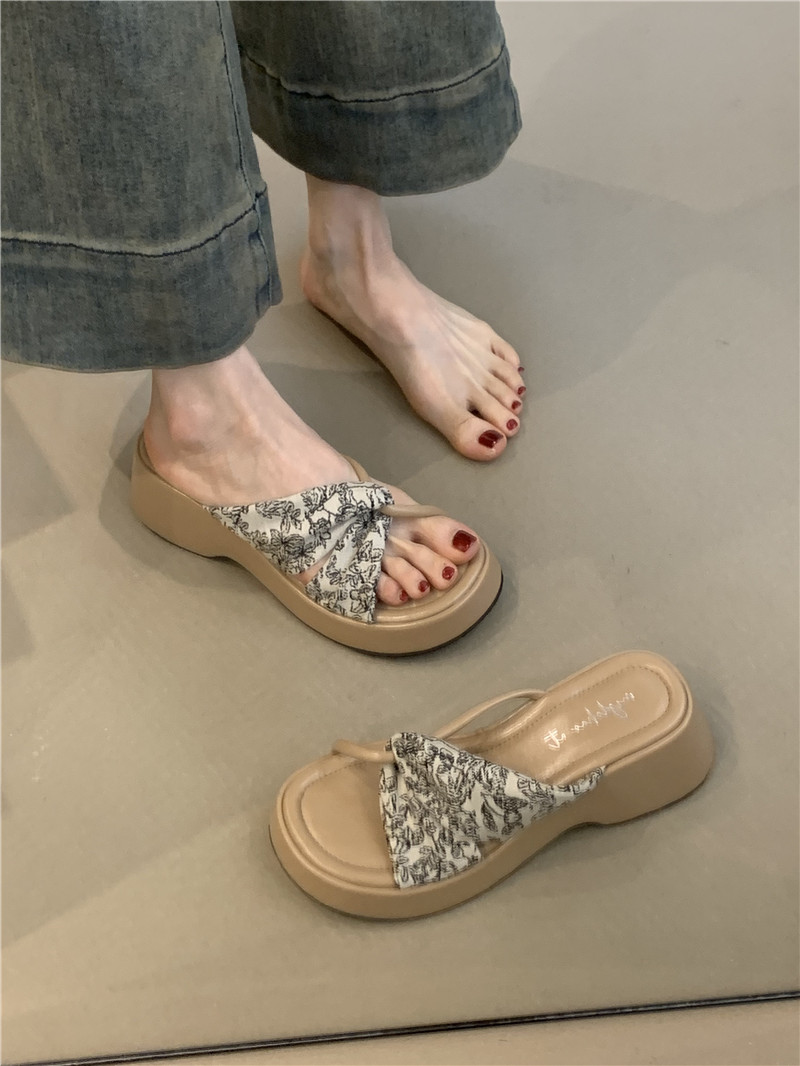 두꺼운 밑창 작은 샌들 2025 여름 프랑스 스타일 복고풍 나비 매듭 오픈 발가락 휴가 슬리퍼 여성 신발스토어 가기