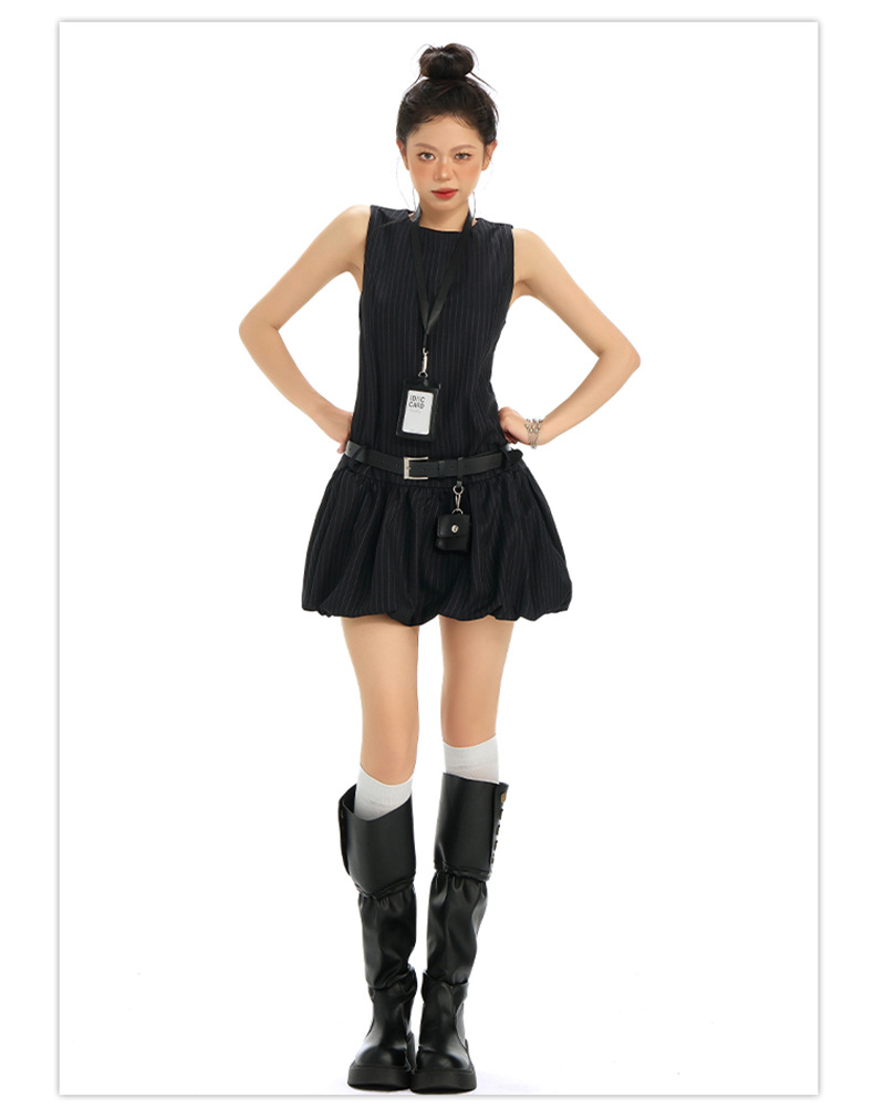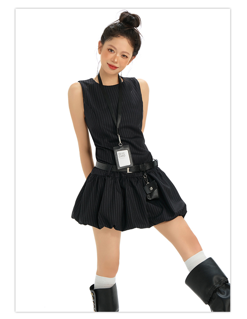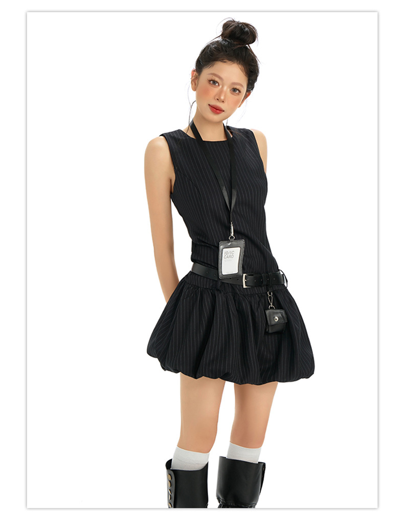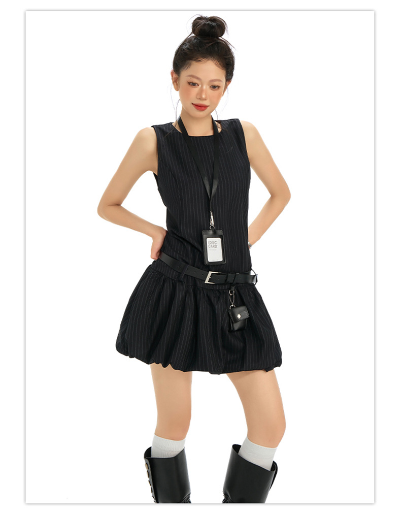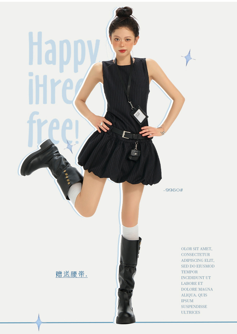 25 번째 ootd! | 벨트 원피스 허리 슬림 푹신한 꽃 봉오리 치마와 하이 엔드 민소매 조끼