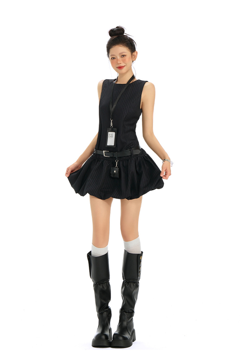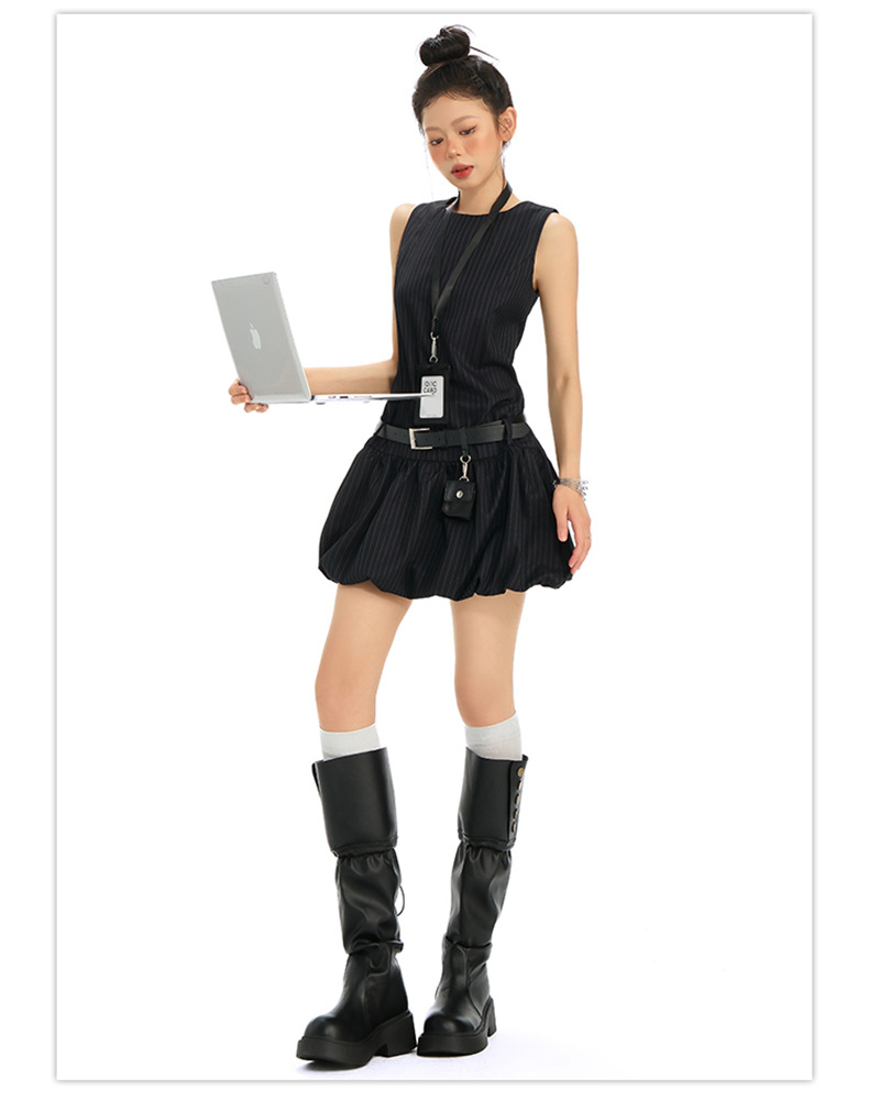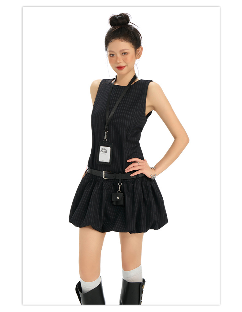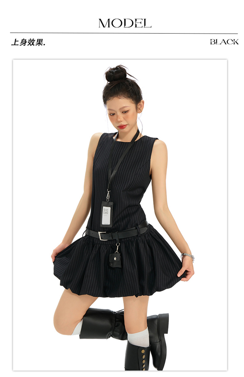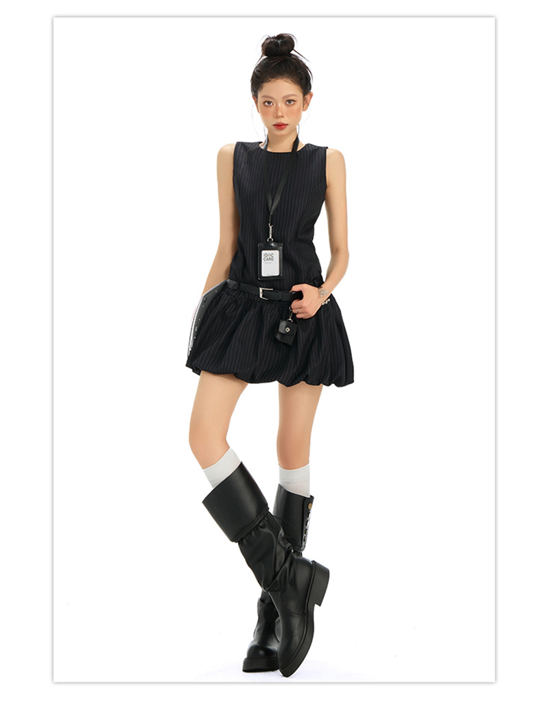 25 번째 ootd! | 벨트 원피스 허리 슬림 푹신한 꽃 봉오리 치마와 하이 엔드 민소매 조끼