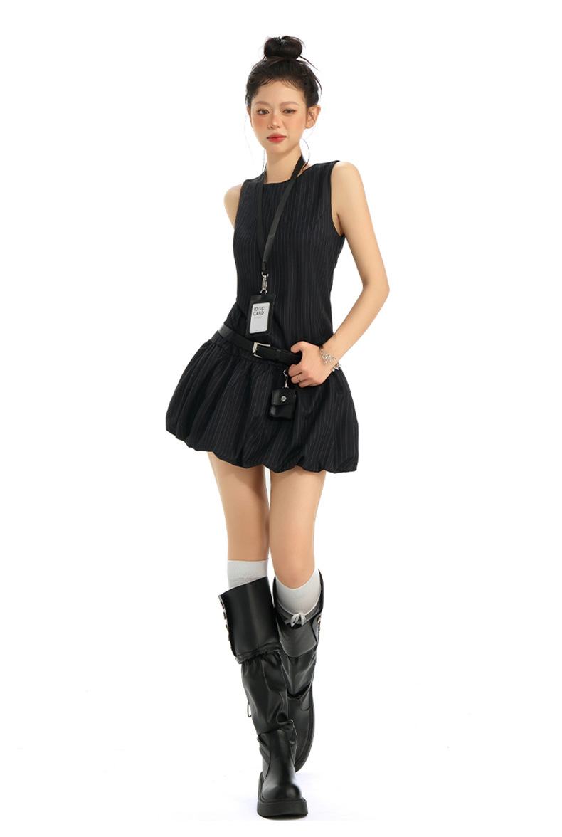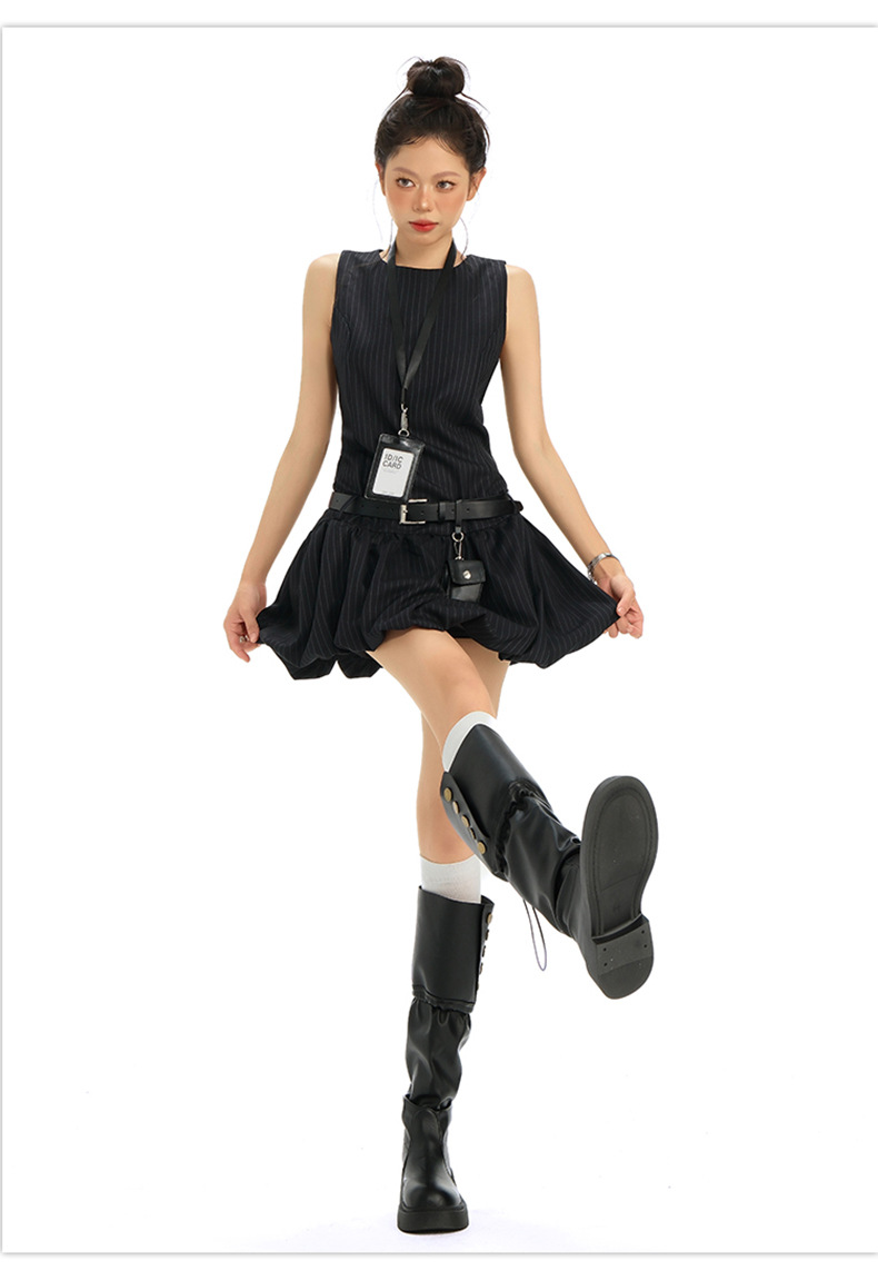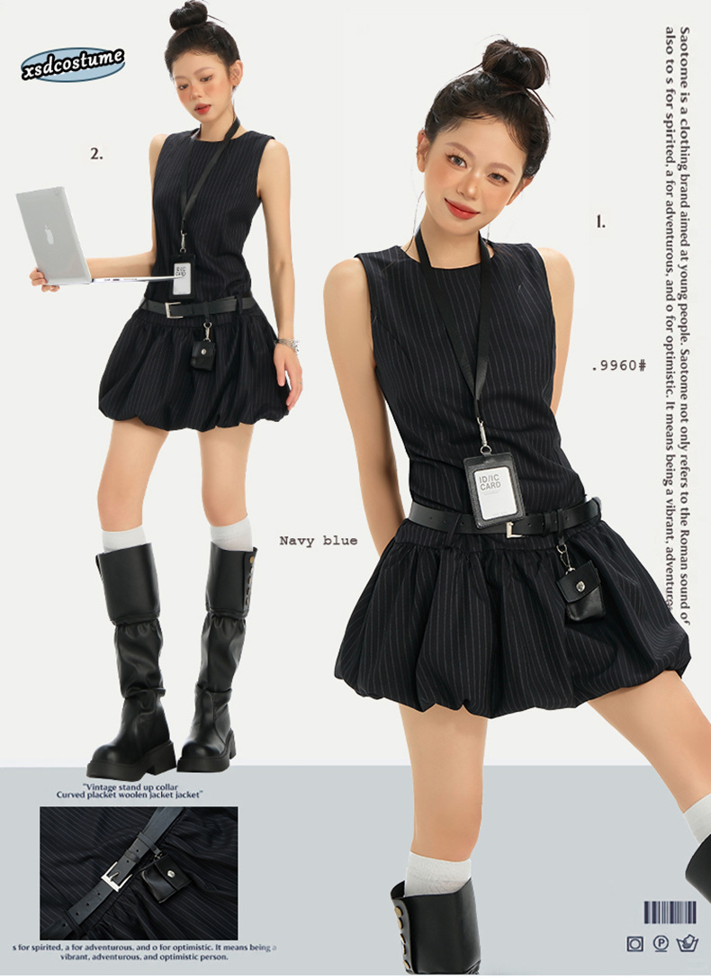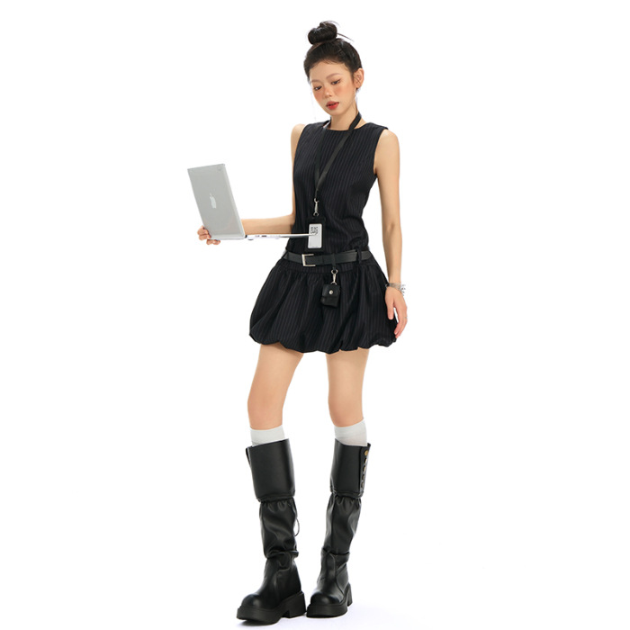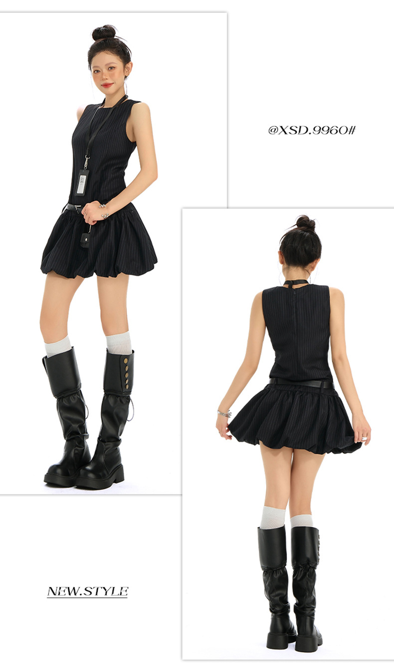 25 번째 ootd! | 벨트 원피스 허리 슬림 푹신한 꽃 봉오리 치마와 하이 엔드 민소매 조끼