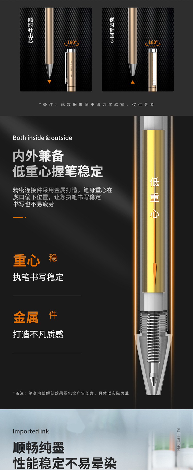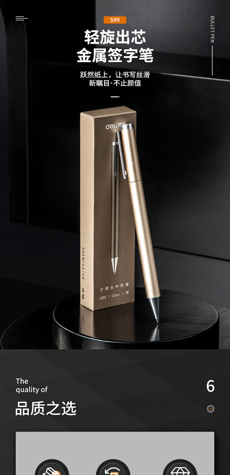 델리 젤펜 S99 개별 포장 0.5mm 카본펜 샴페인 골드/실버 회전식 메탈 서명펜 도매
