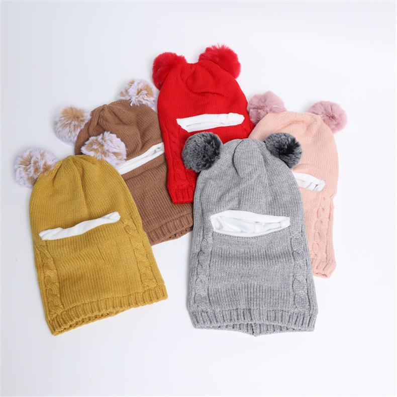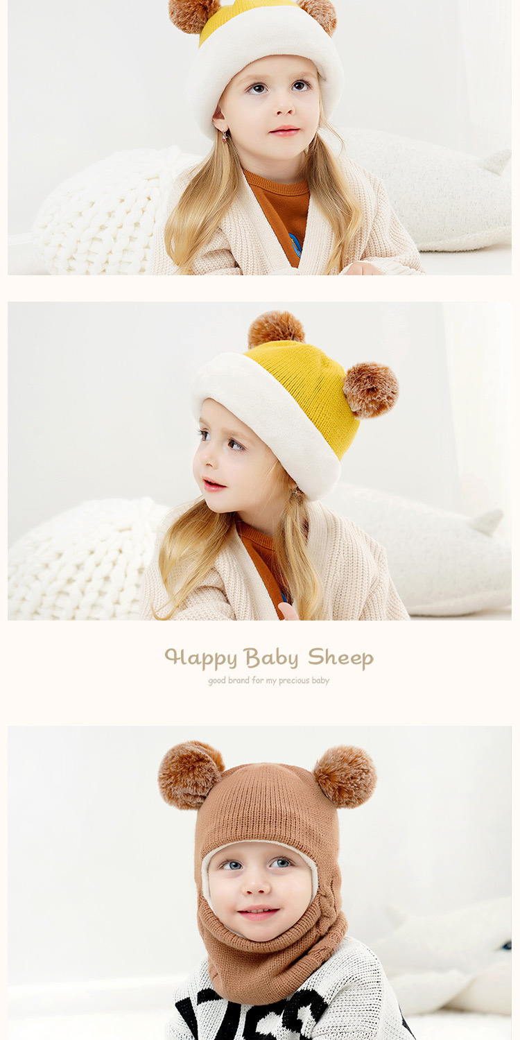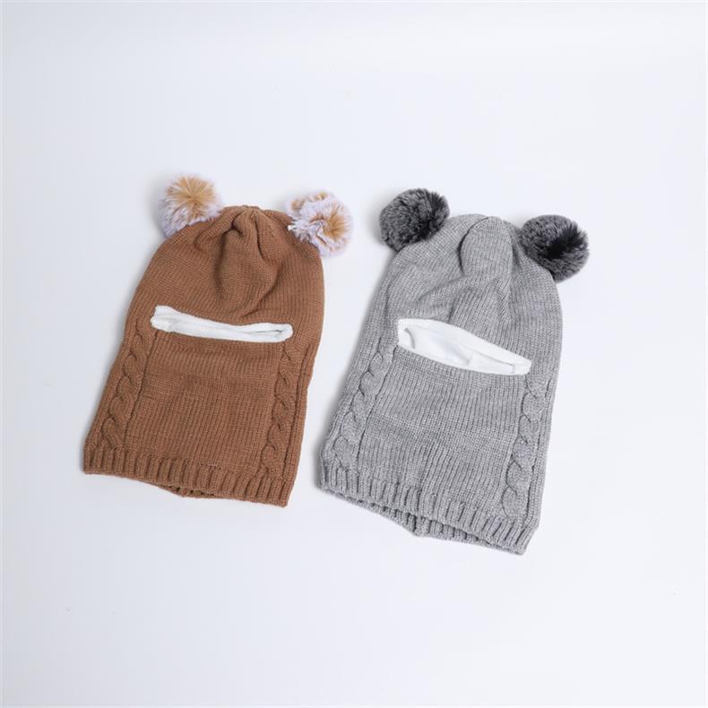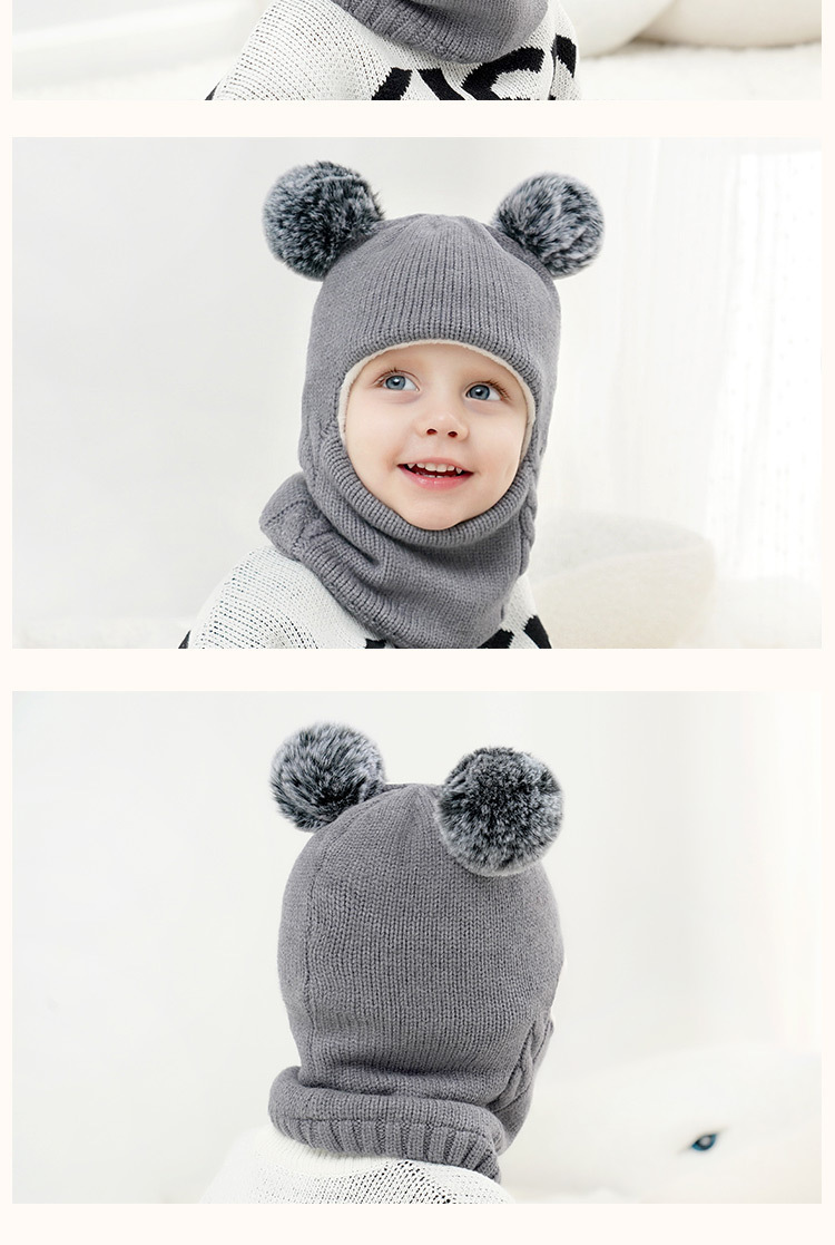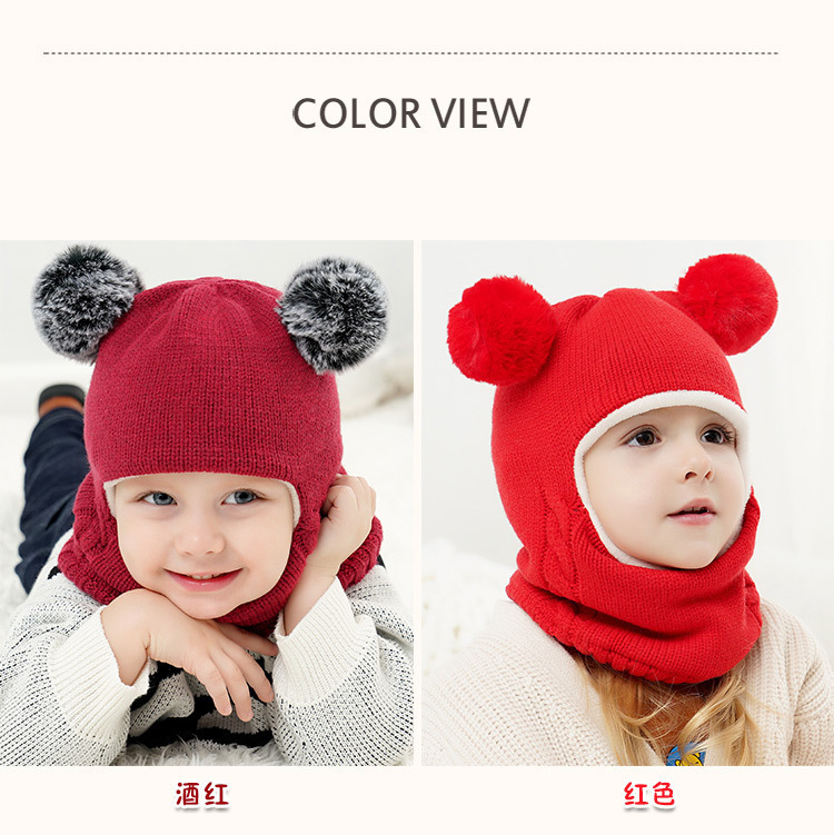 고급 Temu 인기 겨울 어린이 모자와 스카프 일체형 벨벳 귀 보호 후드 아기 니트 어린이