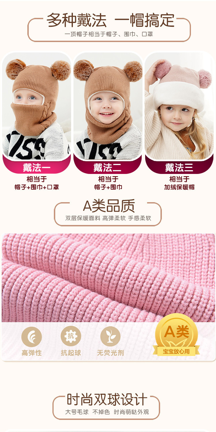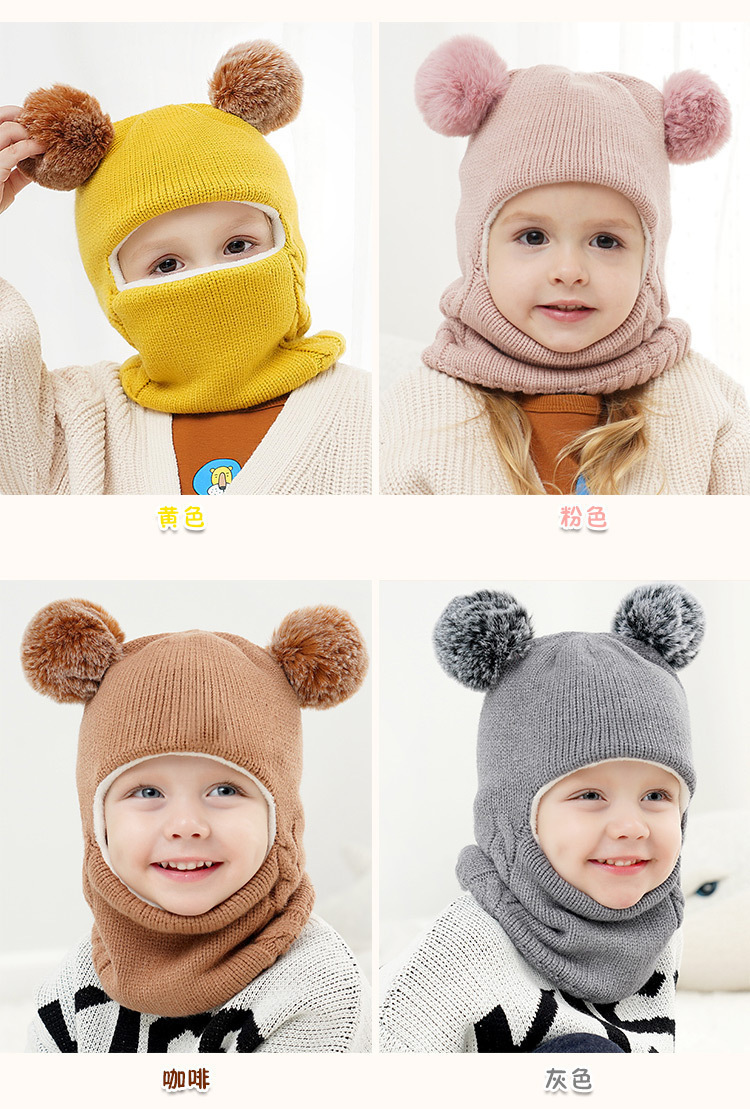 고급 Temu 인기 겨울 어린이 모자와 스카프 일체형 벨벳 귀 보호 후드 아기 니트 어린이스토어 가기