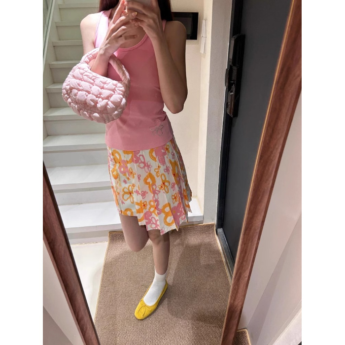 국경 간 대외 무역 미국 핫 소녀 불규칙한 꽃 주름 치마 꽃 무늬 짧은 치마 여름 캐주얼 프린트 스커트 여성용스토어 가기