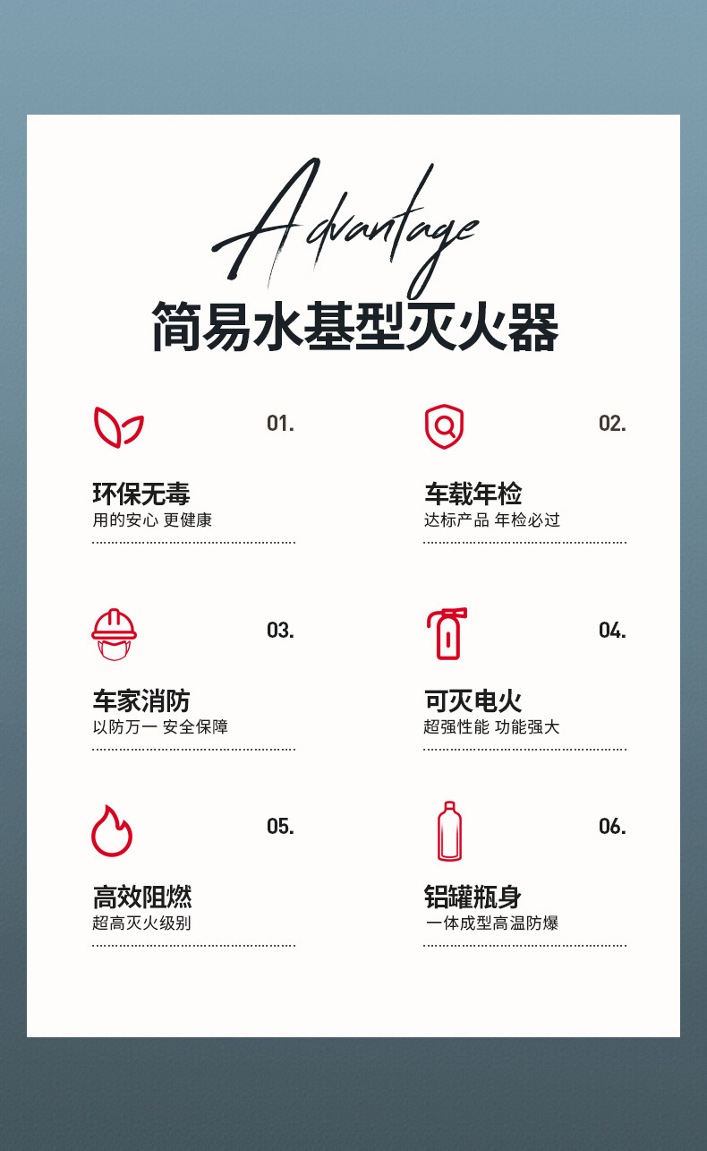 자동차 소화기 13B 물 기반 자동차 소화기 600ML 가정용 휴대용 자동차 연간 검사 소방 장비
