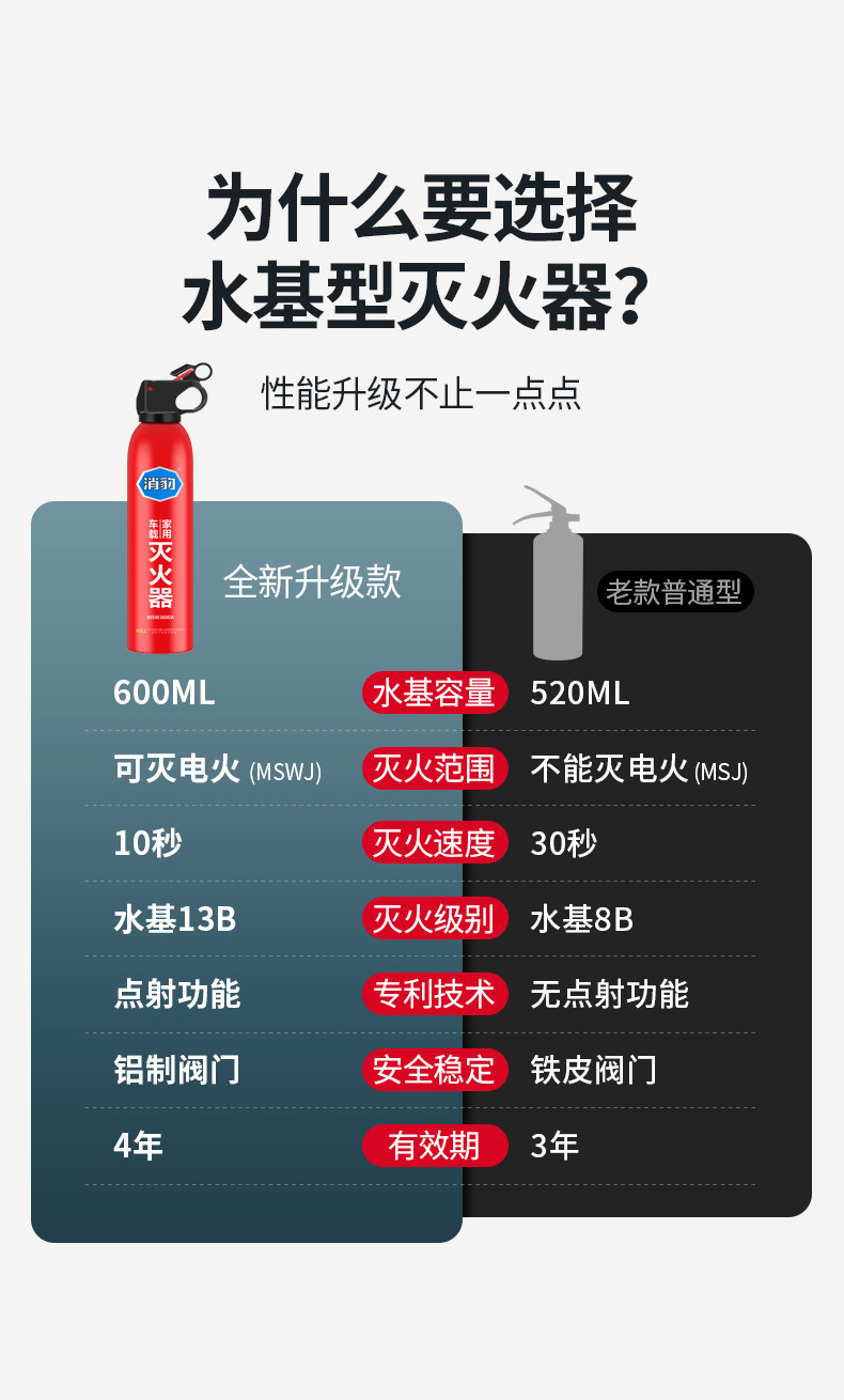 자동차 소화기 13B 물 기반 자동차 소화기 600ML 가정용 휴대용 자동차 연간 검사 소방 장비스토어 가기
