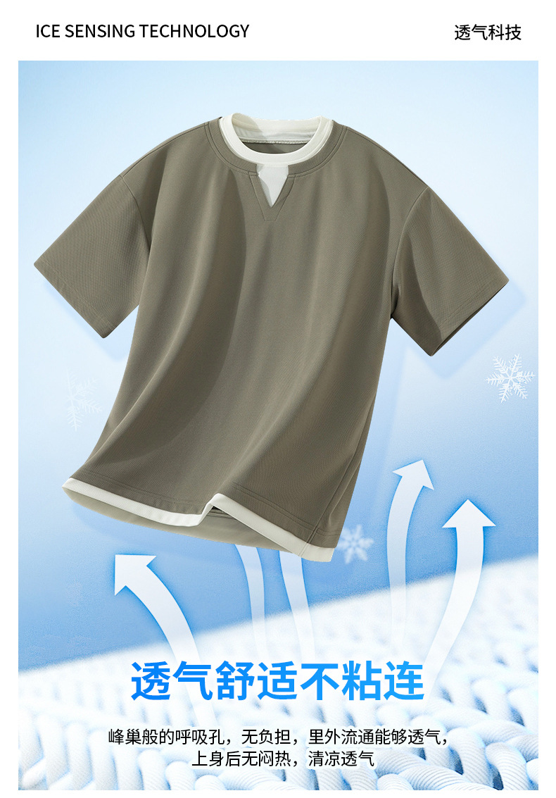 아메리칸 스타일 페이크 투피스 슈트 남성용 브이넥 티셔츠 남성용 여름 얼음 느낌 통기성 트렌디 브랜드 아웃도어 스포츠 루즈 세트스토어 가기