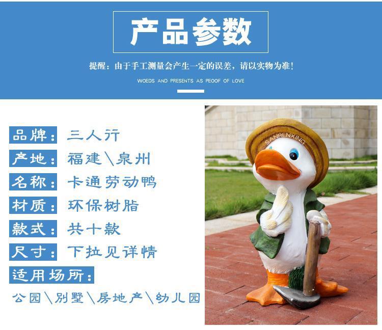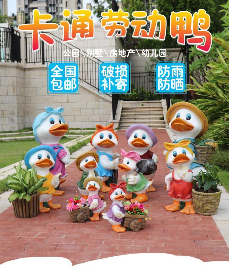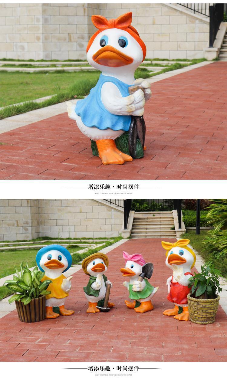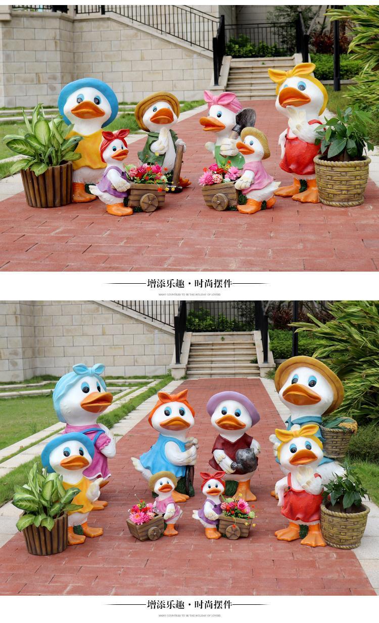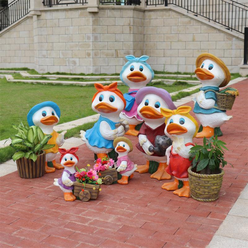 야외 오리 조각 유리 섬유 강화 플라스틱 정원 만화 쇼핑몰 장식품 부동산 지구 동물 장식스토어 가기