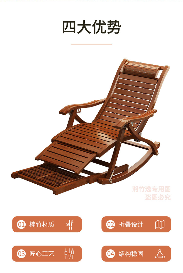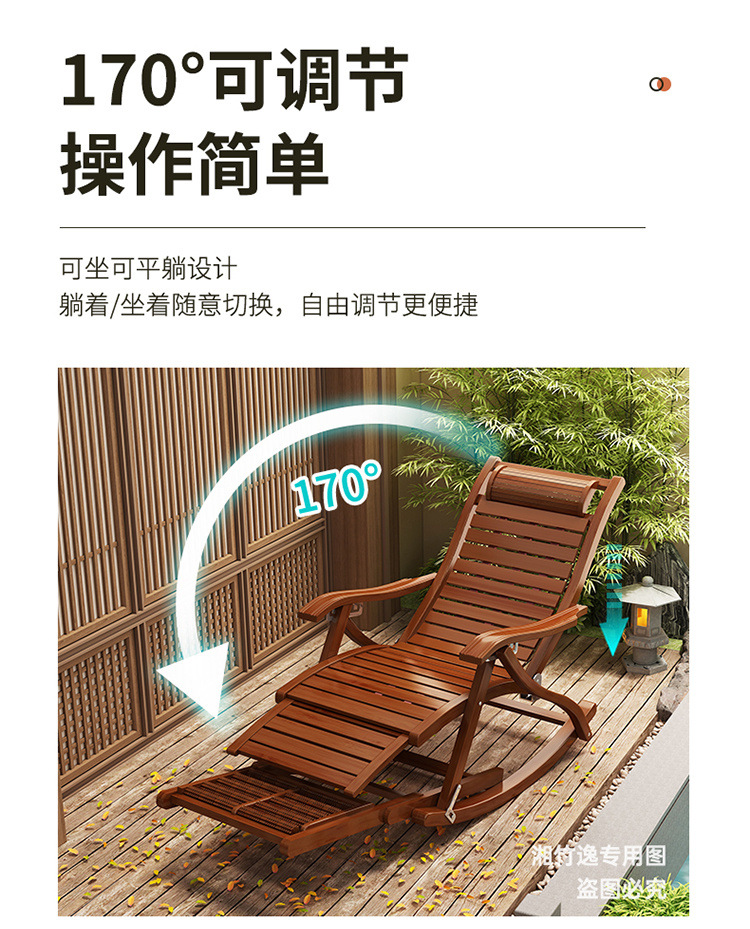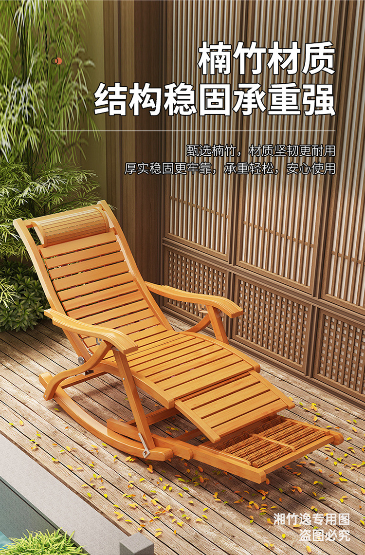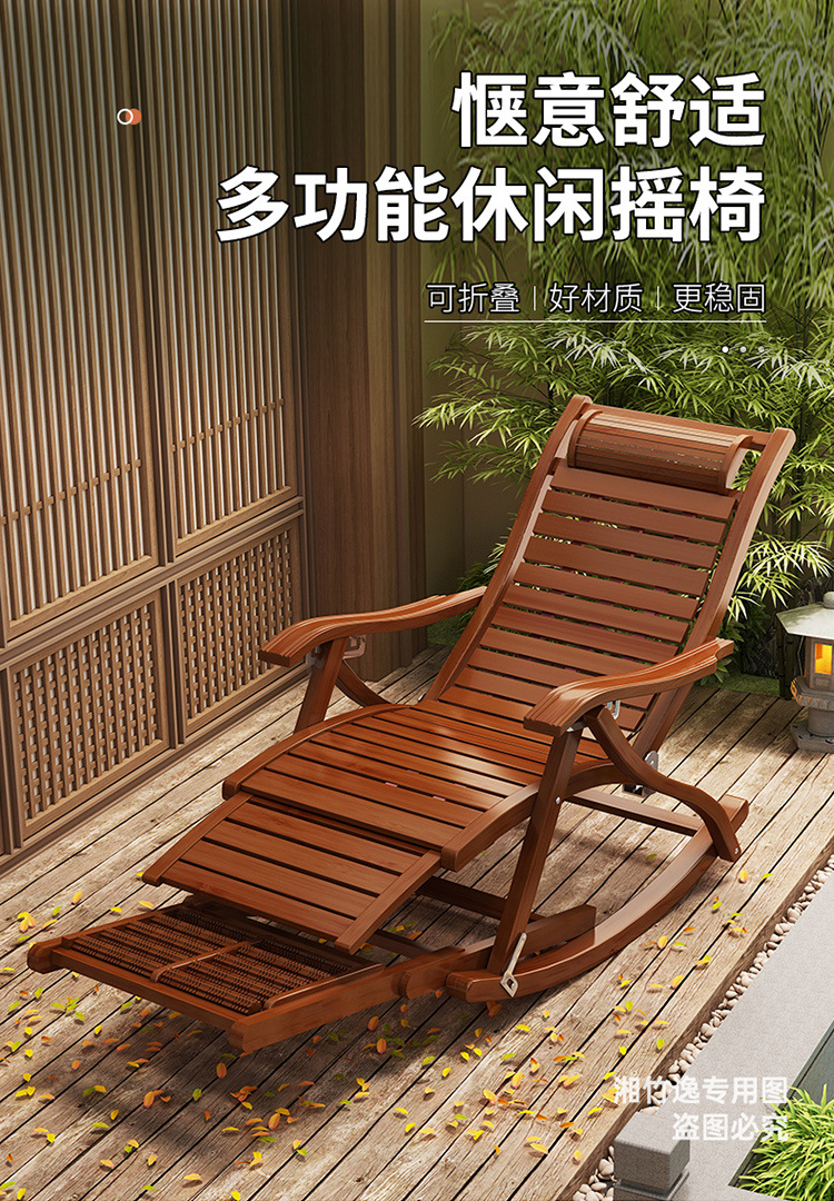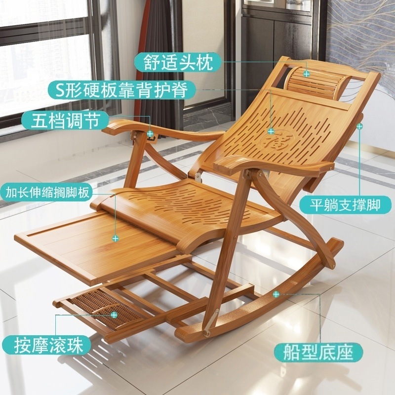 흔들의자, 안락의자, 성인용 가정용 접이식 낮잠노인 흔들의자, 게으른 레저 발코니 등받이 대나무 흔들의자스토어 가기