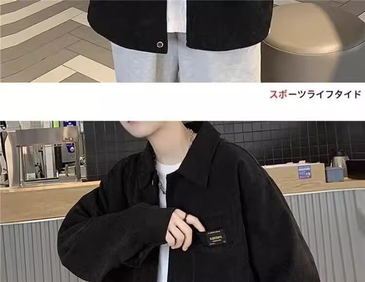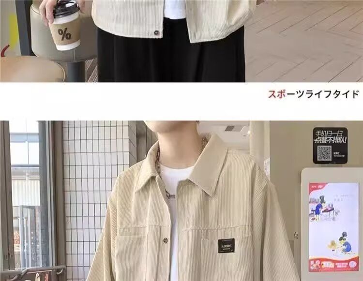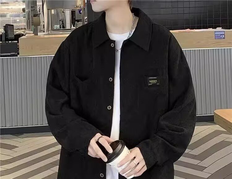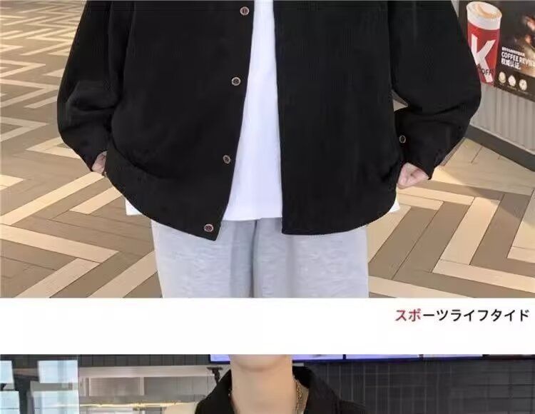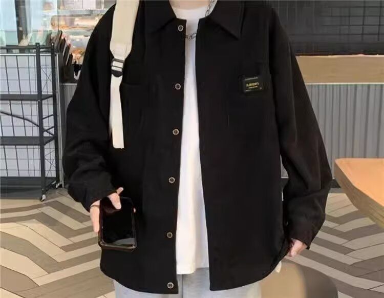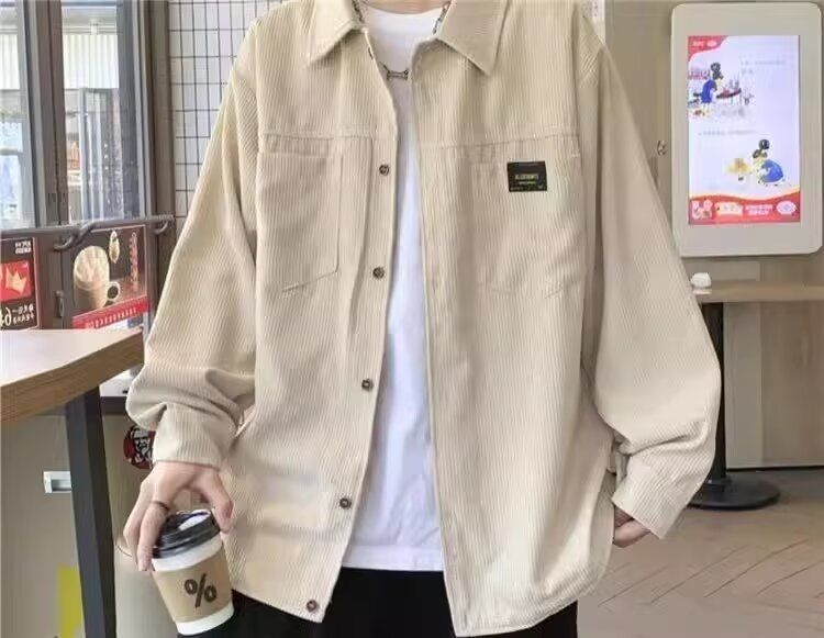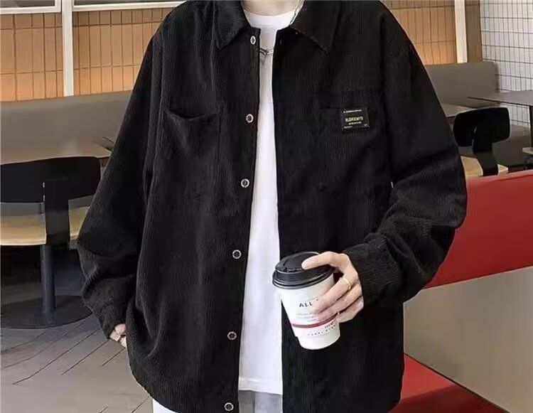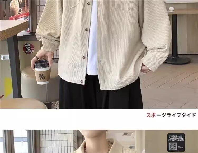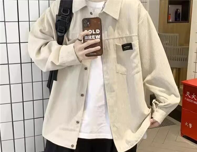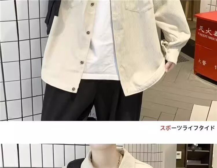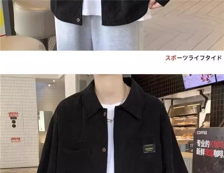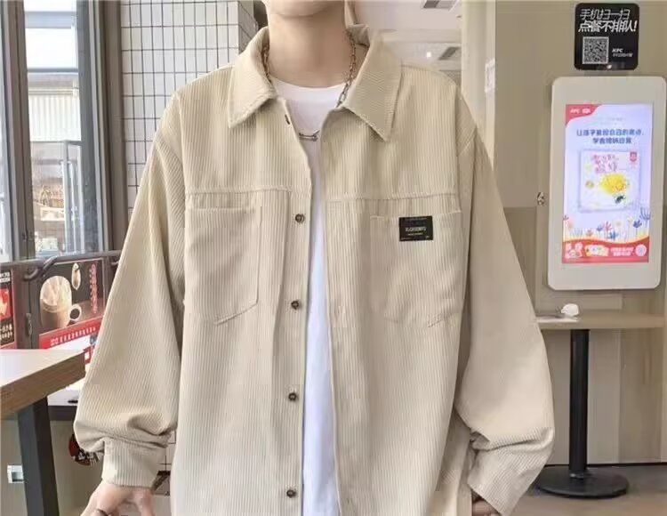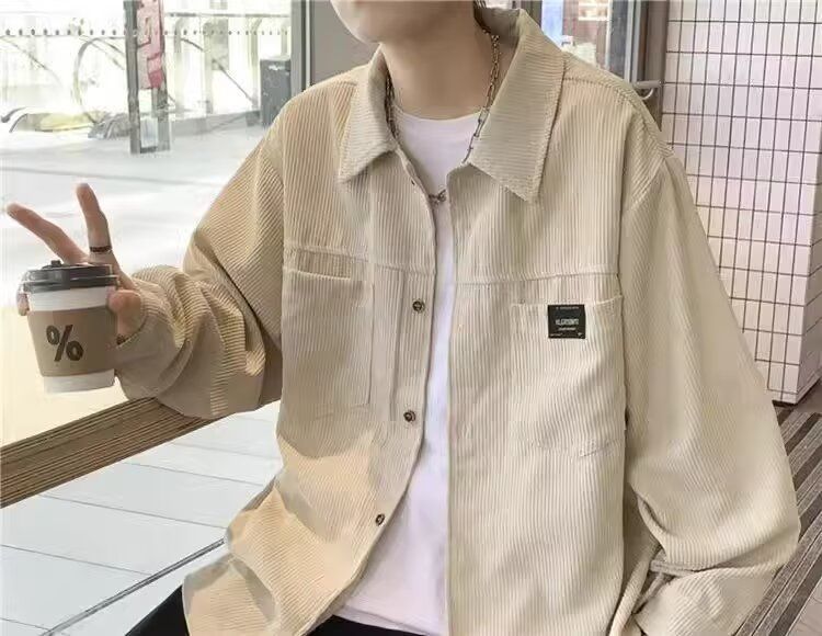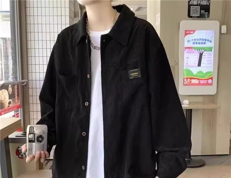 홍콩 스타일 남성 패션 코듀로이 긴팔 셔츠 캐주얼 작업복 탑 봄 학생 루즈 플러스 사이즈 셔츠 트렌디스토어 가기
