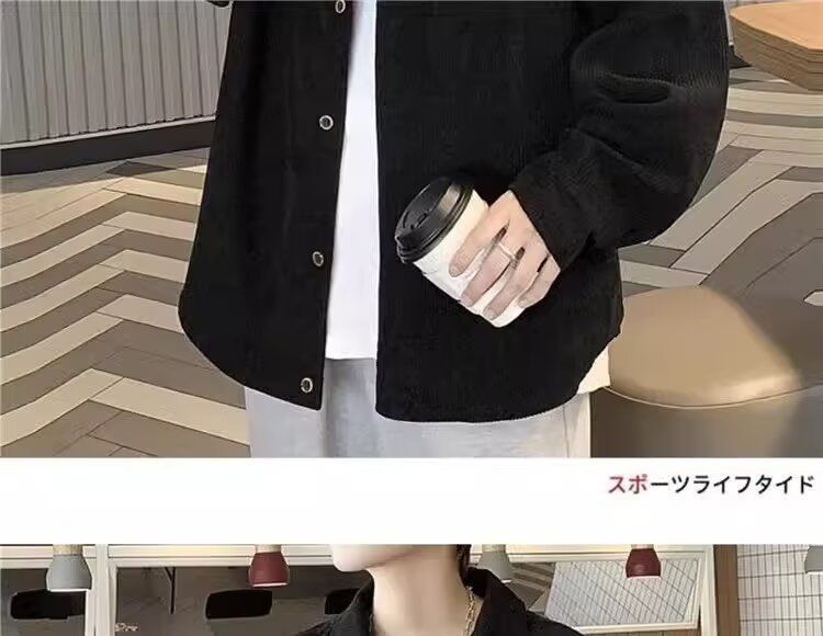 홍콩 스타일 남성 패션 코듀로이 긴팔 셔츠 캐주얼 작업복 탑 봄 학생 루즈 플러스 사이즈 셔츠 트렌디