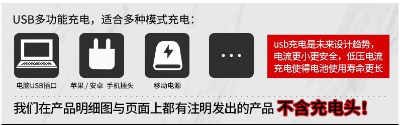 • 센서 없음 9900w, 배터리 수명 150시간, USB 직접 충전