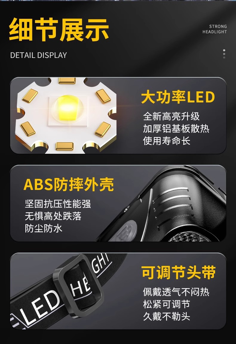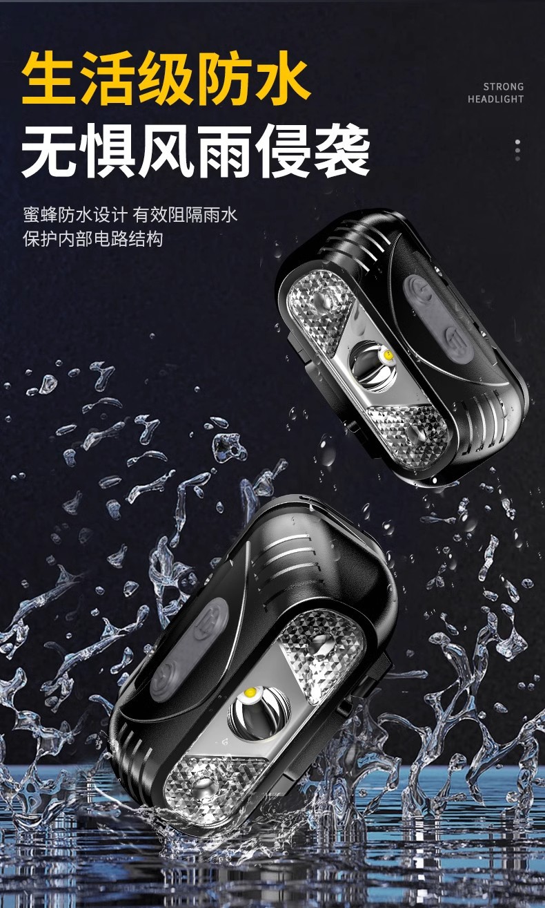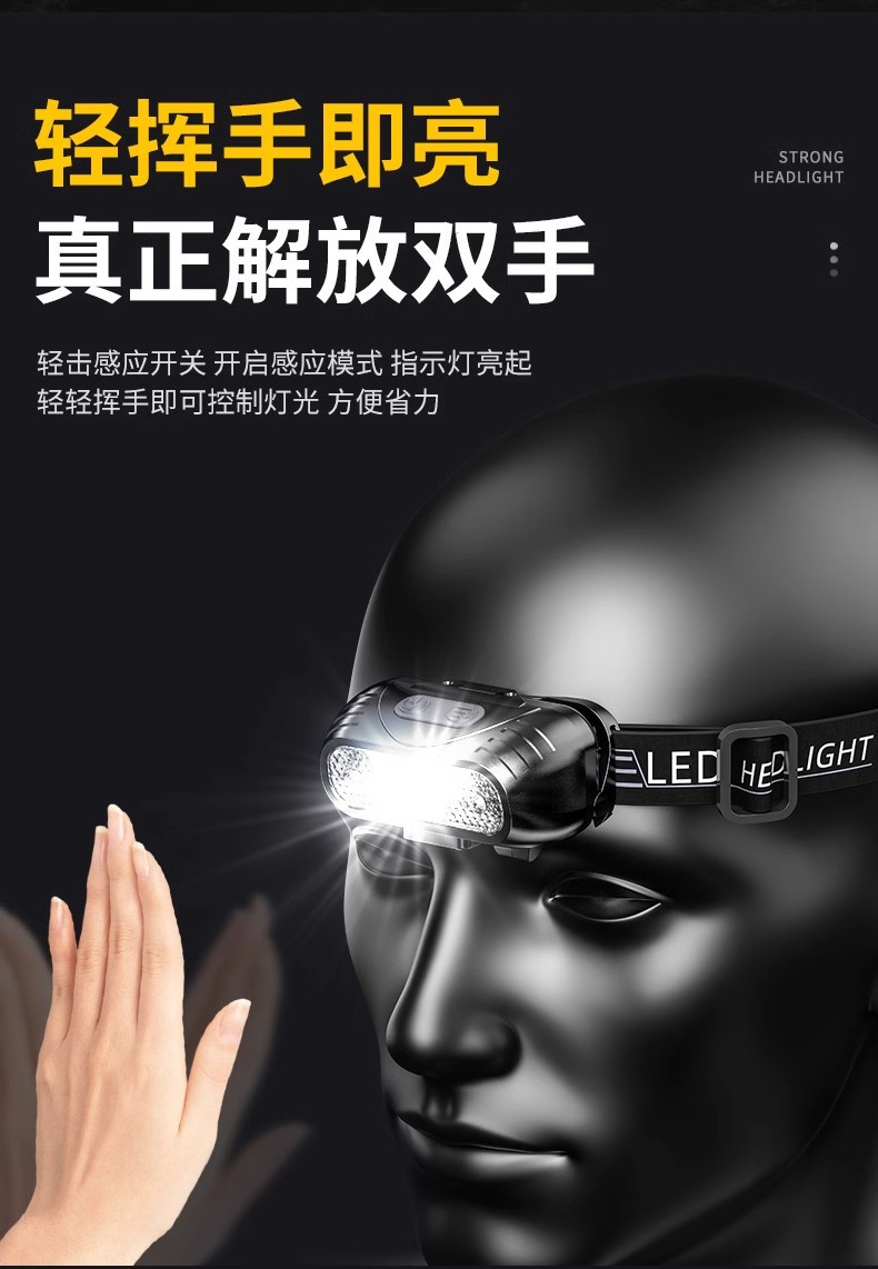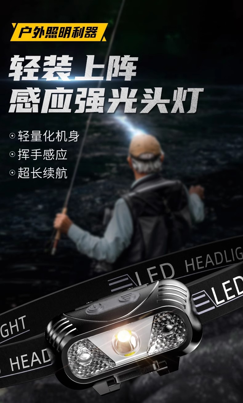 낚시용 강력한 헤드라이트, 특수 센서, 매우 긴 배터리 수명, 모자 클립 라이트, 손전등, 매우 밝은 충전식 헤드 장착형 클립온 야간 낚시