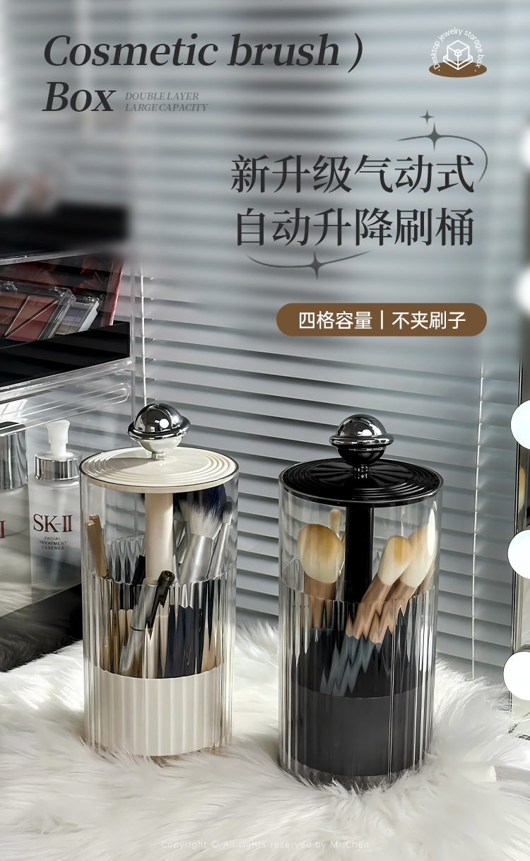새로운 자동 리프팅 및 프레스 메이크업 브러쉬 보관 튜브 화장대 데스크탑 화장품 보관 상자 눈썹 연필 브러쉬 버킷