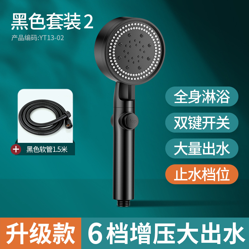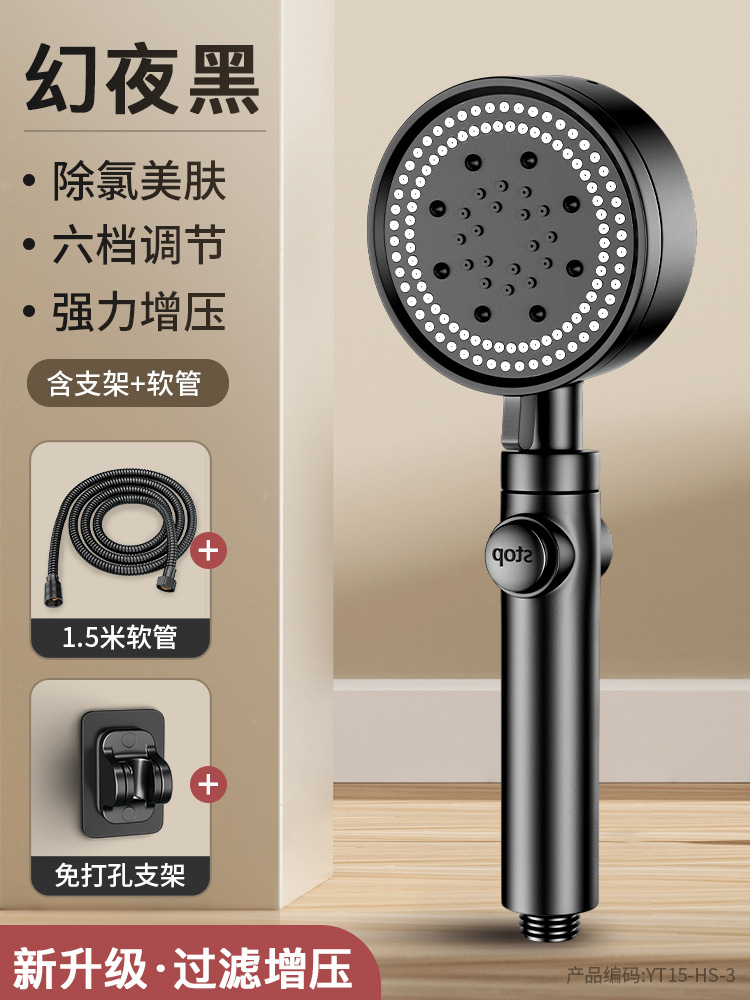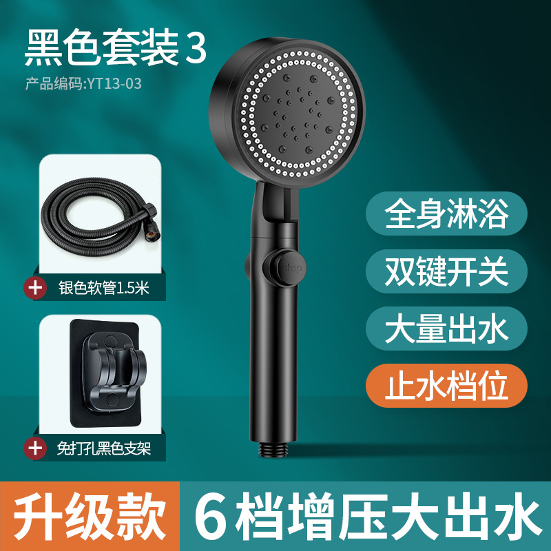• 검은색 ● 6단 강화 부스팅 [샤워기 + 호스 1.5m개 + 브래킷]