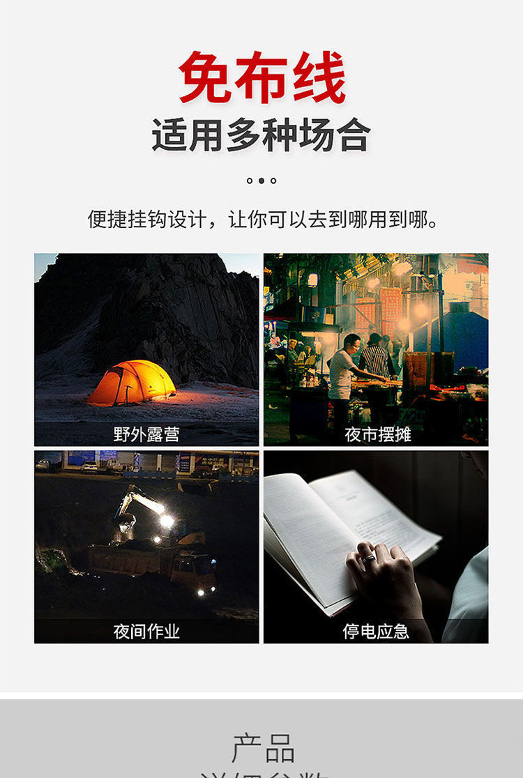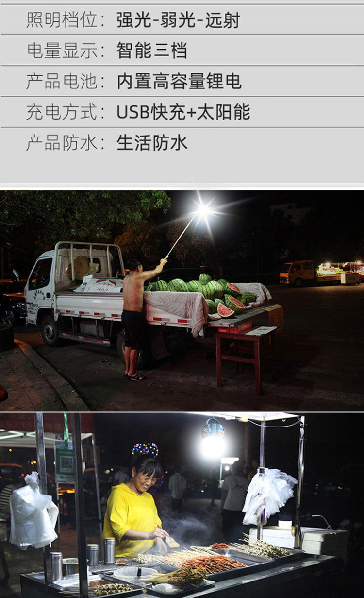 슈퍼 밝은 LED 충전식 조명 비상 조명 홈 모바일 야시장 노점 정전 야외 무선 전구