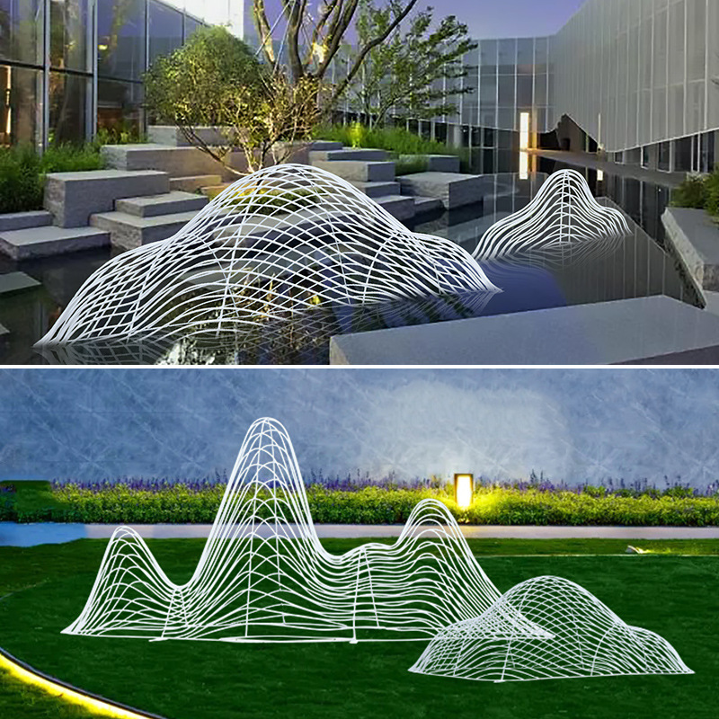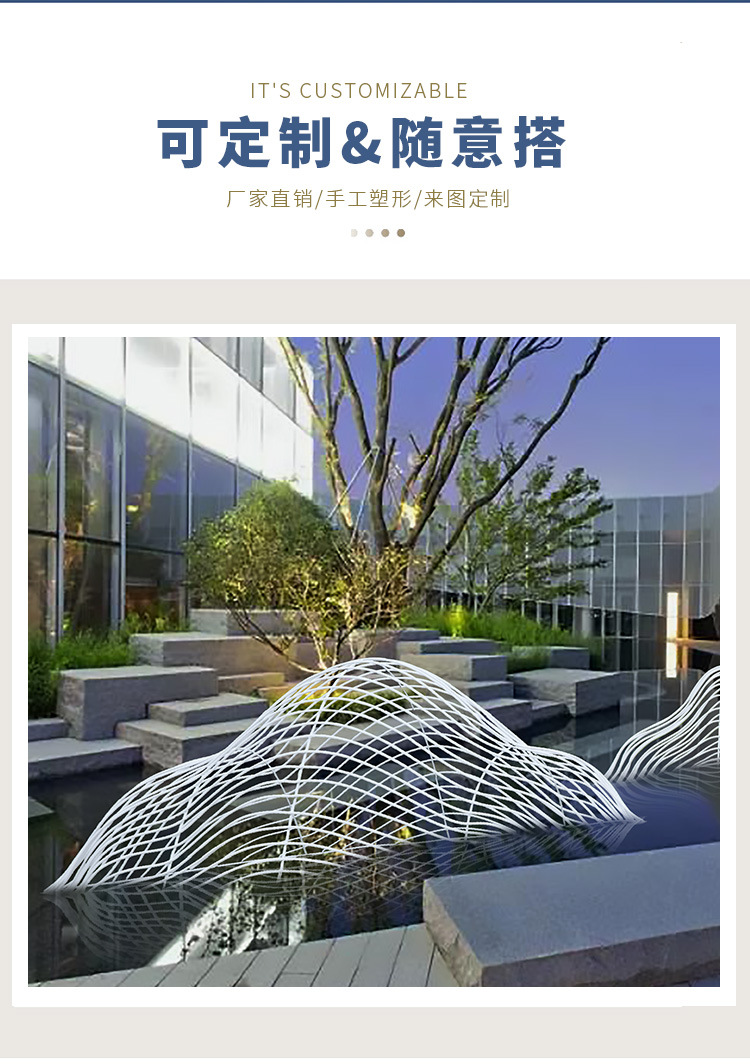 야외 스테인레스 스틸 중공 암석 조각 판매 부서 수영장 수경 장식품 철 호텔 전시 및 전시 장식
