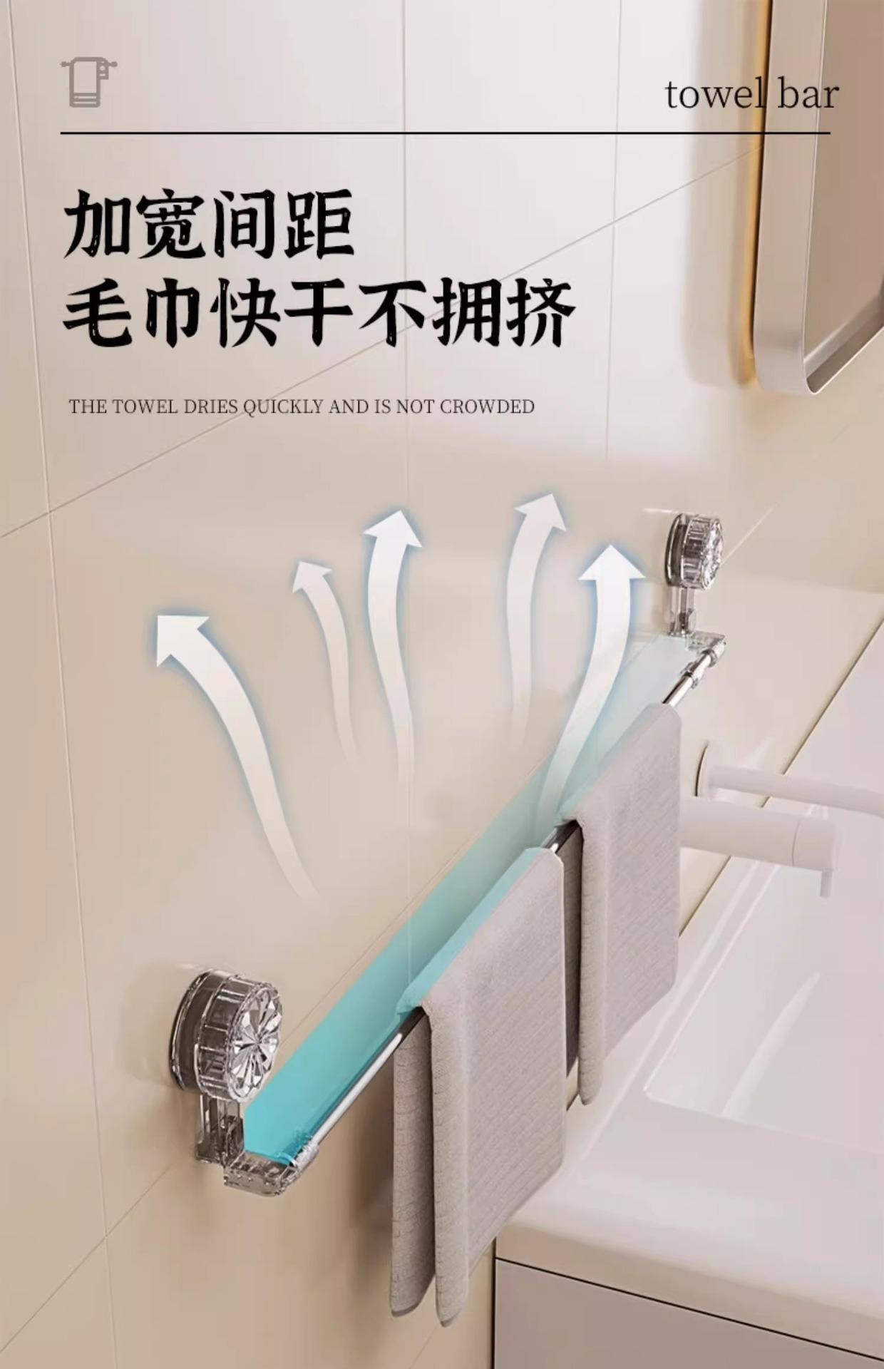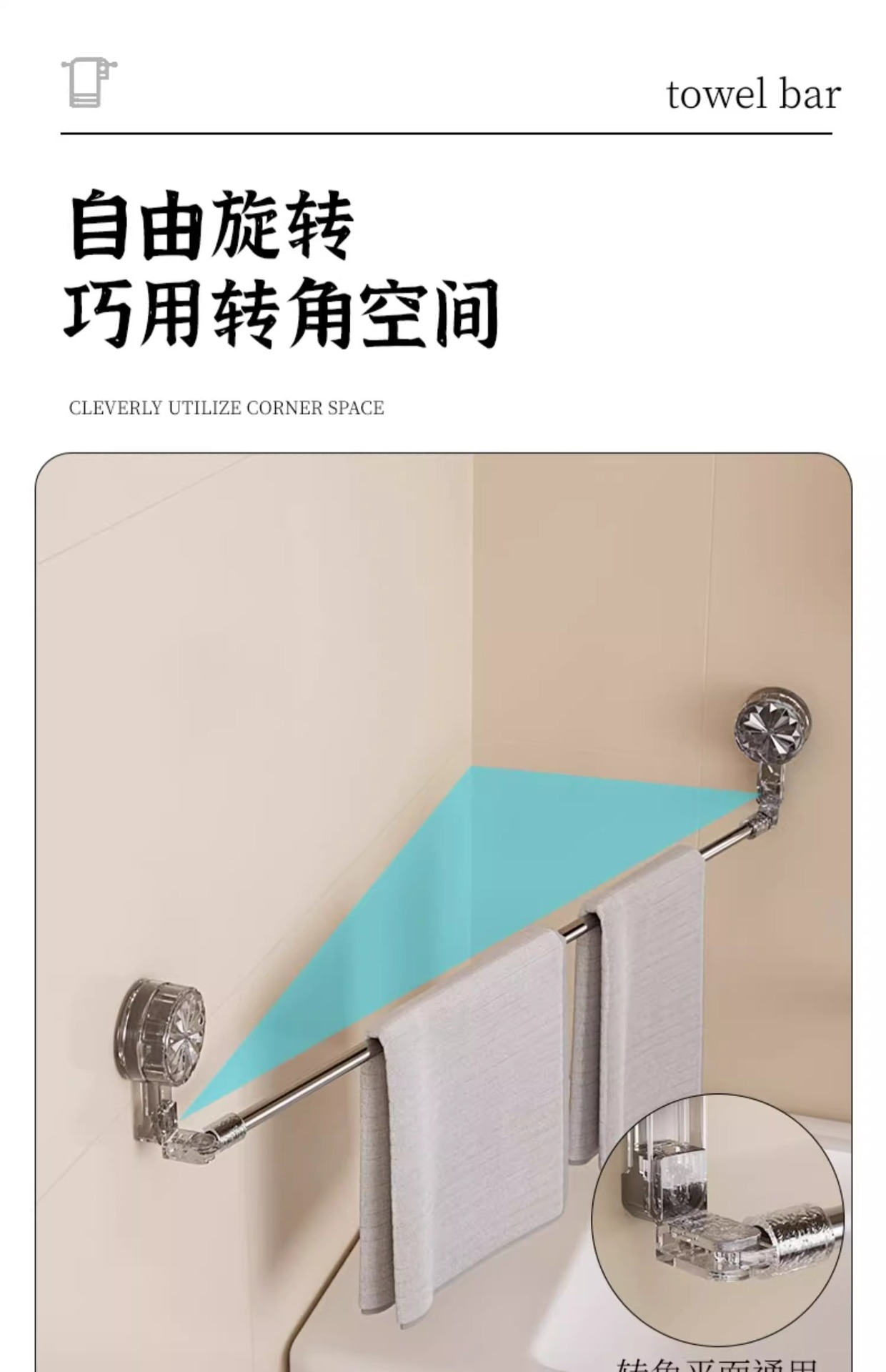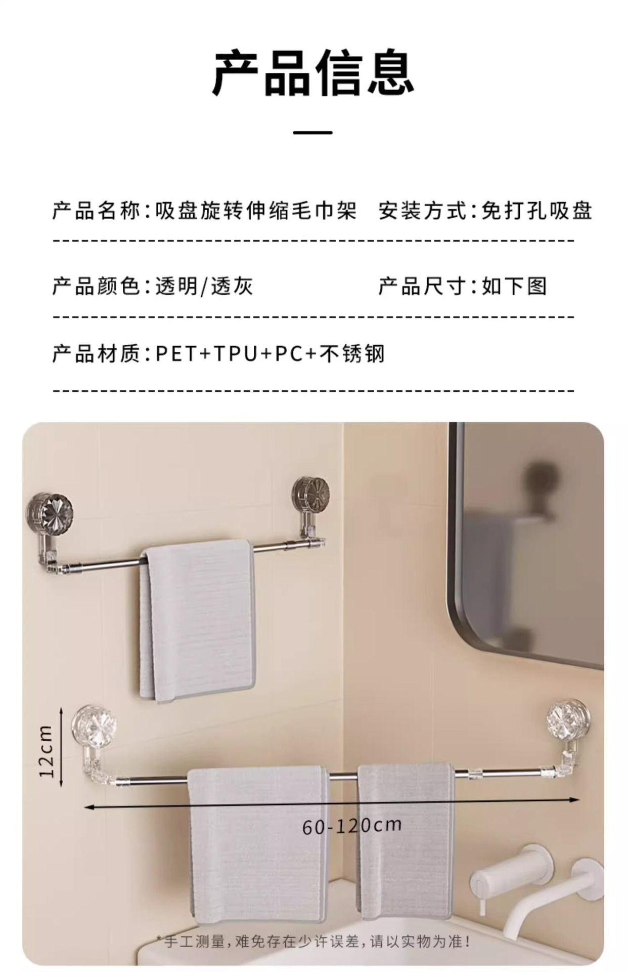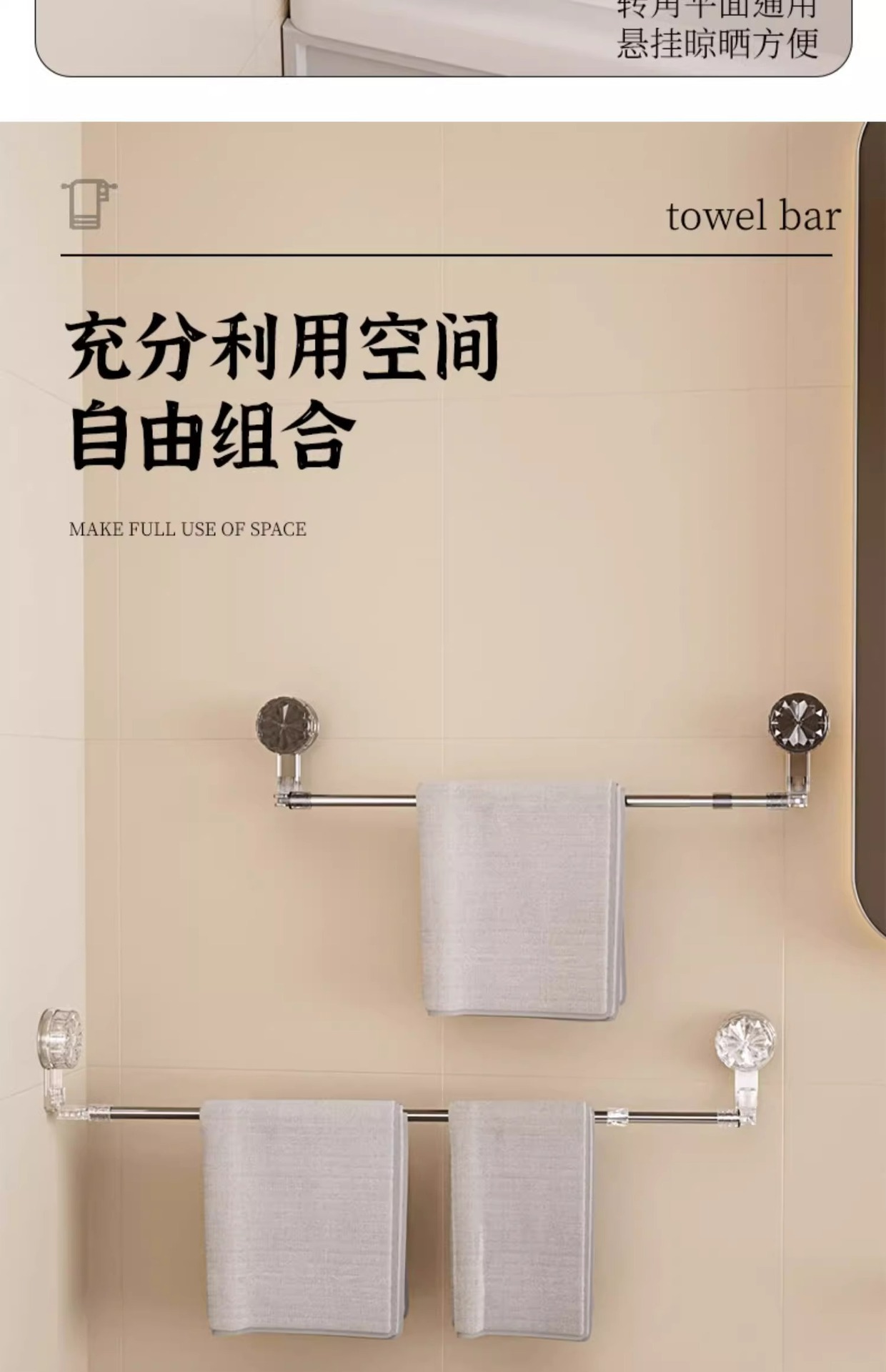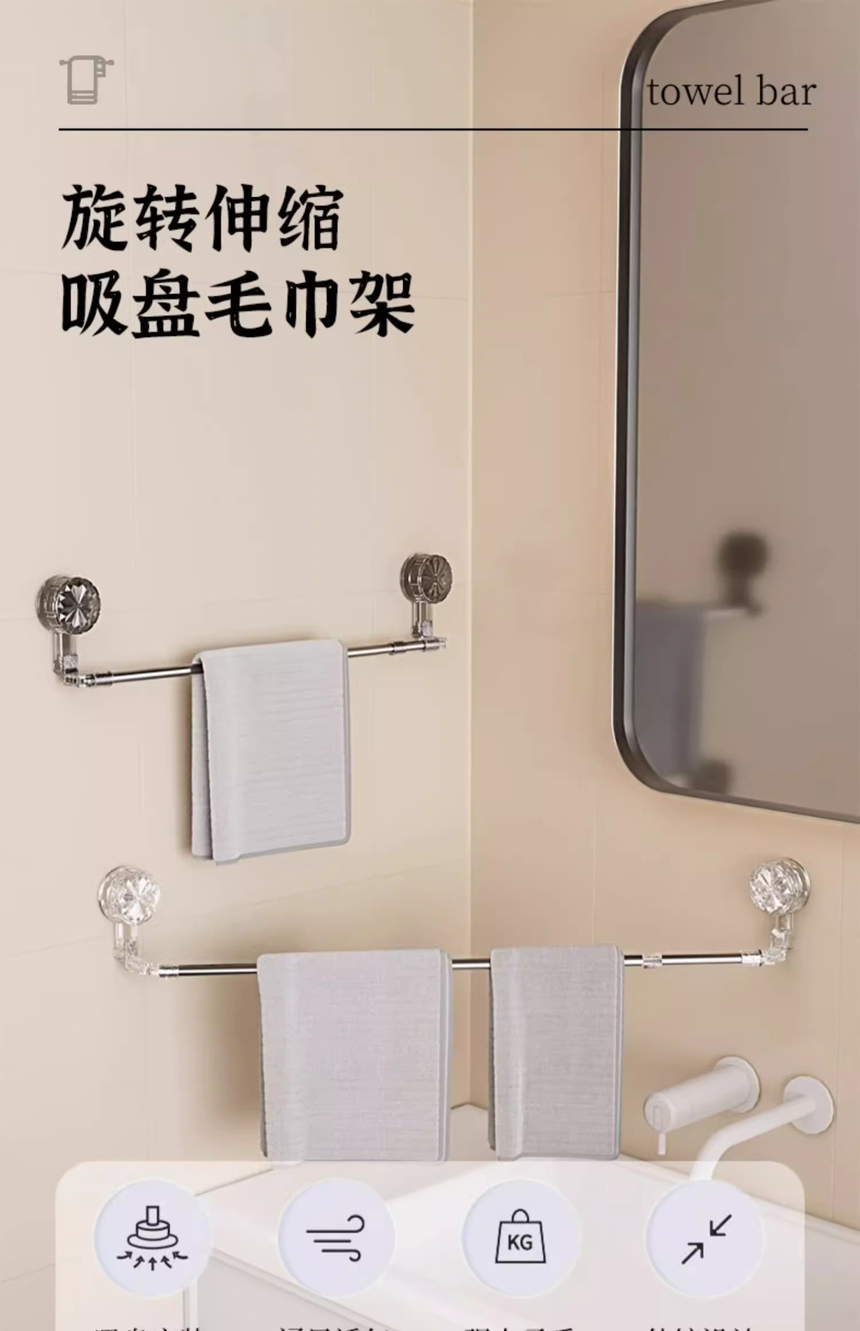 흡입 컵 수건 걸이 욕실 펀치없는 욕실 텔레스코픽 수건 바 보관 랙 욕실 목욕 수건 보관 걸이