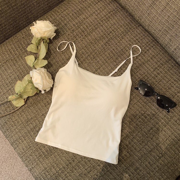 가슴 패드가 있는 여성용 신상 캐미솔, 내부 및 외부 착용, 아름다운 백탑, 고정 컵, 일체형 조절 가능한 얇은 어깨끈