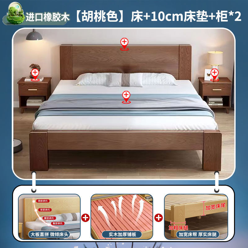 • 丨호두색 원목 침대+10cm 매트+캐비닛*2