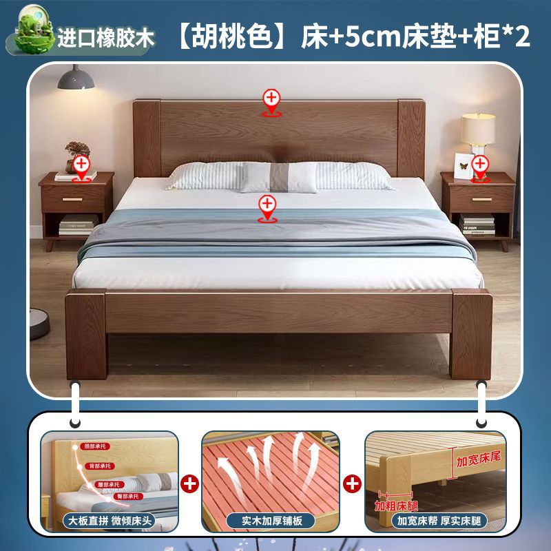 • 丨 바니시 컬러 원목 침대 + 5cm 매트 + 캐비닛 * 2