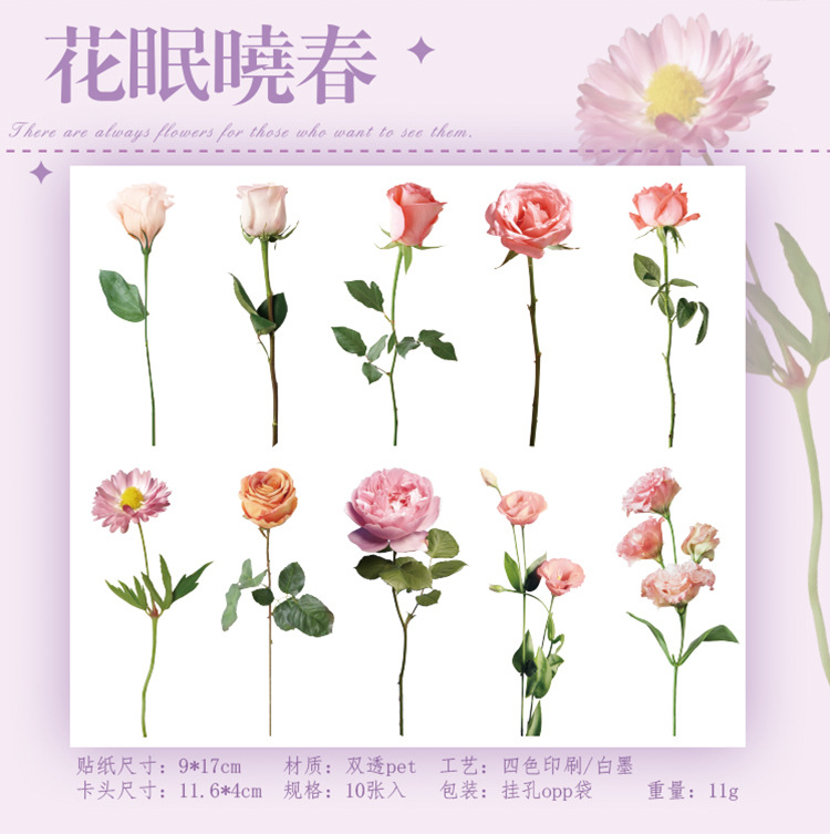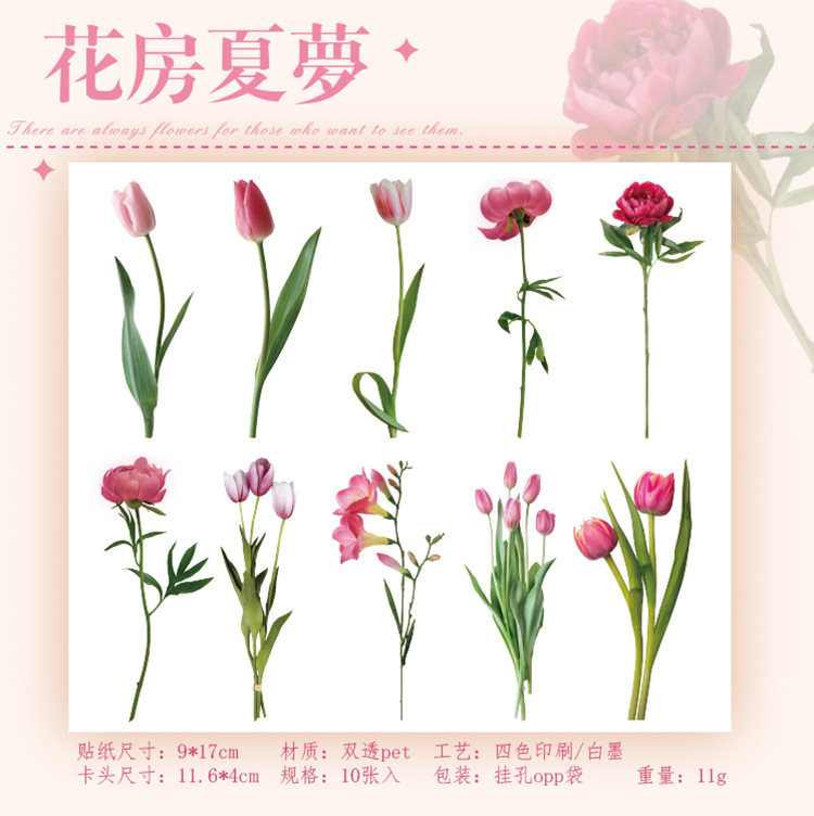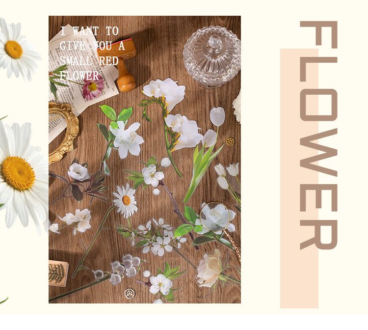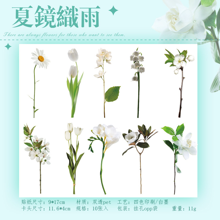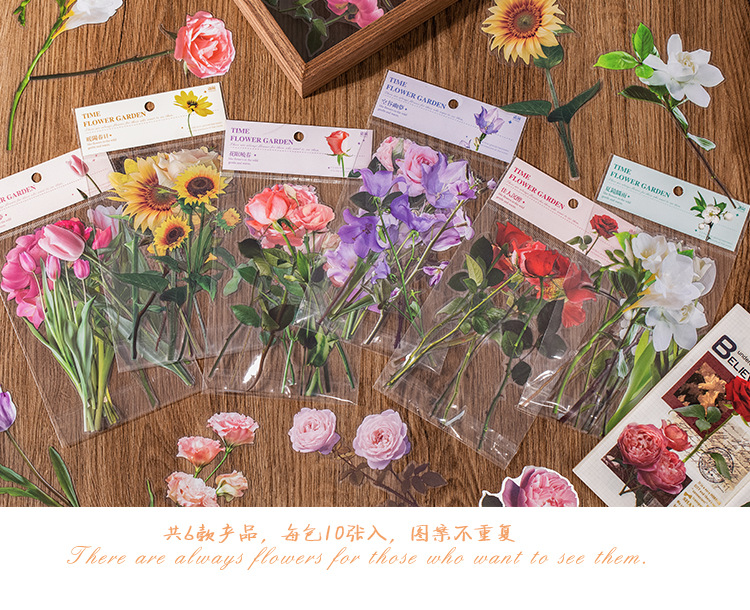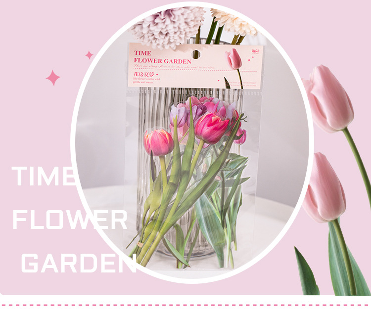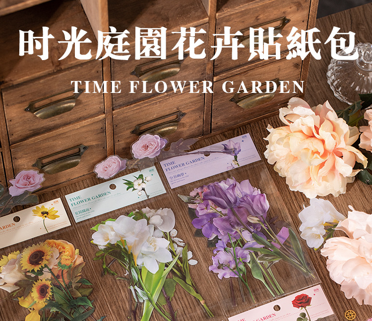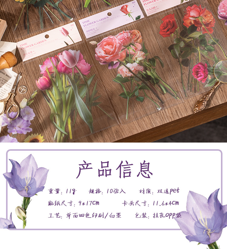 언어 유휴 PET 꽃 스티커 패키지 시간 정원 시리즈 손 계정 콜라주 장식 재료 스티커 10 6
