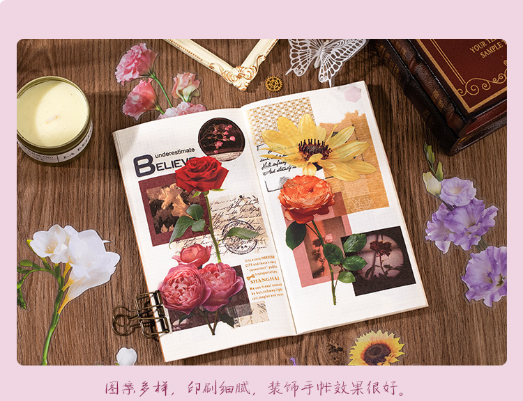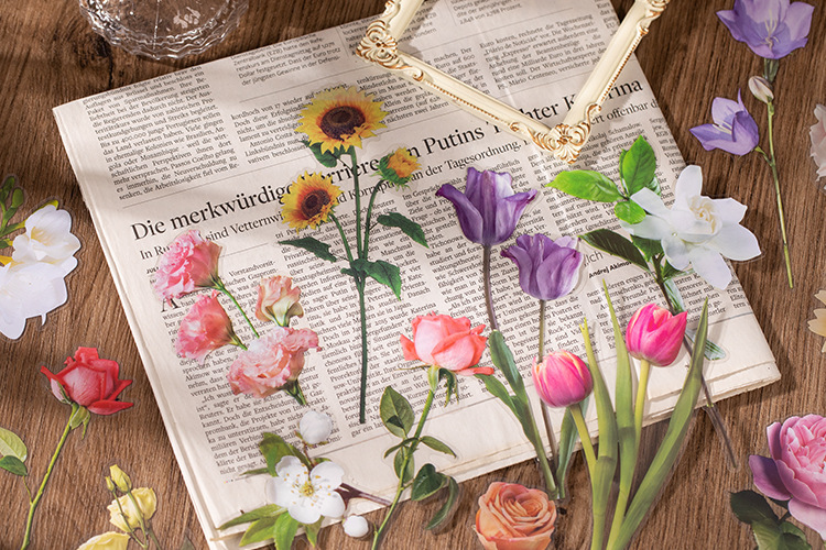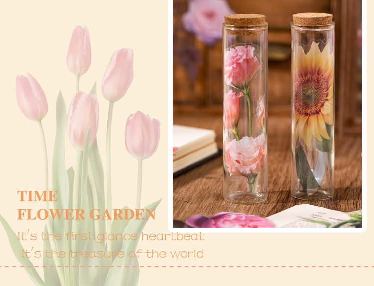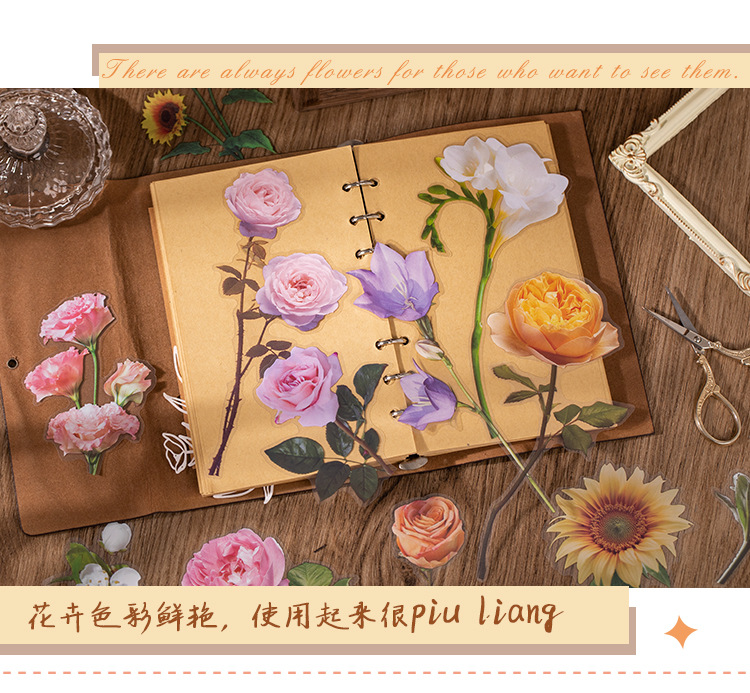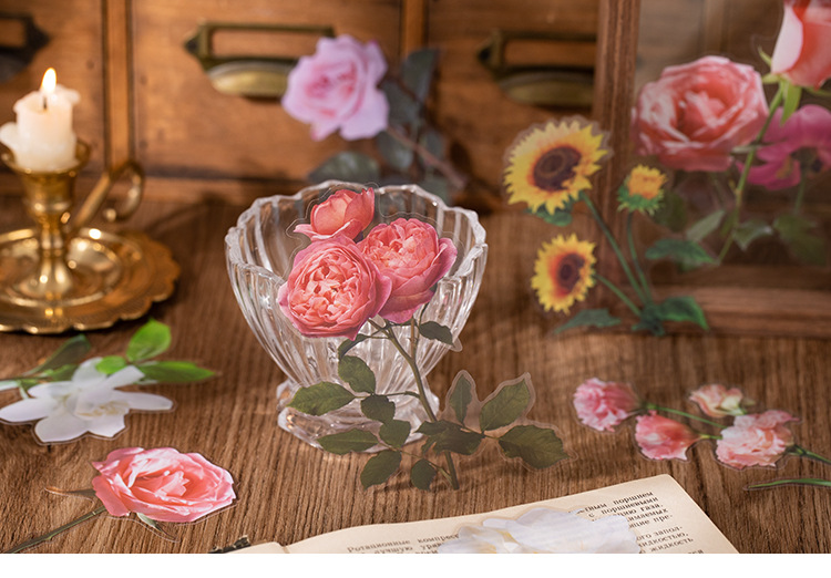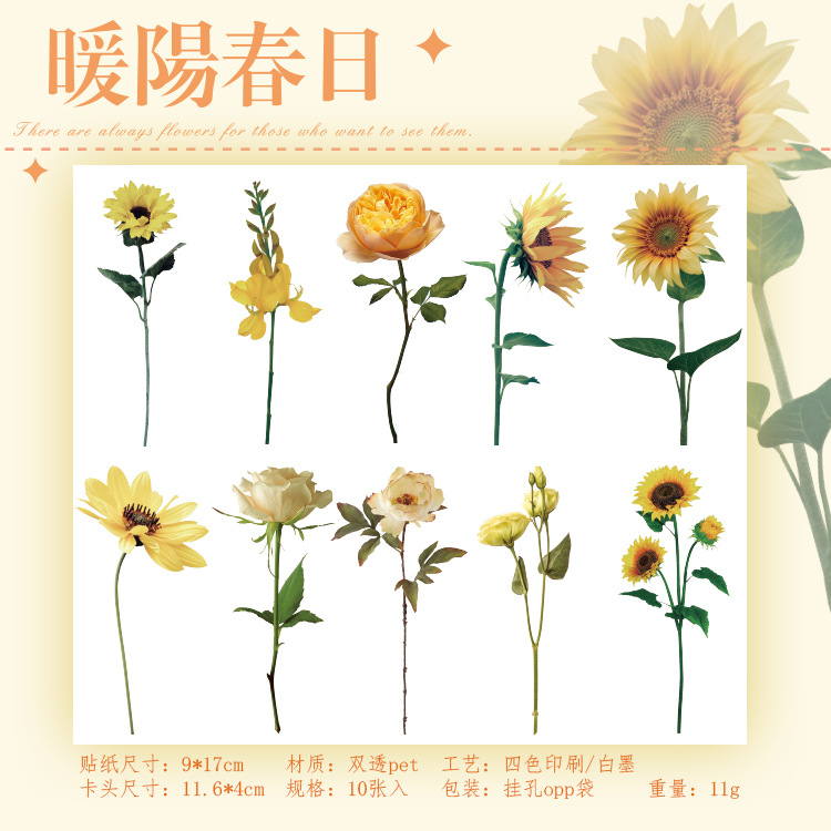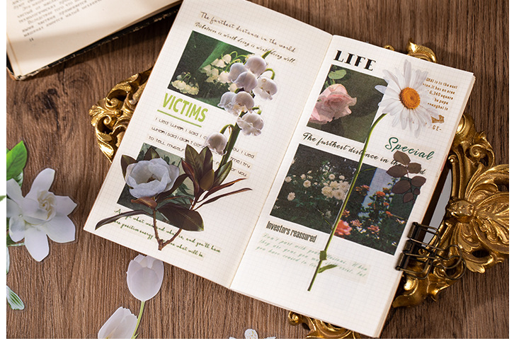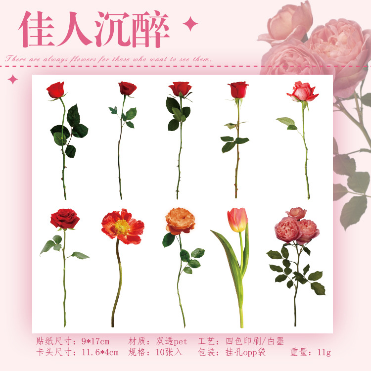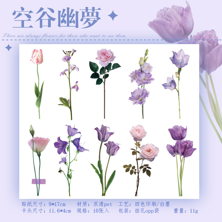 언어 유휴 PET 꽃 스티커 패키지 시간 정원 시리즈 손 계정 콜라주 장식 재료 스티커 10 6