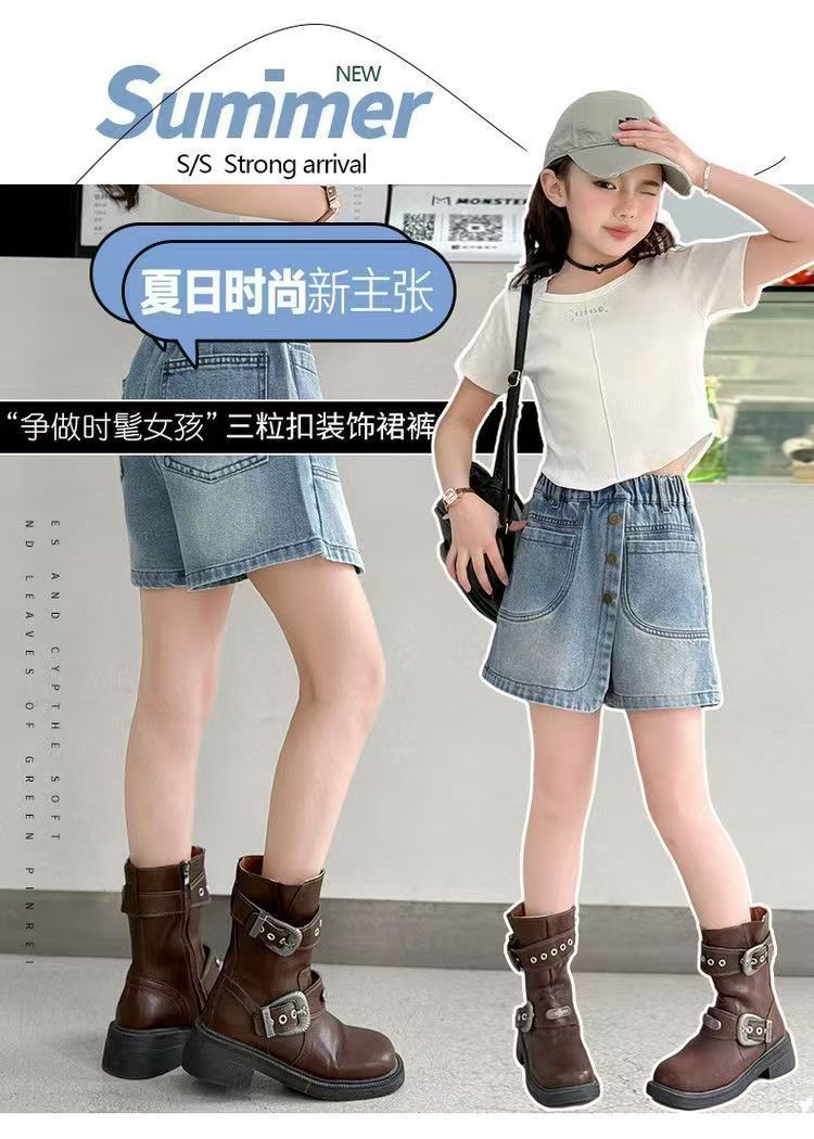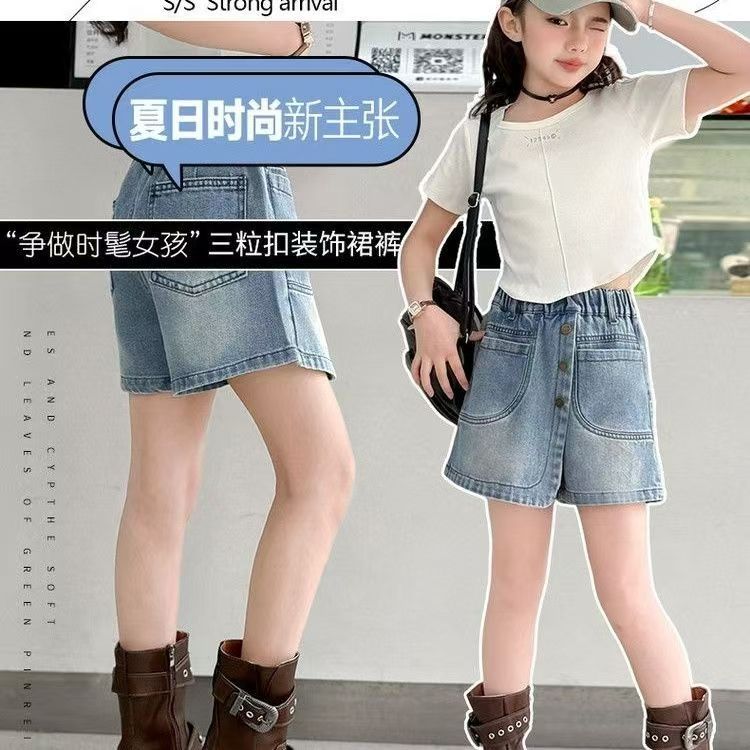 여아 스커트 여름 스타일 중대형 아동용 데님 반바지 2025 신작 여아 트렌디하고 멋진 한국식 스커트 대외 무역