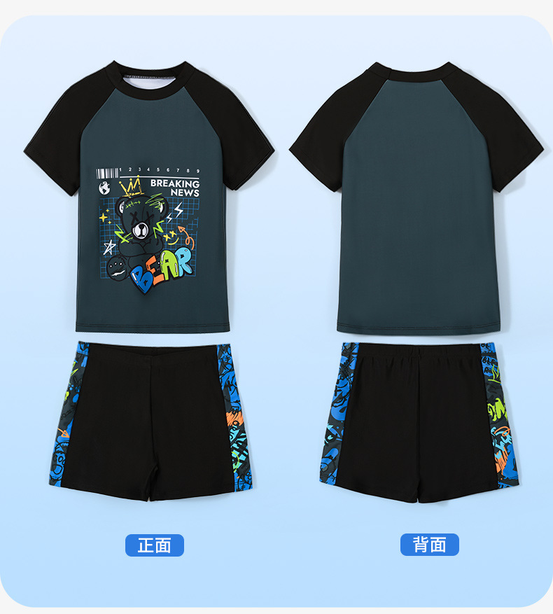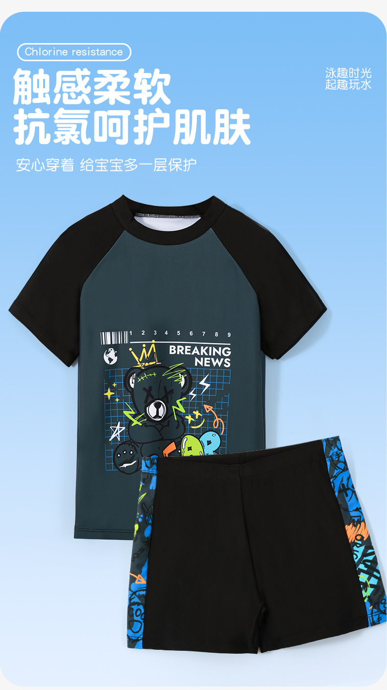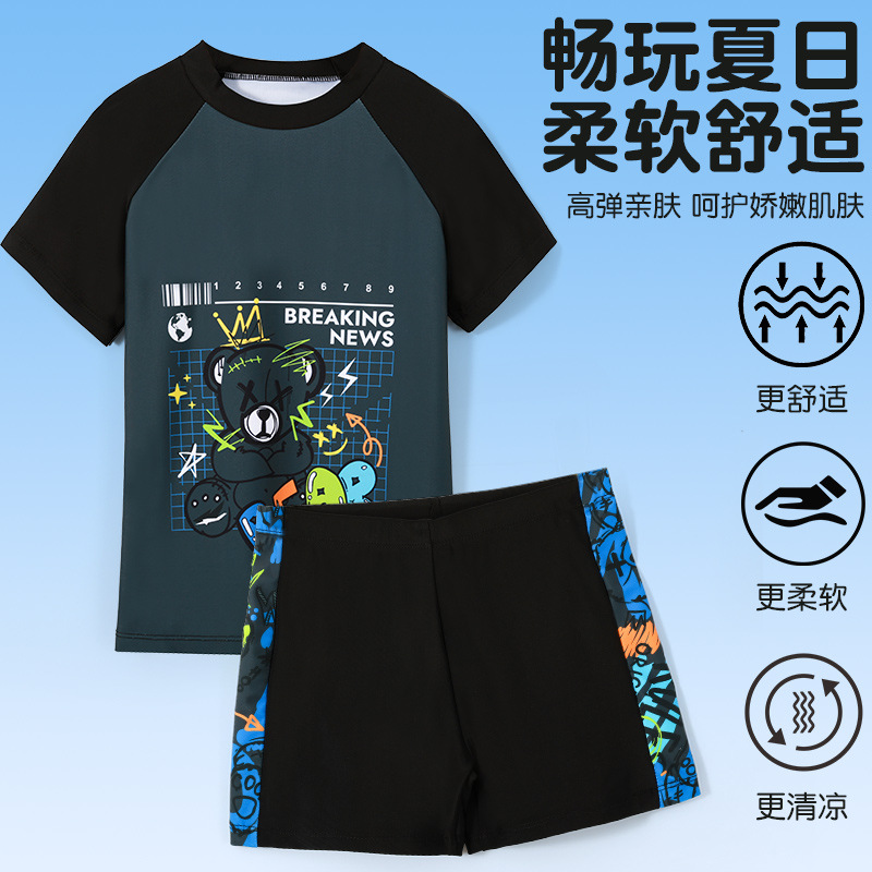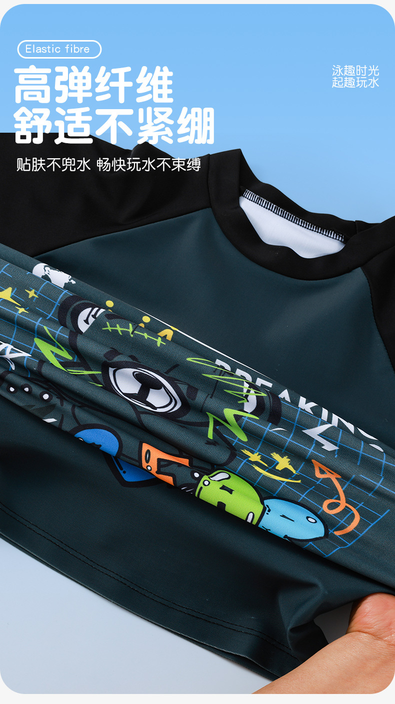 어린이 수영복 소년 및 중년 어린이 분할 자외선 차단제 속건성 수영복 여름 수영복 만화 소년 수영복