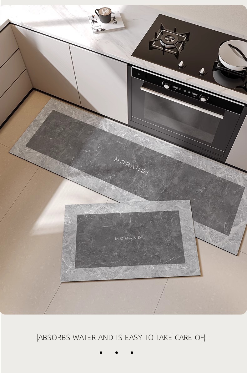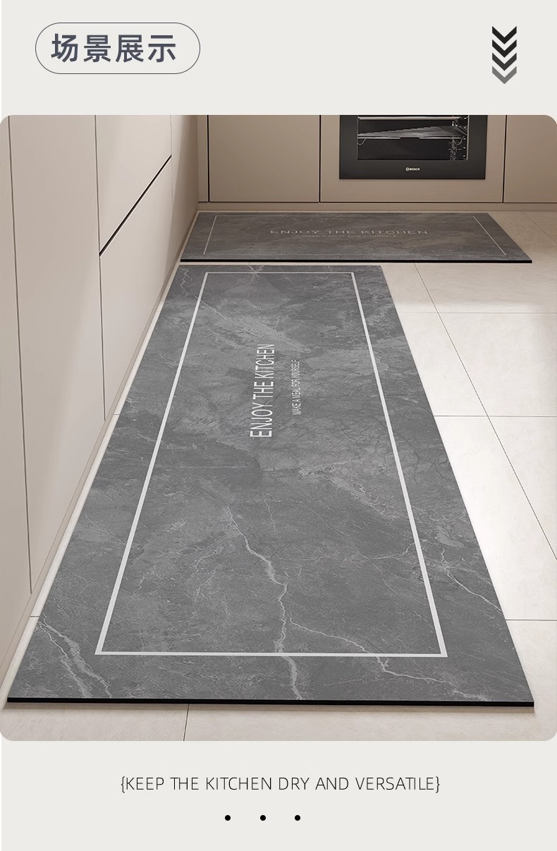 가정용 주방 바닥 매트 먼지 방지 물 흡수성 오일-저항성 디 아톰 진흙 발 매트 미끄럼 방지 와이프 및 워시없는 여름 주방 배수 매트